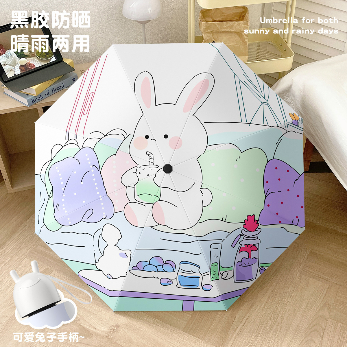 • 블루 밀크티 버니 (토끼손잡이 + 수동파라솔)