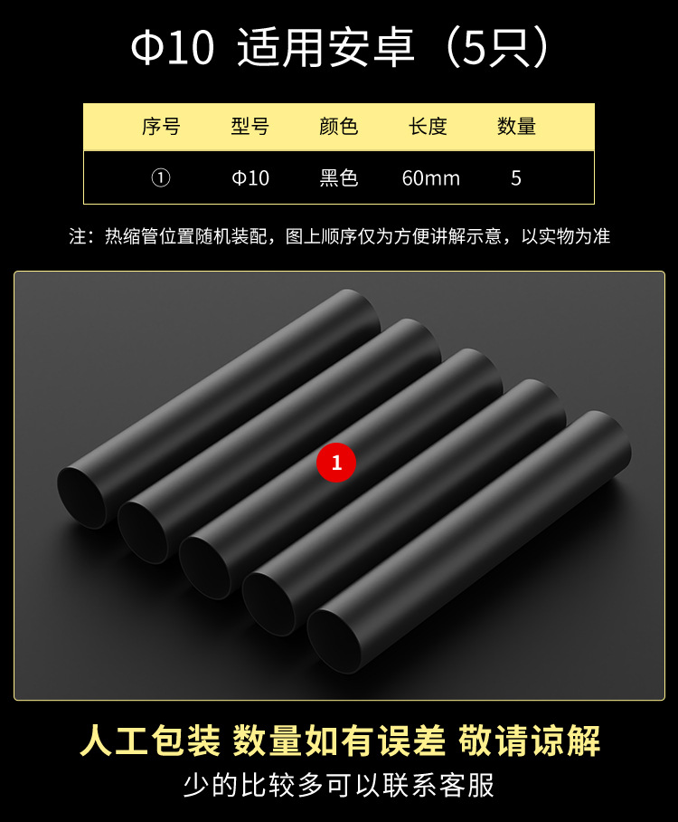 • 검정색 5 직경 10mm Android/Apple 11-16 열수축 튜브, 3배 수축