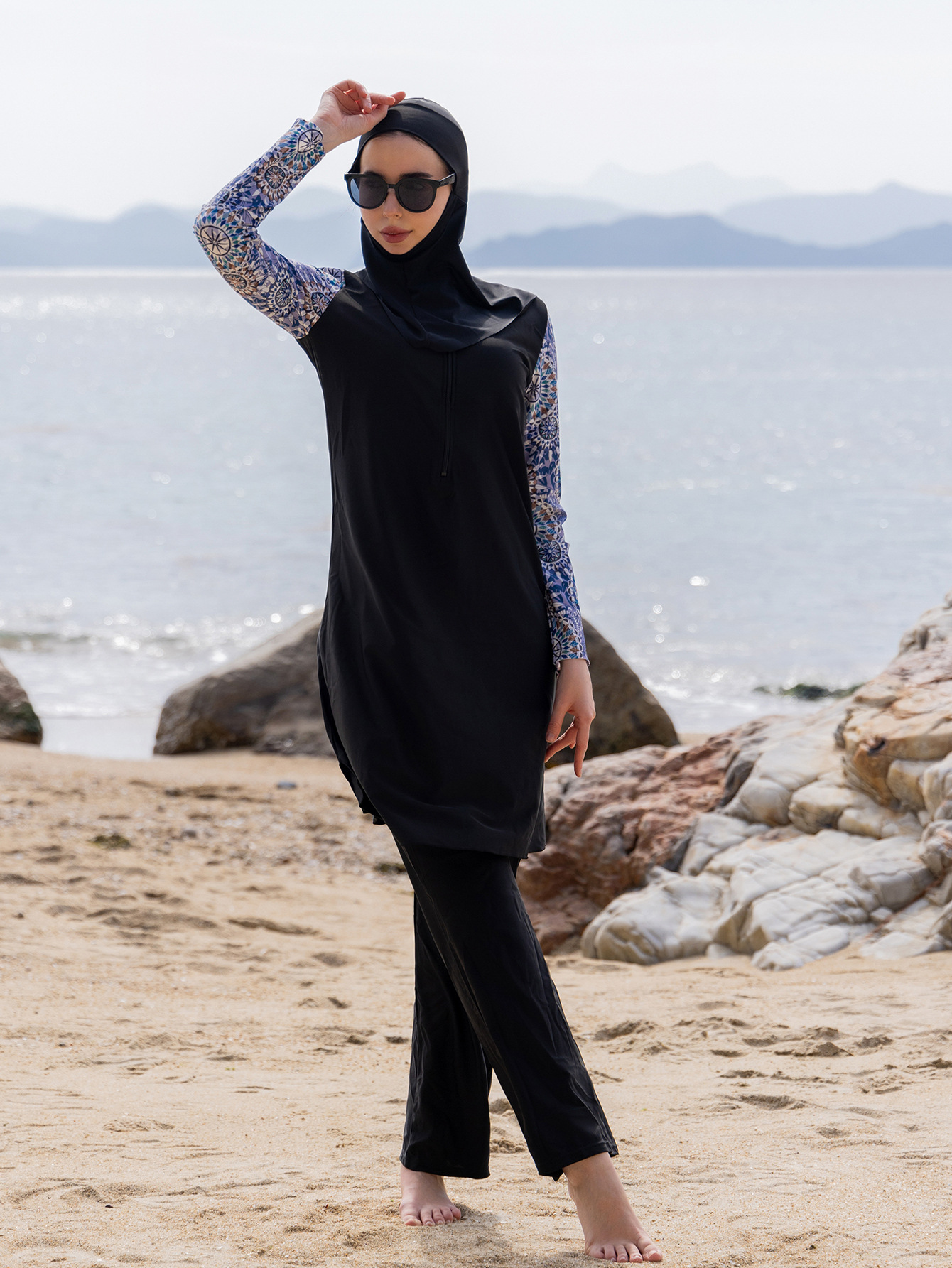 크로스보더 아마존 쉬폰 프린트 슬림핏 미디 기장 투피스 스타일 플러스 사이즈 여성용 원피스 수영복 봄스토어 가기