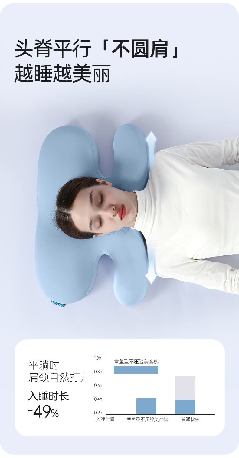 얼굴에 압력을 가하지 않는 뷰티베개, 팔자주름 방지, 숙면, 불면증, 경추보호, 수면보조, 성인용 옆수면