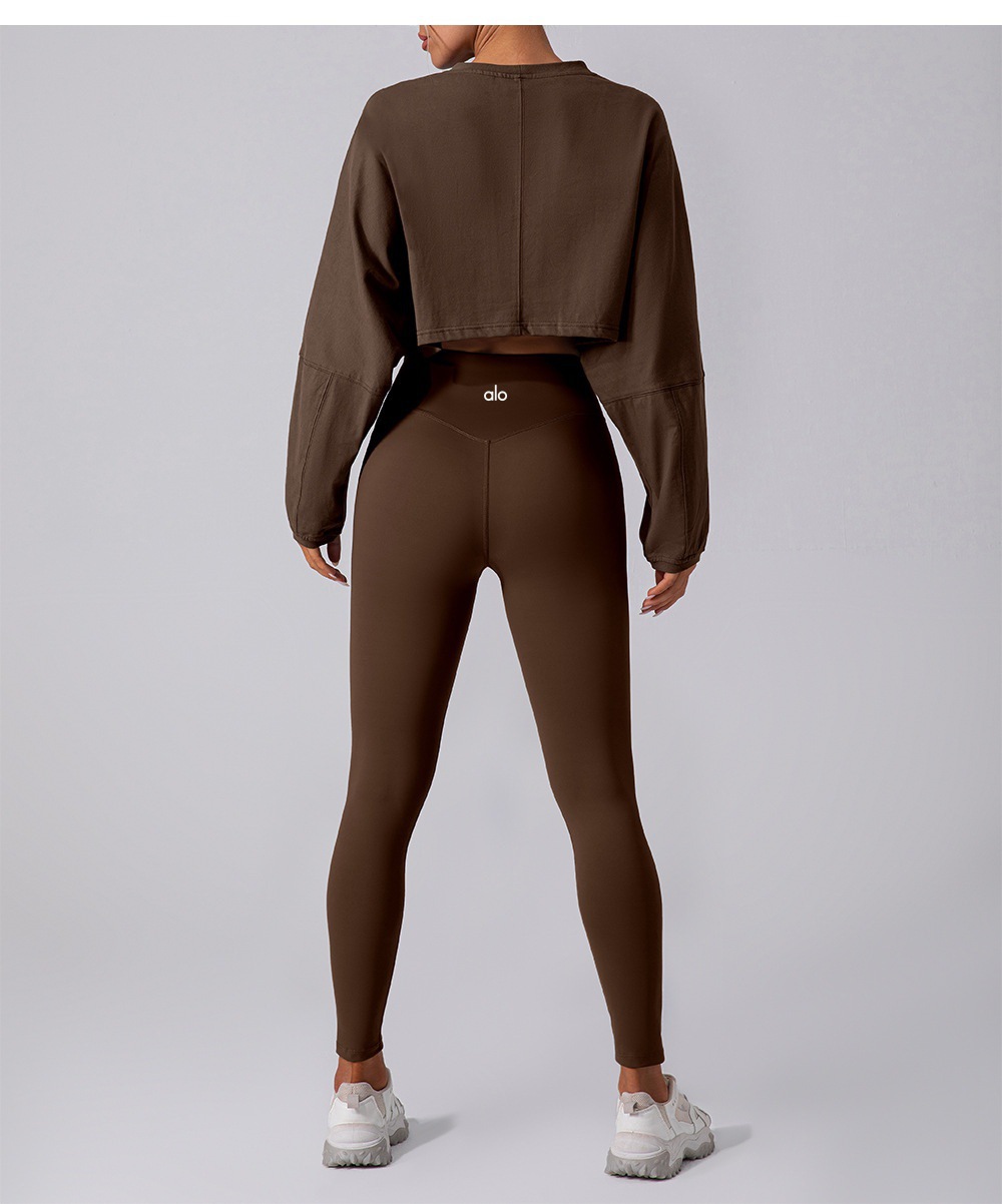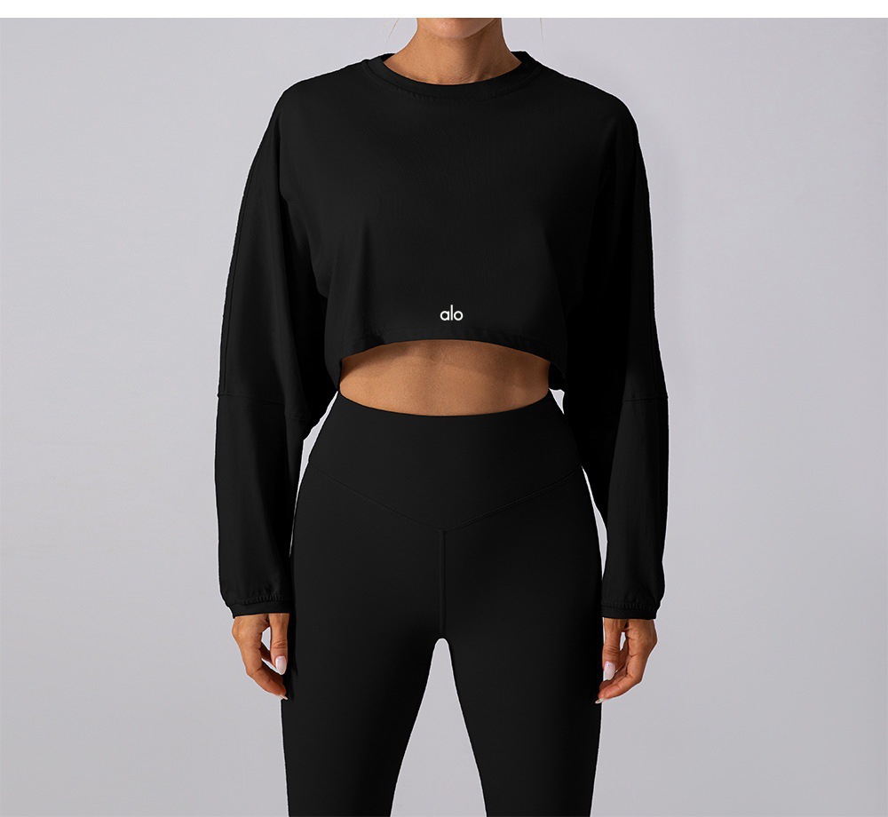 Al 스포츠 운동복 여성 라운드 넥 짧은 통기성 피트니스 티셔츠 드롭 어깨 소매 느슨한 긴팔 탑 요가 탑