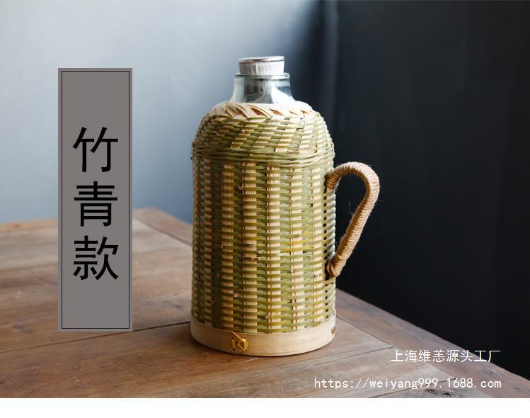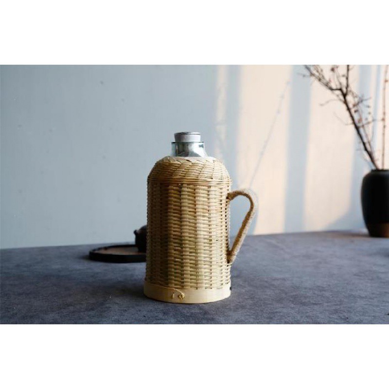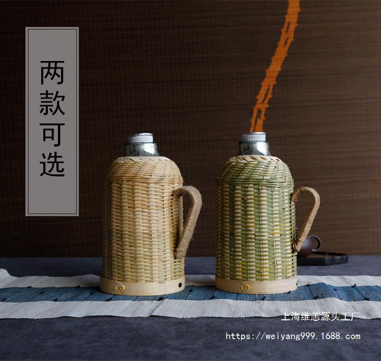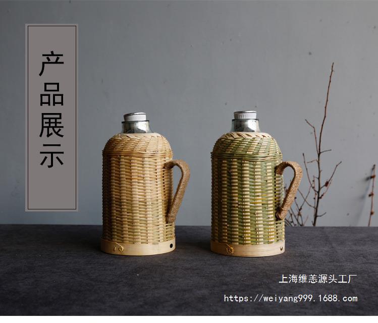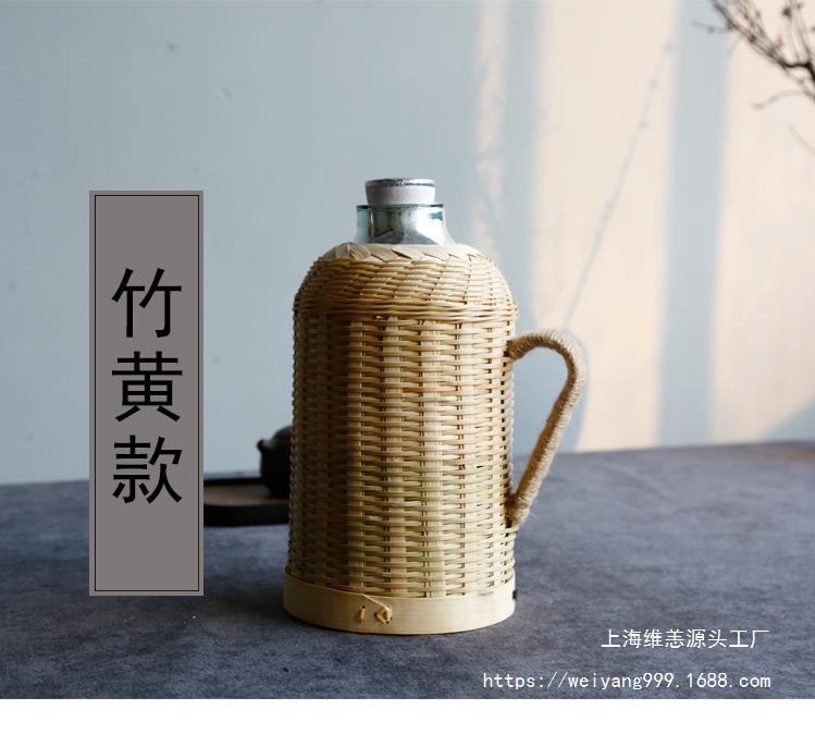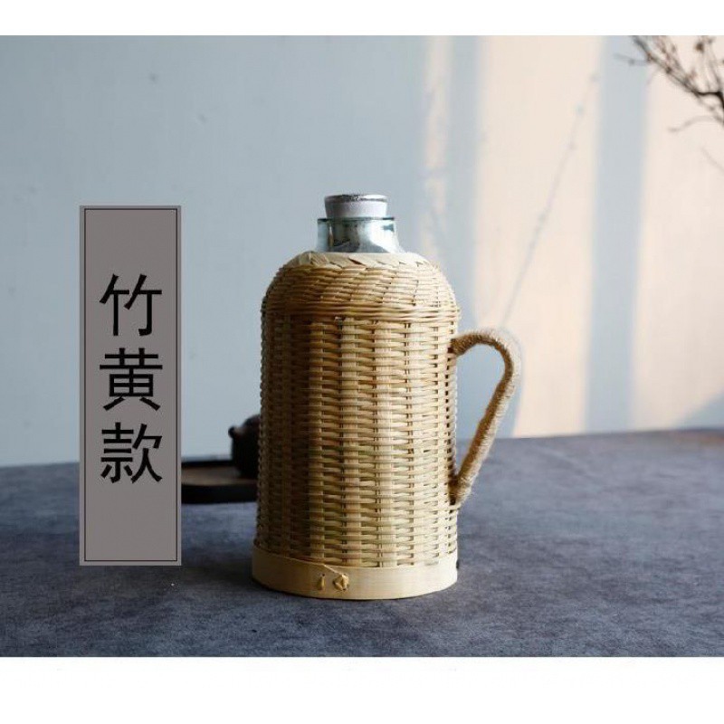대나무 주전자 대나무 껍질 온수병 중국 스타일 라이너 휴대용 홈 학생 기숙사 짠 보온병 미니스토어 가기