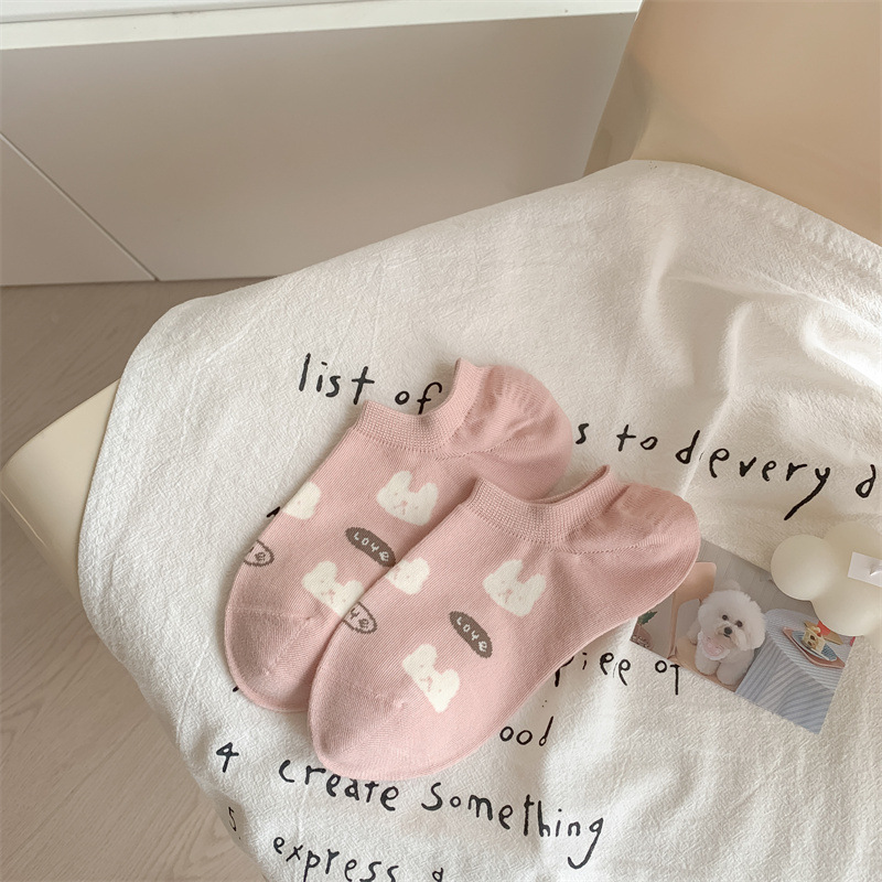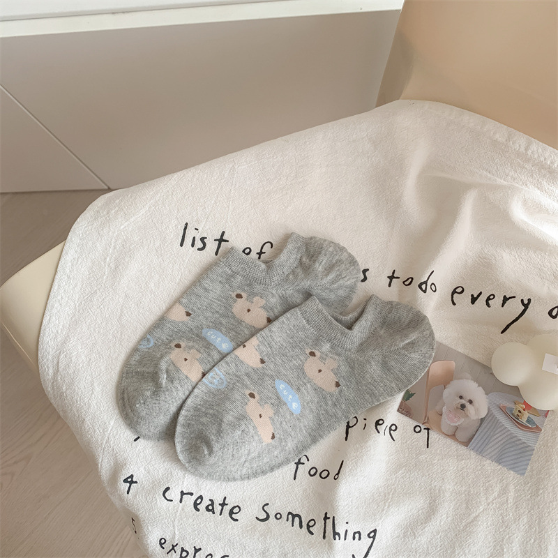 여름 얇은 순면 보트 양말 귀여운 양말 여성 만화 짧은 양말 소녀는 발 뒤꿈치 안티 오프 충격 보이지 않는 양말