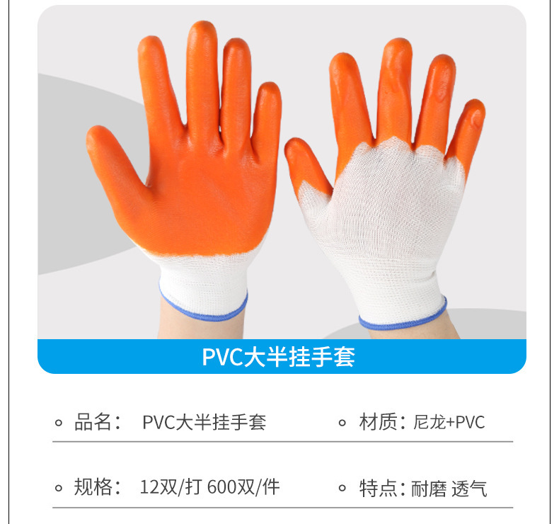 제조 업체 도매 접착제 장갑 내마모성 보호 미끄럼 방지 통기성 PVC 반 접착 라텍스 작업 노동 보호 장갑스토어 가기