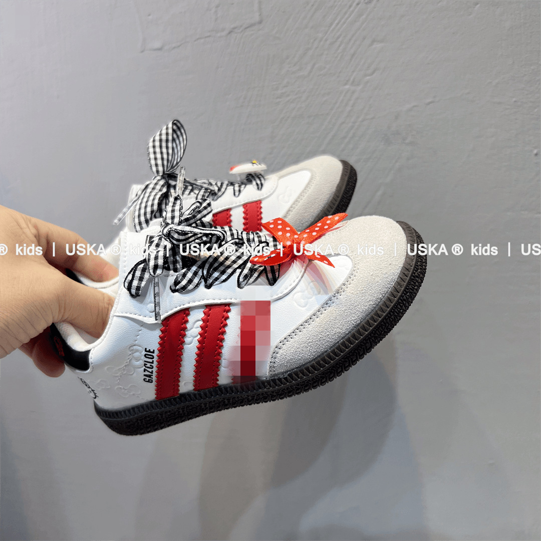 정품 가죽 소녀 독일 훈련 신발 키티 고양이 운동화 2025 년 봄 어린이 흰색 신발 새로운 소년 운동화