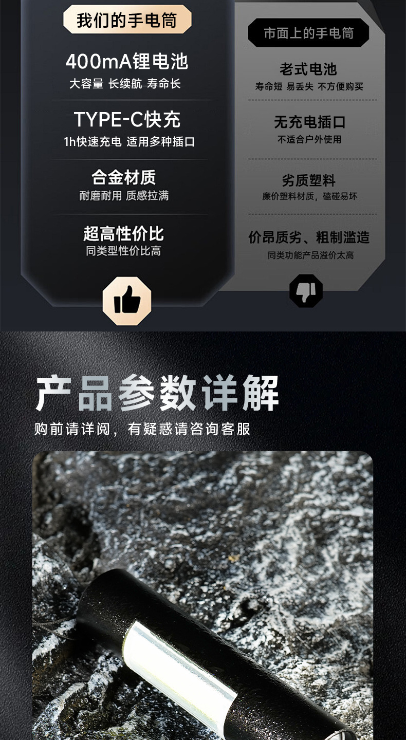 강력한 손전등 USB 충전식 휴대용 미니 선물 램프 소형 다기능 줌 비상 조명 가정용 램프스토어 가기
