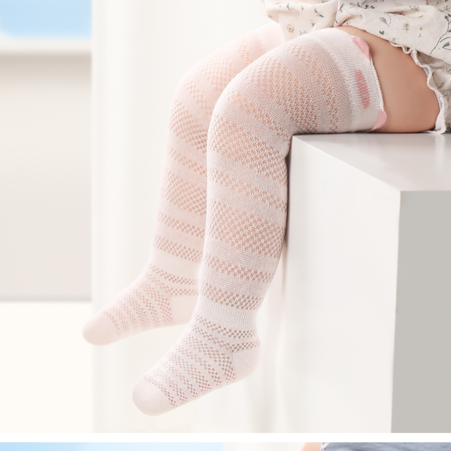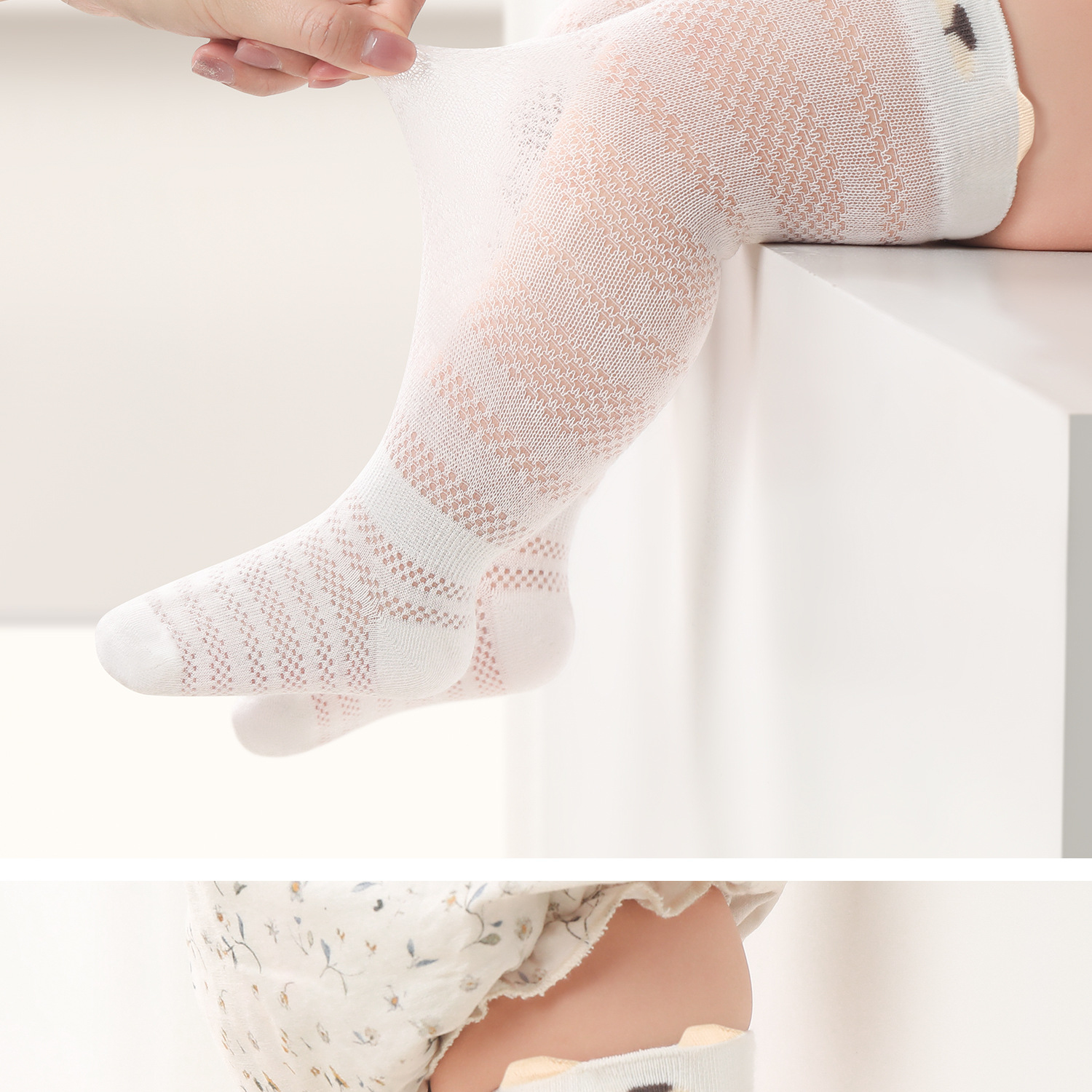 여름 새로운 아기 메쉬 양말 긴 튜브 무릎 아기 양말 소년과 소녀를위한 신생아 귀여운 만화 양말