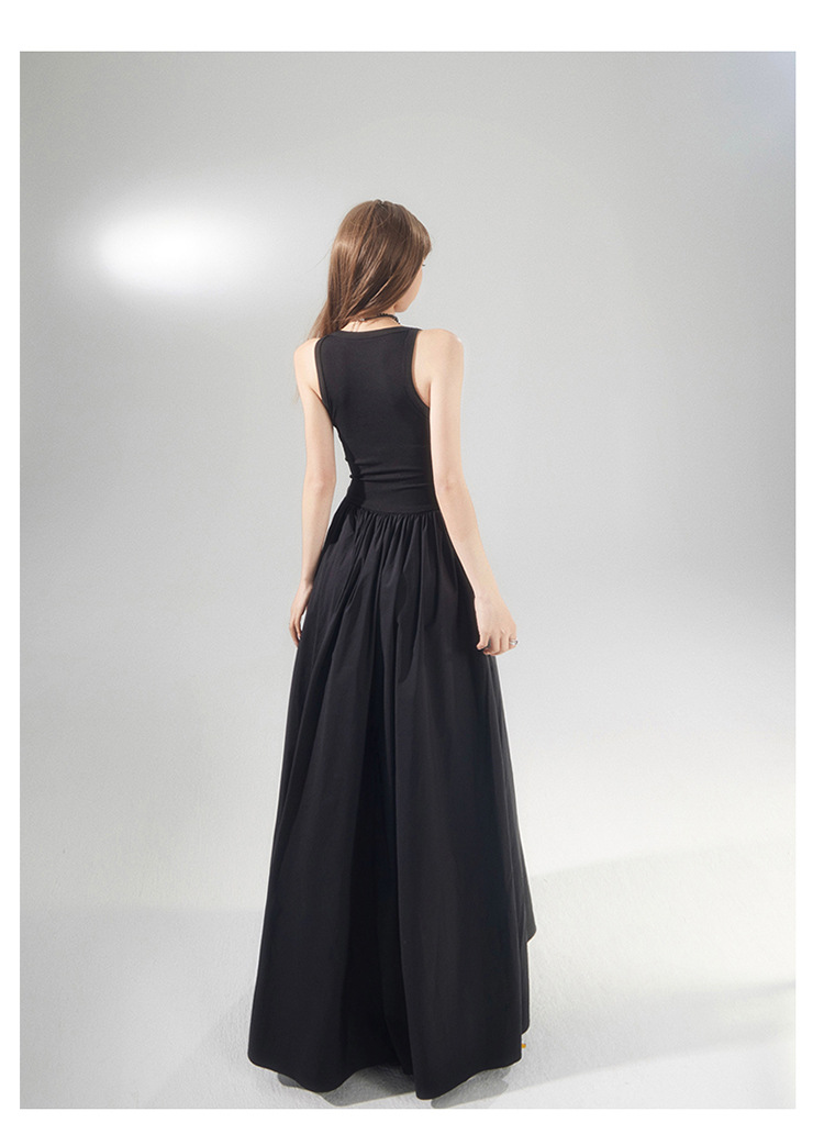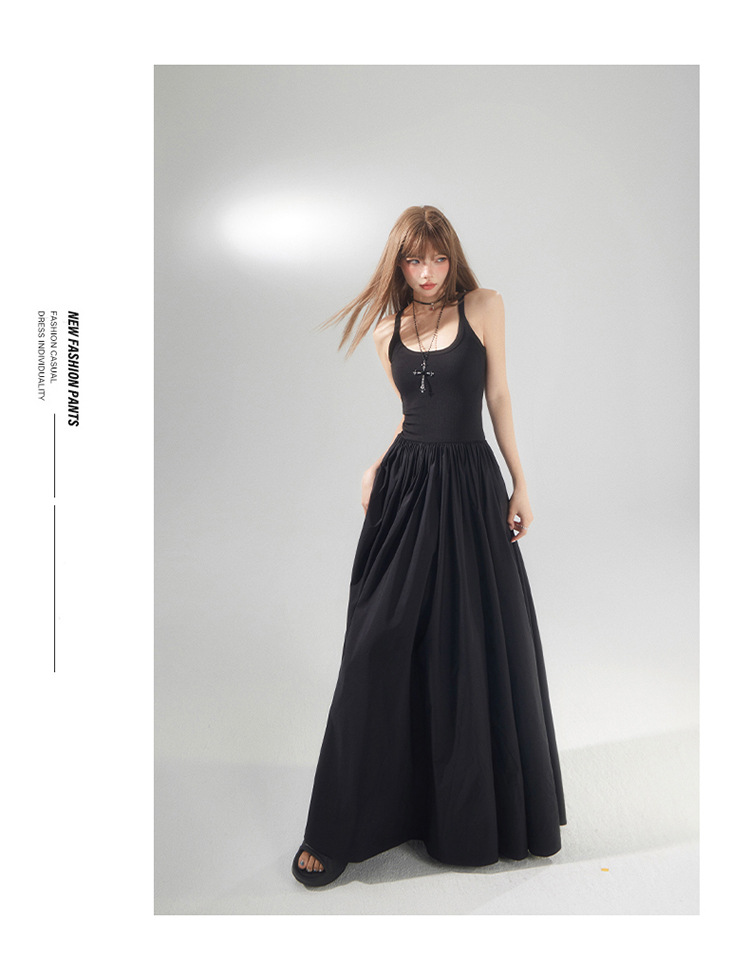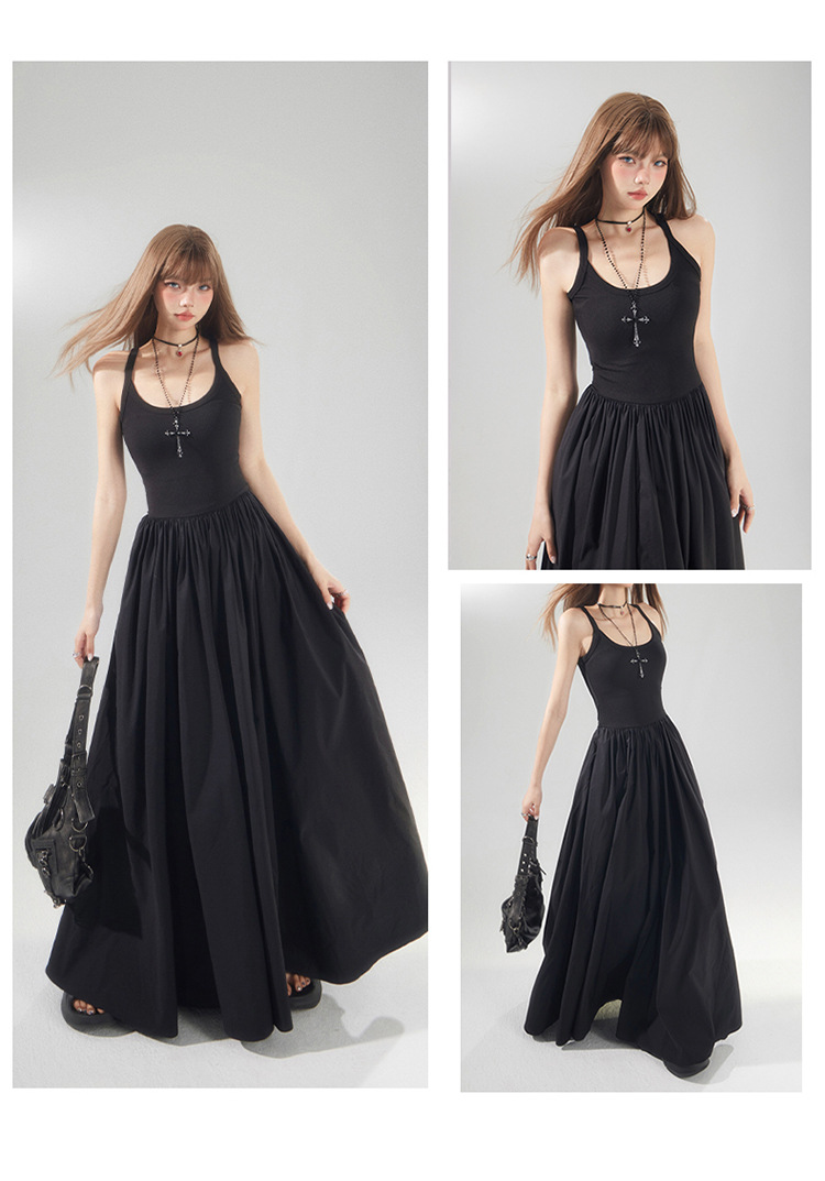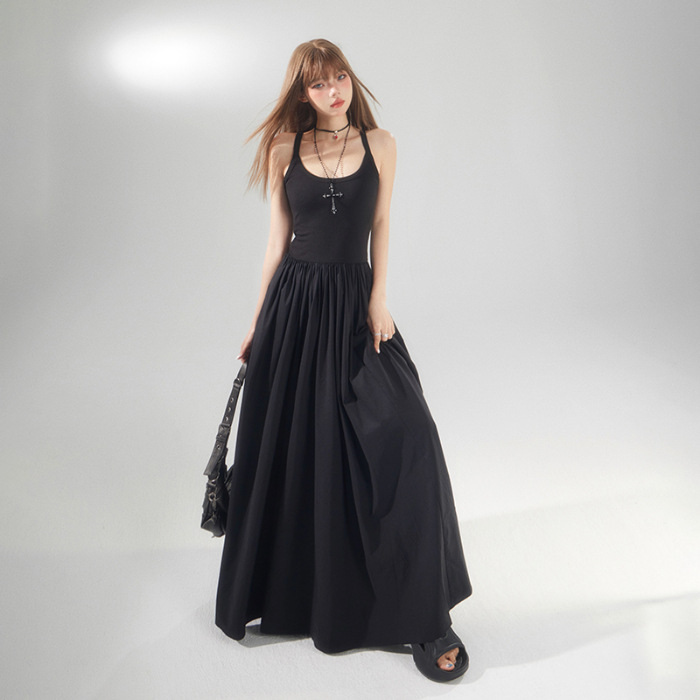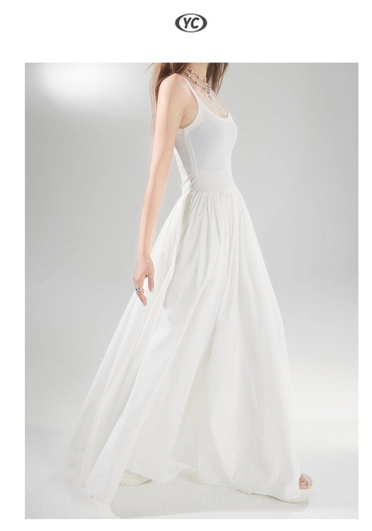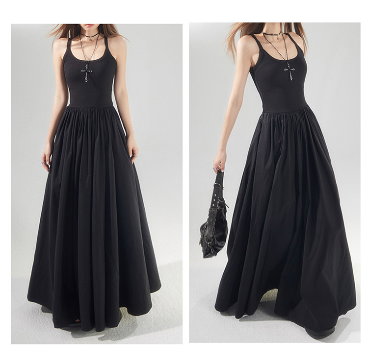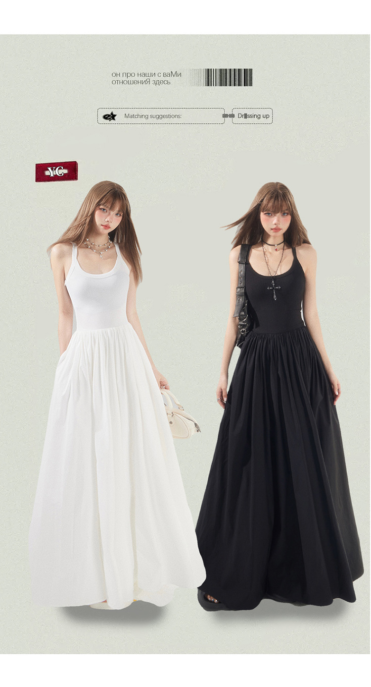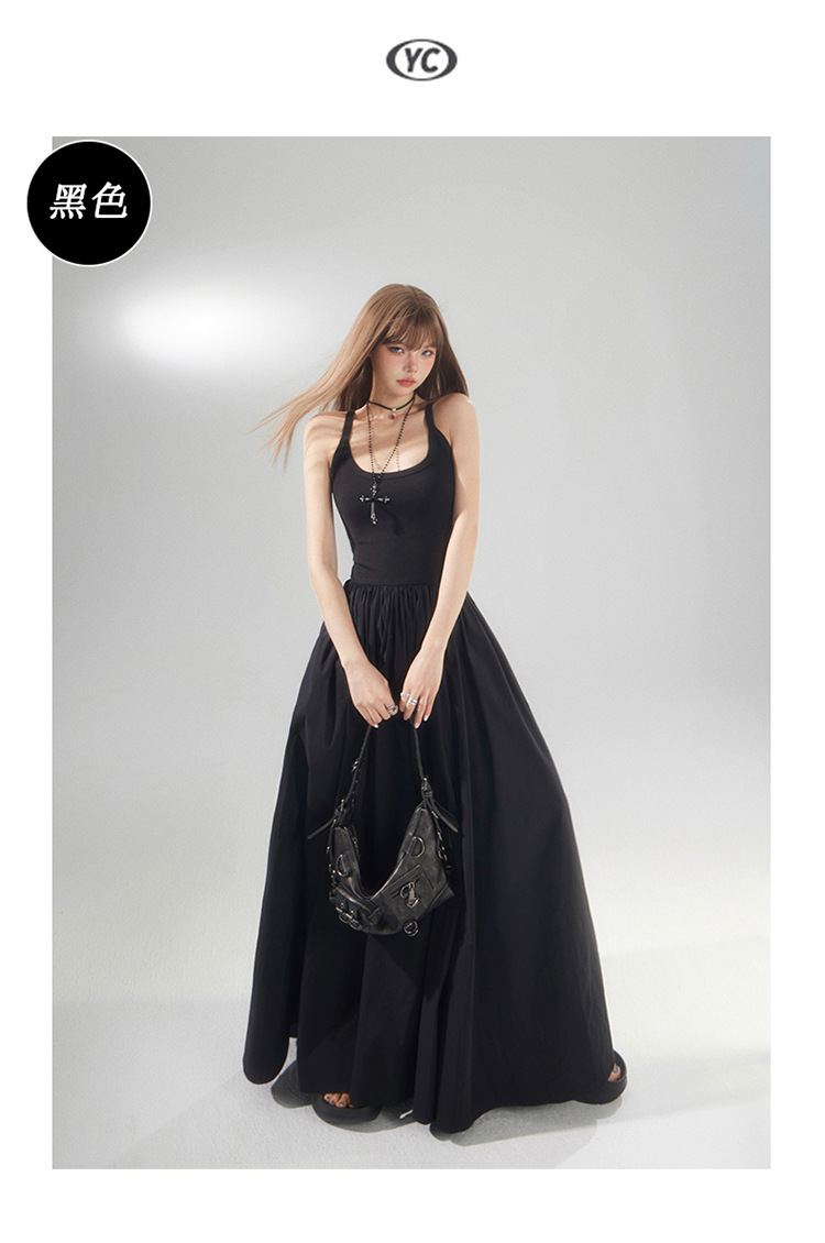 YC & 2 색 미국 복고풍 슬링 허리 원피스 푹신한 기질 조커 슬림 슬림 원피스