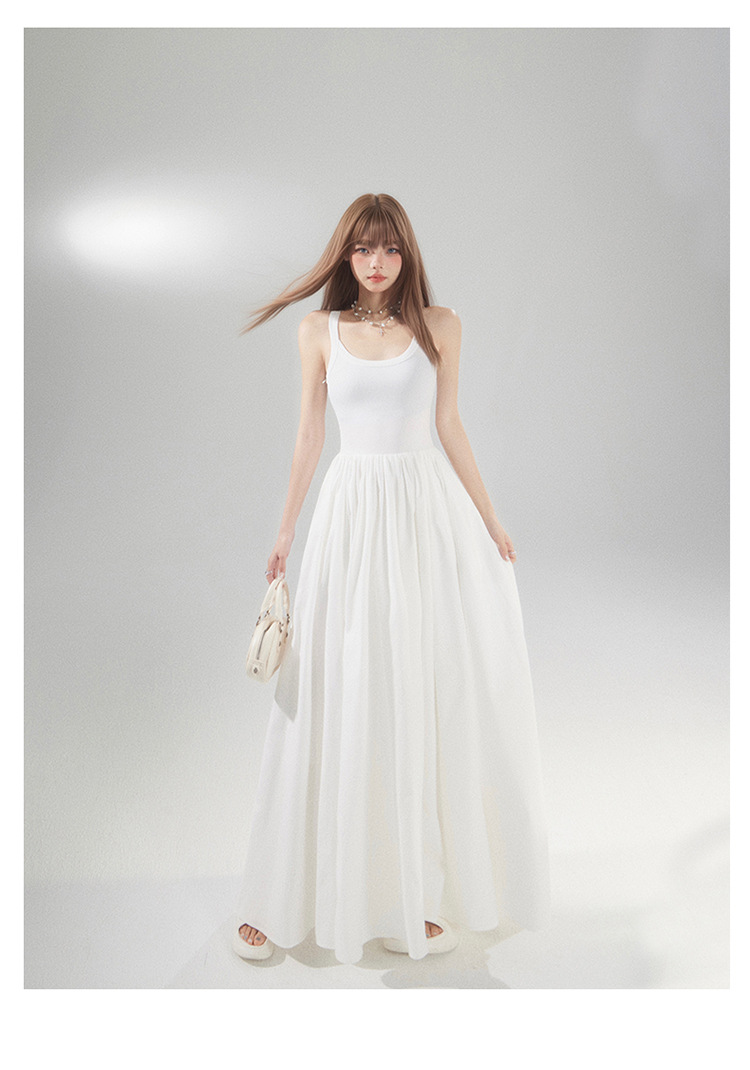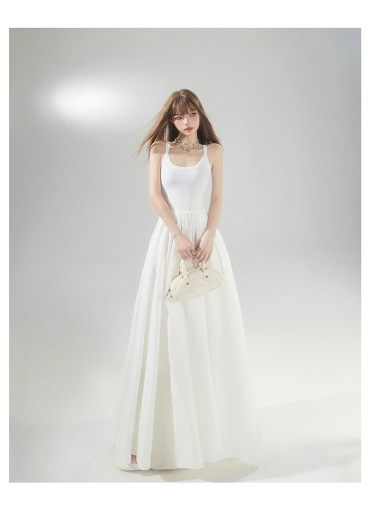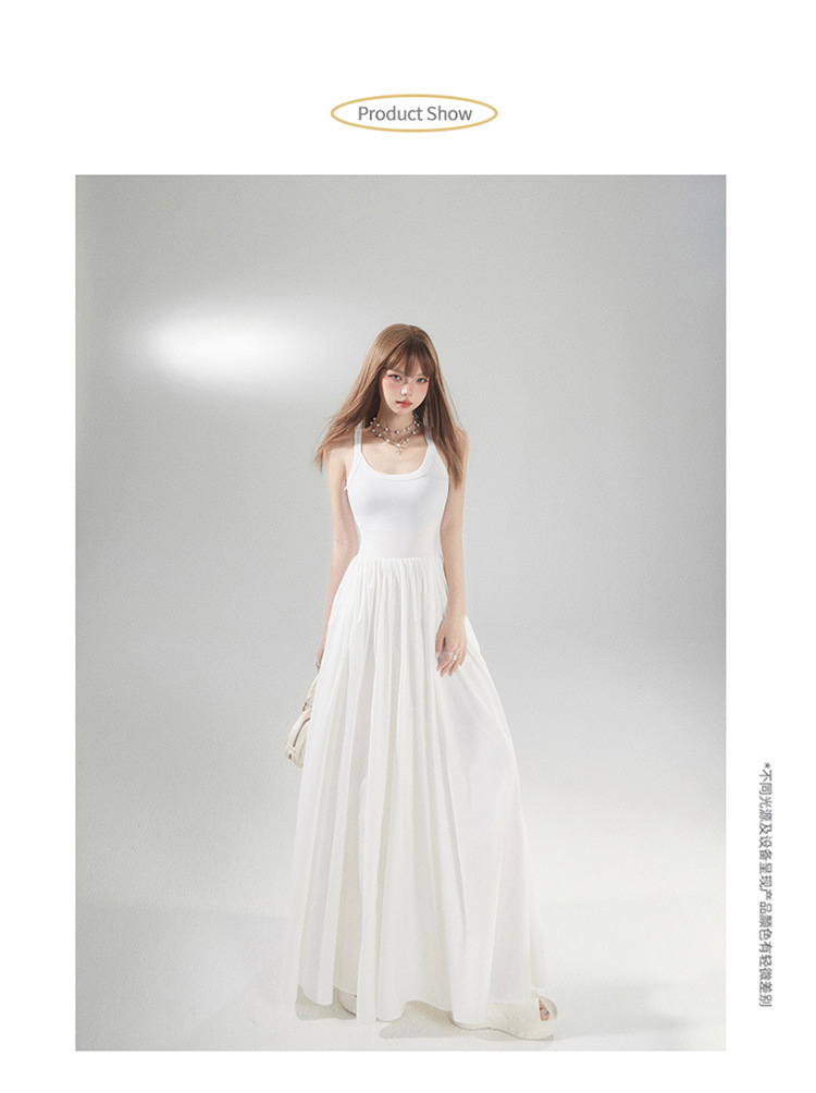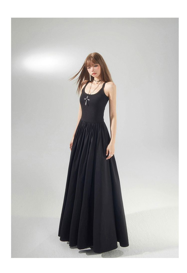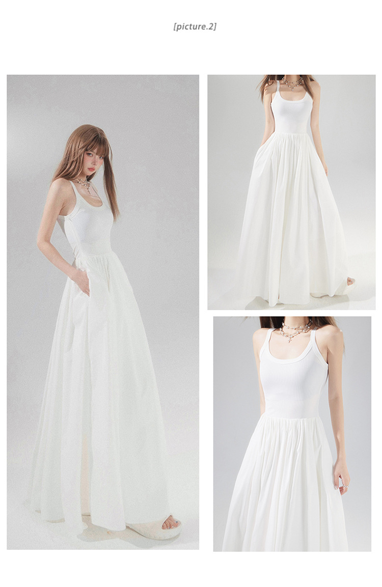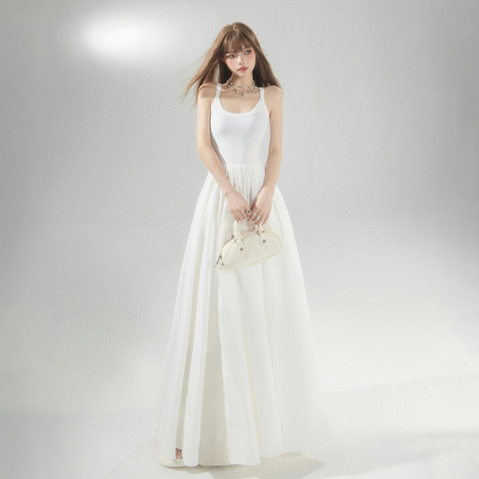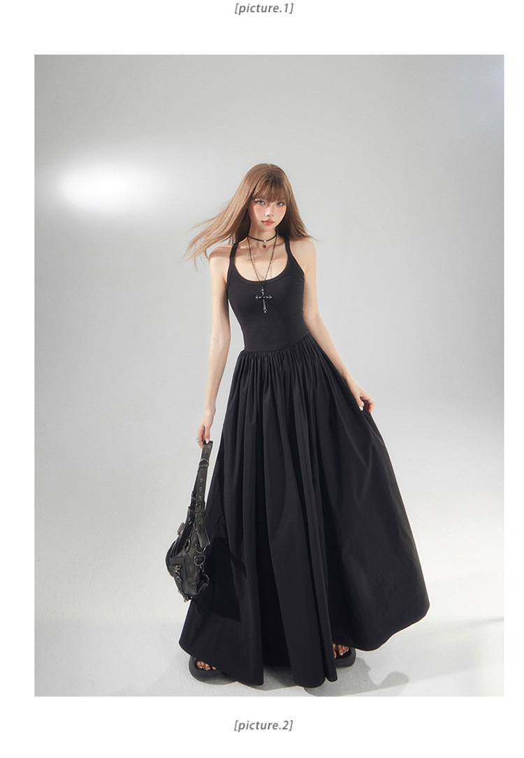 YC & 2 색 미국 복고풍 슬링 허리 원피스 푹신한 기질 조커 슬림 슬림 원피스