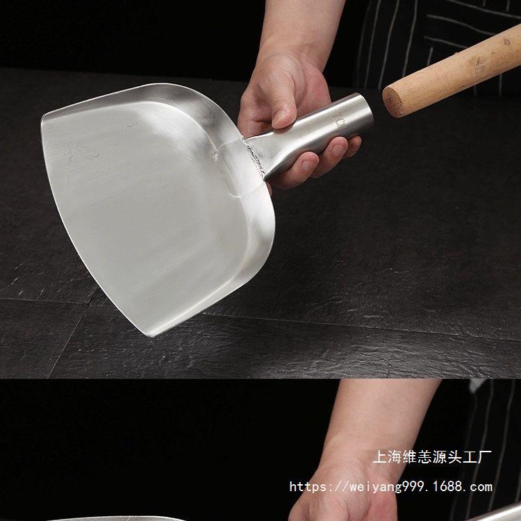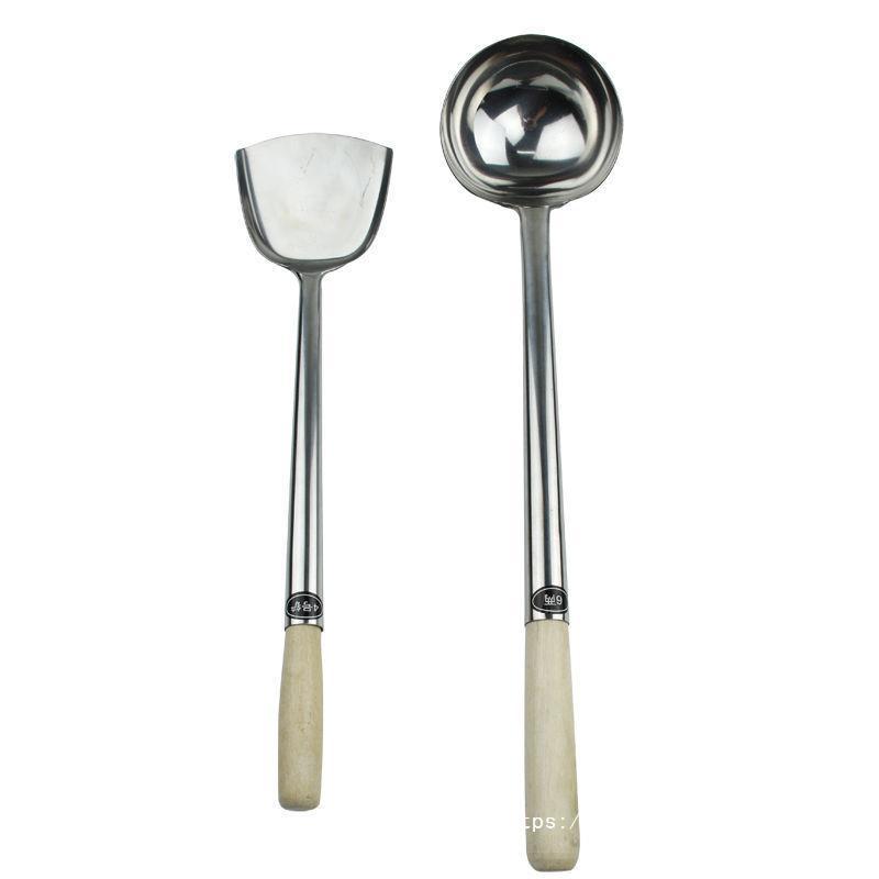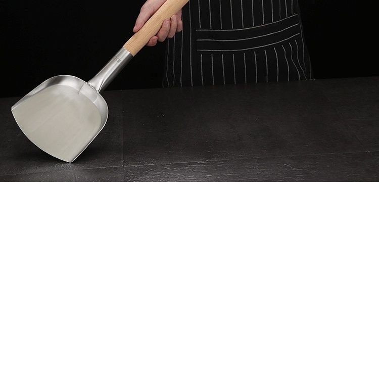 스테인레스 스틸 대형 주걱, 나무 손잡이, 대형 주걱, 매점 레스토랑 요리 주걱, 긴 나무 손잡이 주걱, 강철 손잡이 프라이팬 주걱스토어 가기