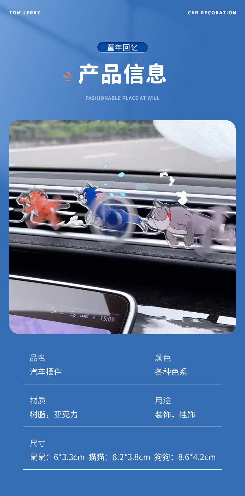 고양이와 마우스 자동차 에어 아울렛 인테리어 장식 스윙 아크릴 브랜드 장식 회전 만화 창조적 인 클립스토어 가기