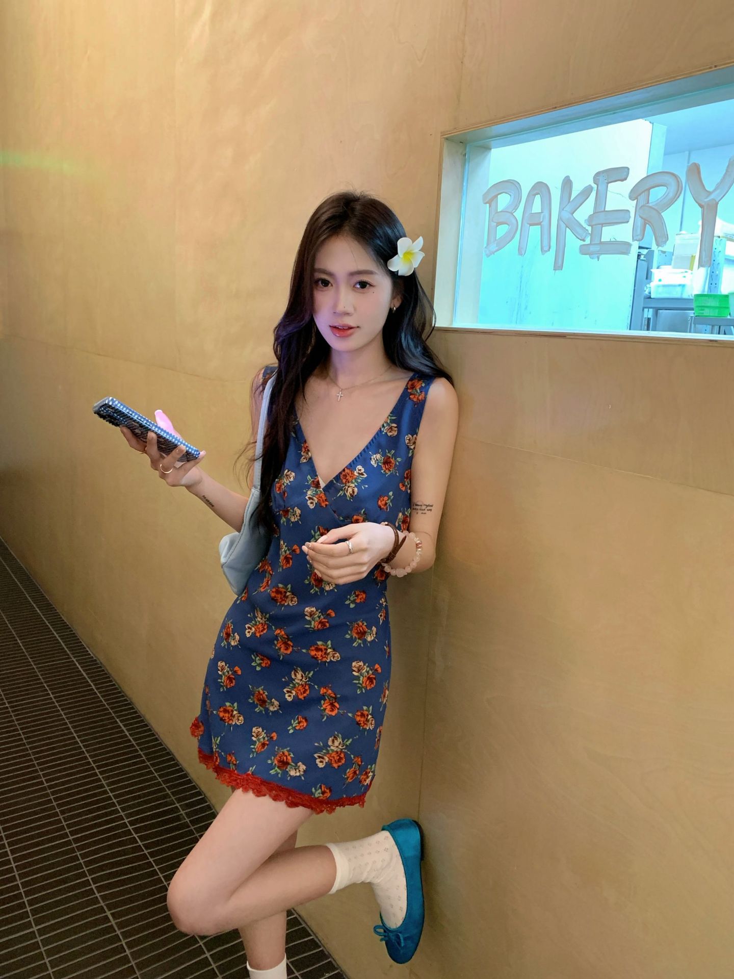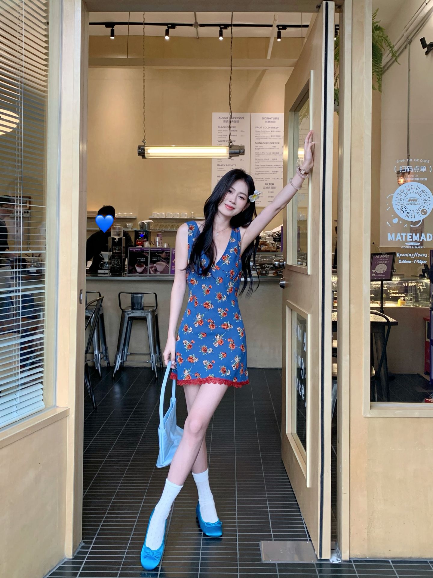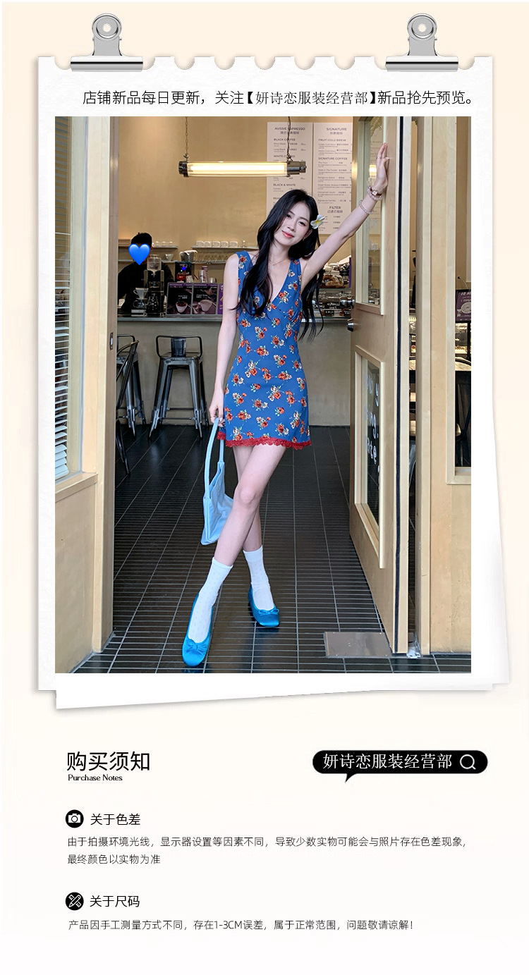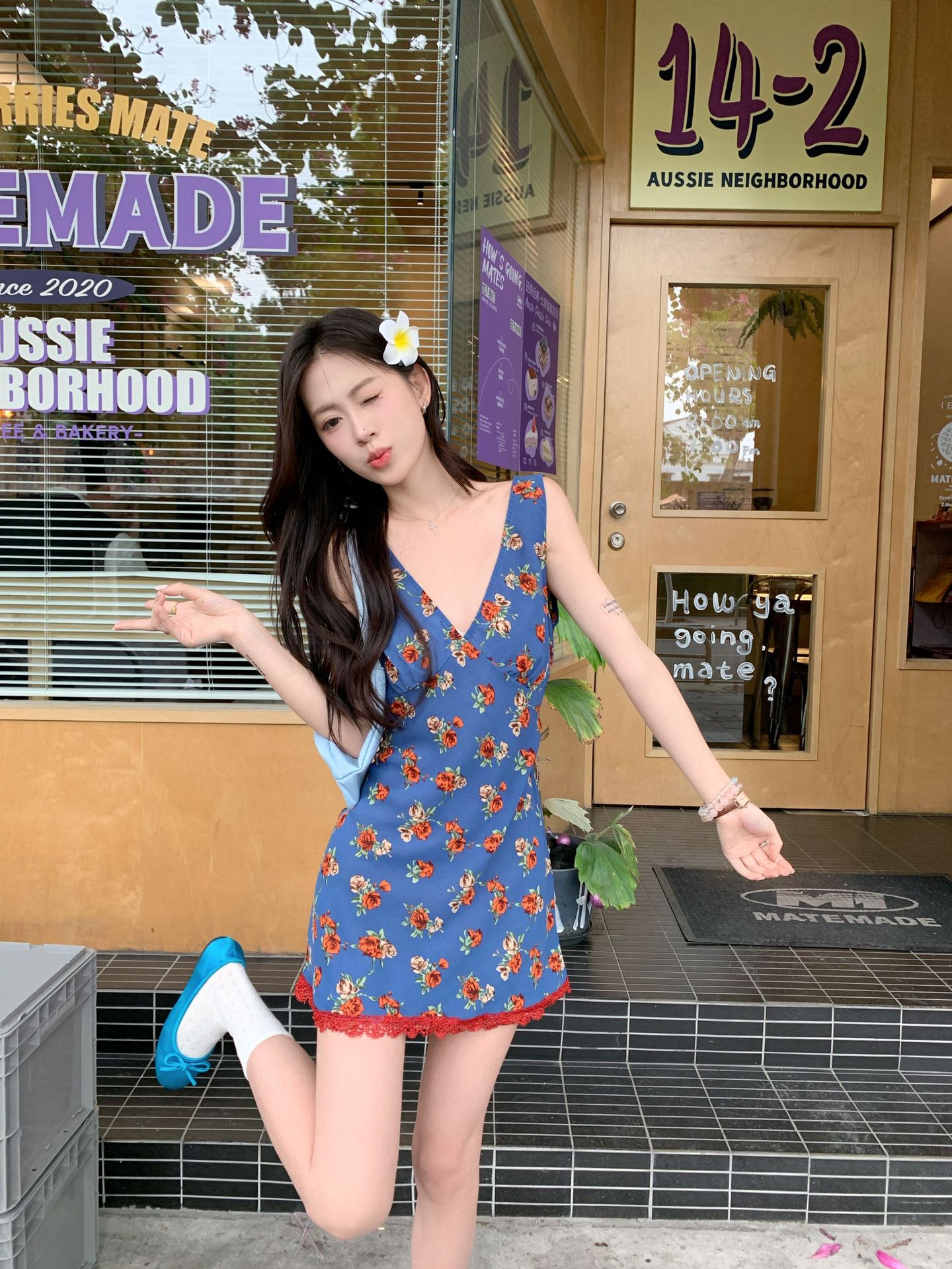 프랑스 레트로 레이스 꽃 우아한 고급 독특한 카미 솔 원피스 여성 휴일 캐주얼 게으른 치마스토어 가기