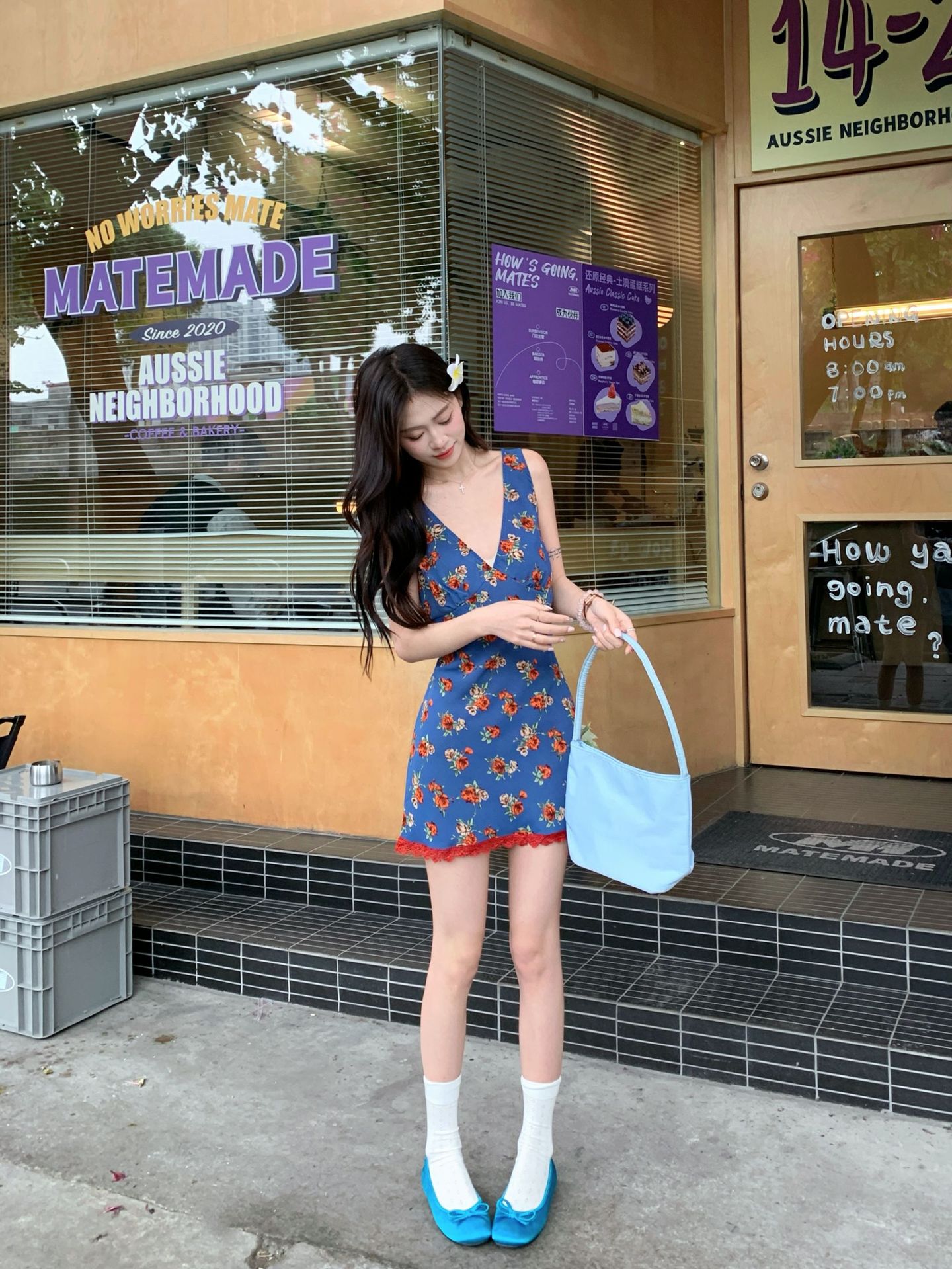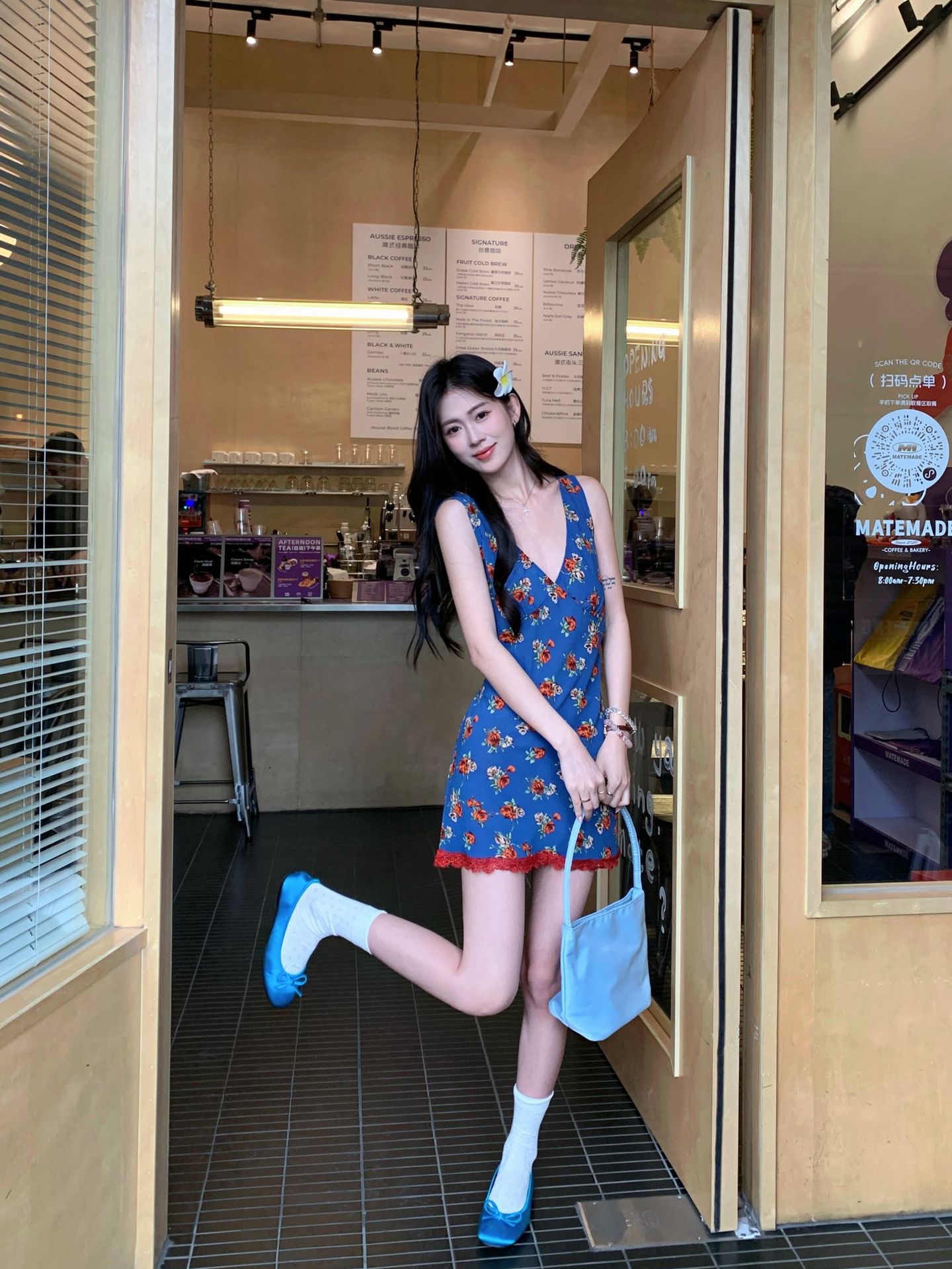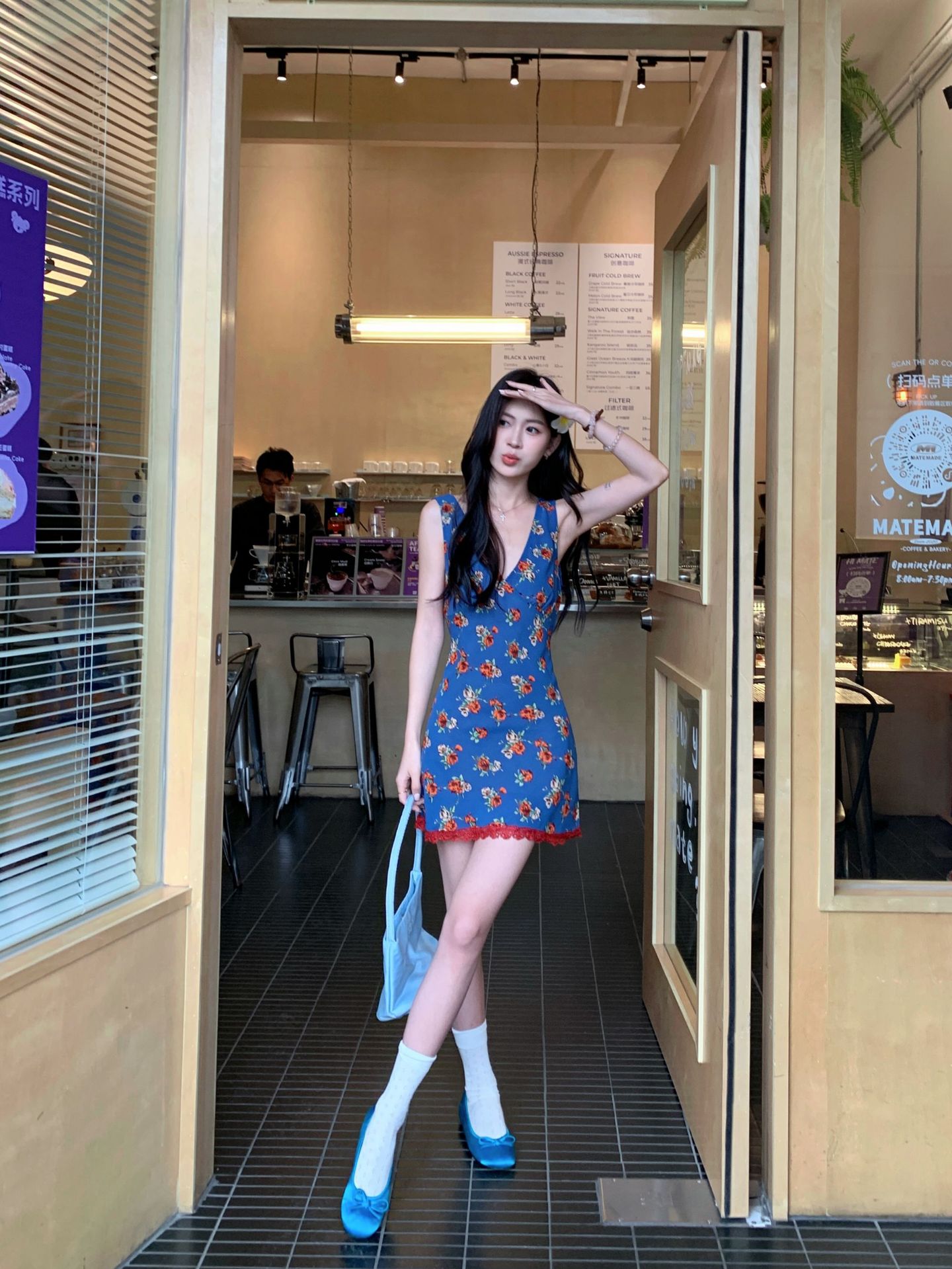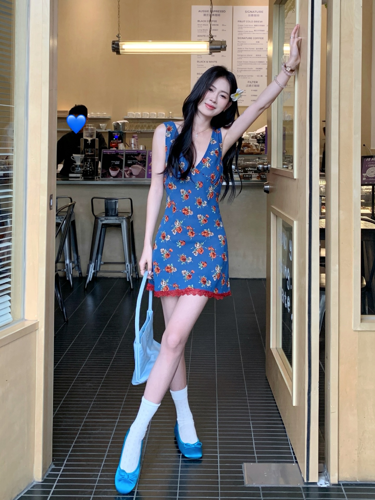 프랑스 레트로 레이스 꽃 우아한 고급 독특한 카미 솔 원피스 여성 휴일 캐주얼 게으른 치마스토어 가기