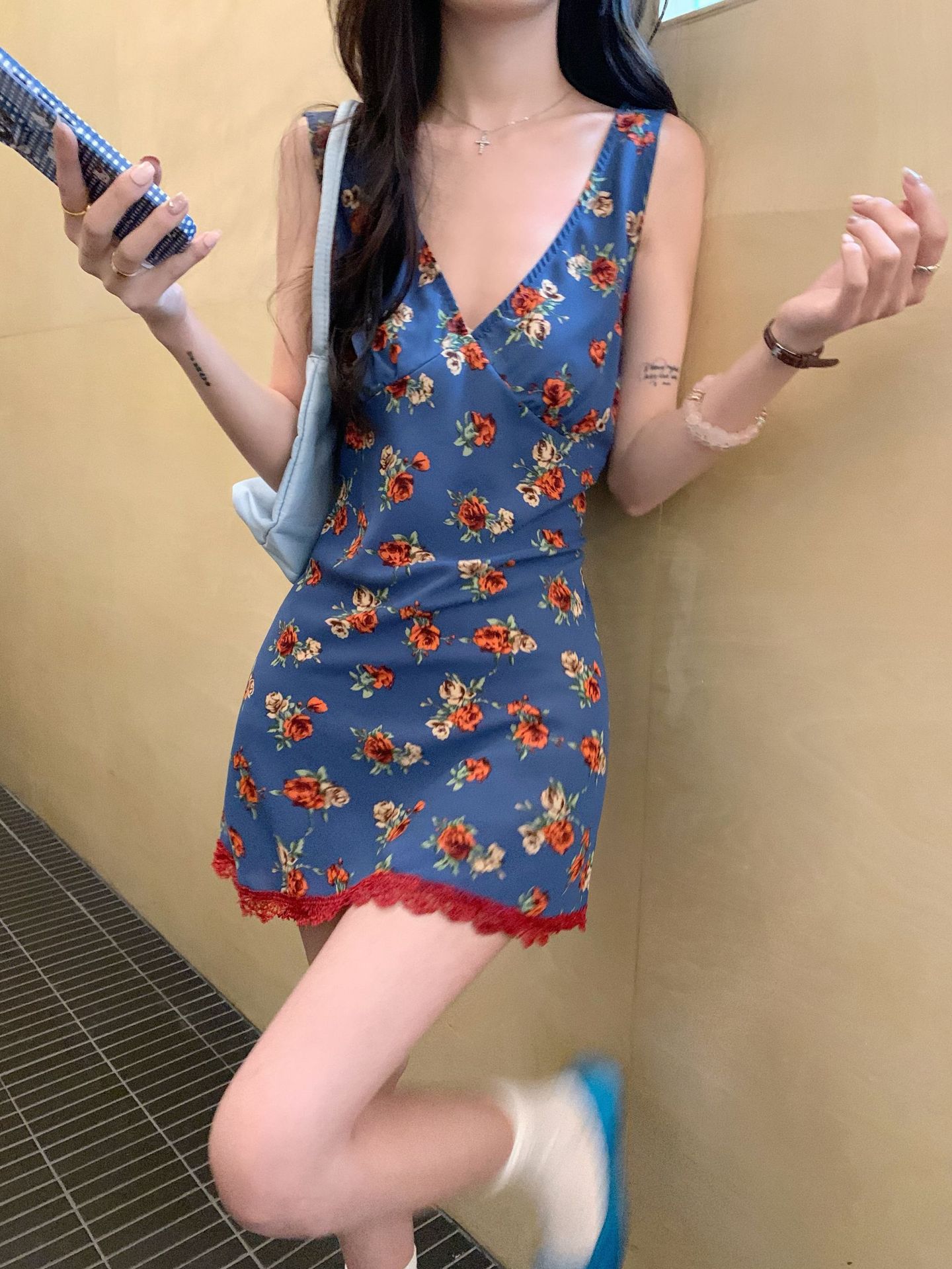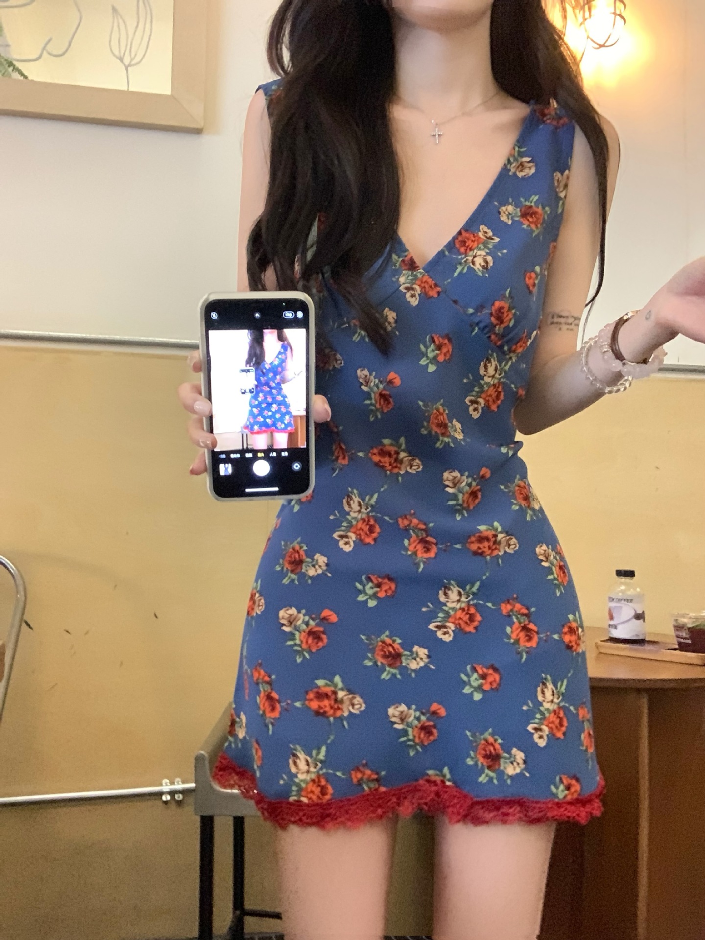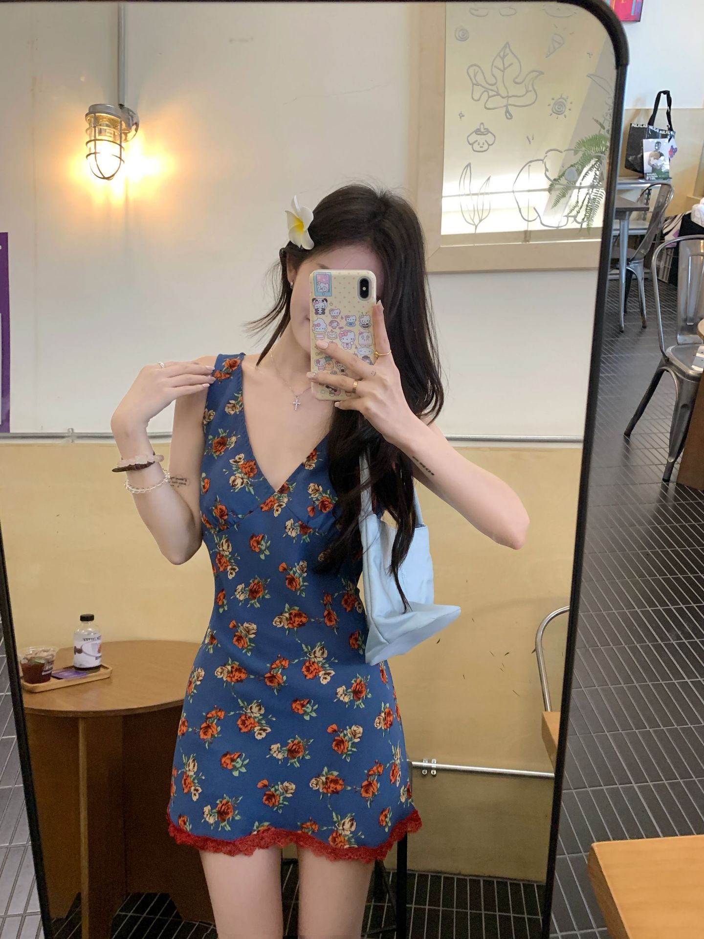 프랑스 레트로 레이스 꽃 우아한 고급 독특한 카미 솔 원피스 여성 휴일 캐주얼 게으른 치마