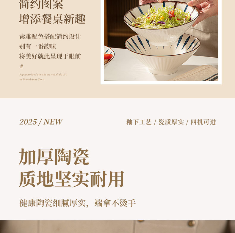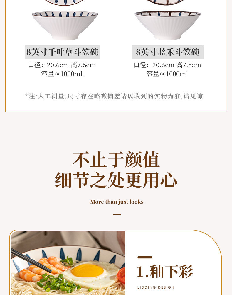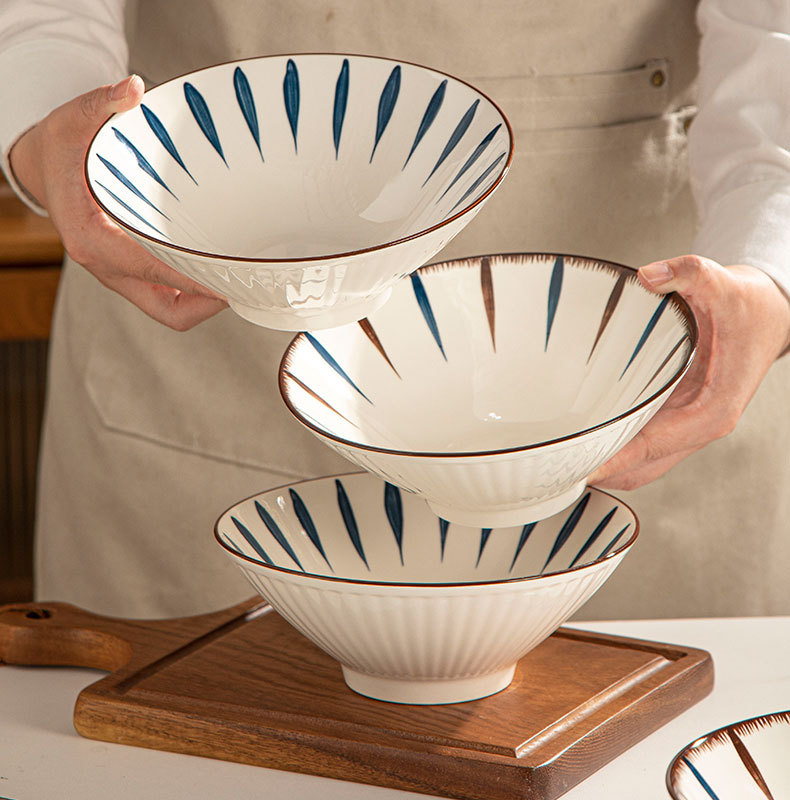 Underglyze Colorful Tableware Bowl 가정용 고급 일본식 라면그릇 양동이 그릇 수프 국수 그릇 세라믹 대형 사발 국수 그릇
