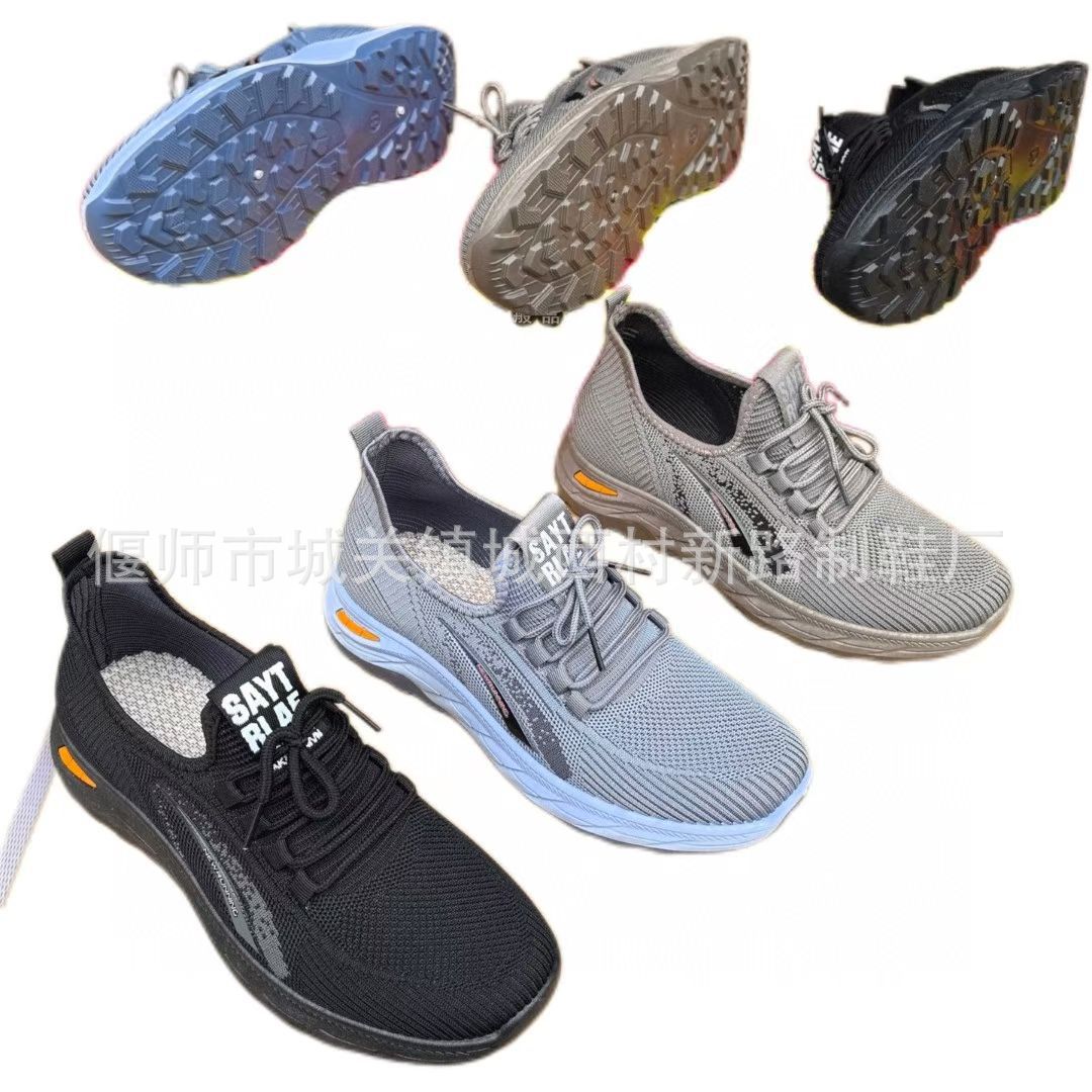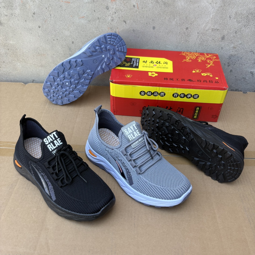 봄 신작 남성 캐주얼 신발 플라이 짠 경량 남성 스포츠 신발 중년 및 노인 아빠를위한 야외 통기성 신발