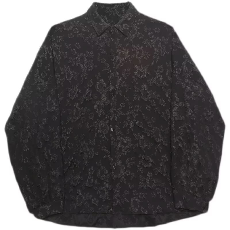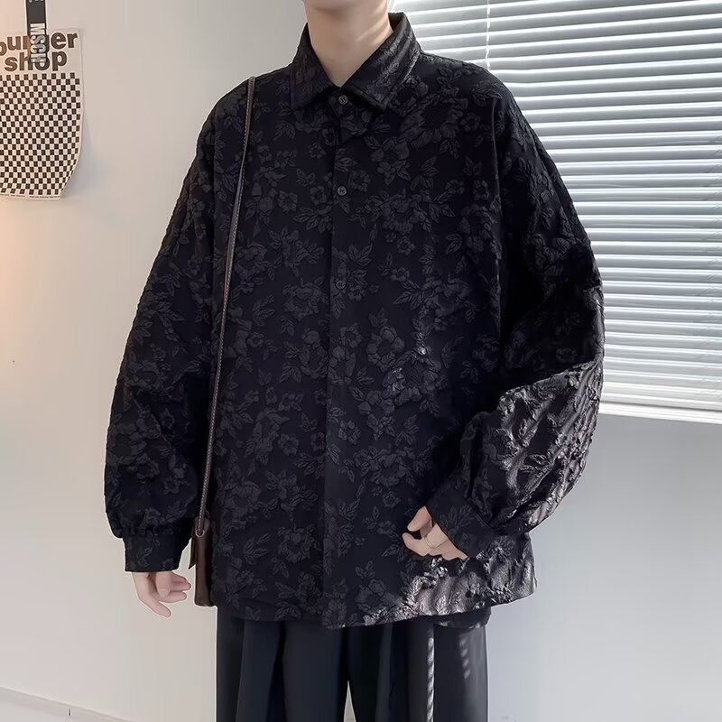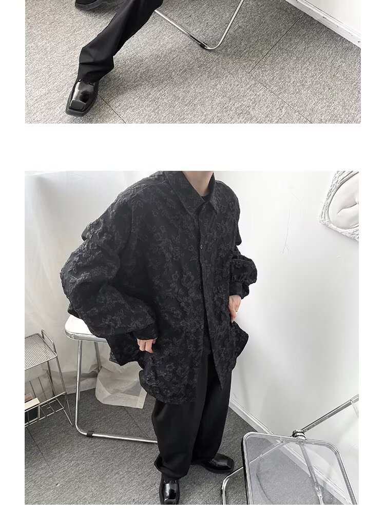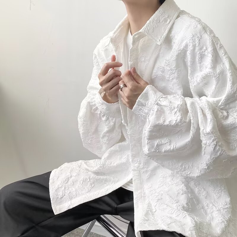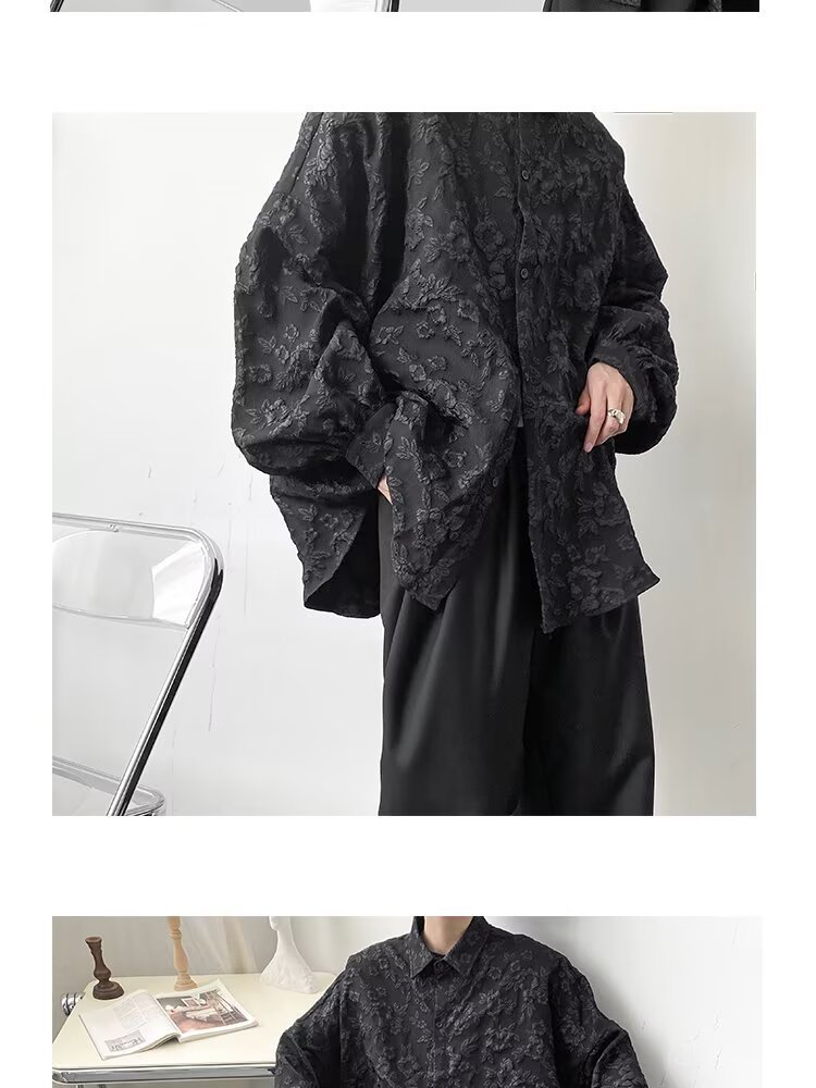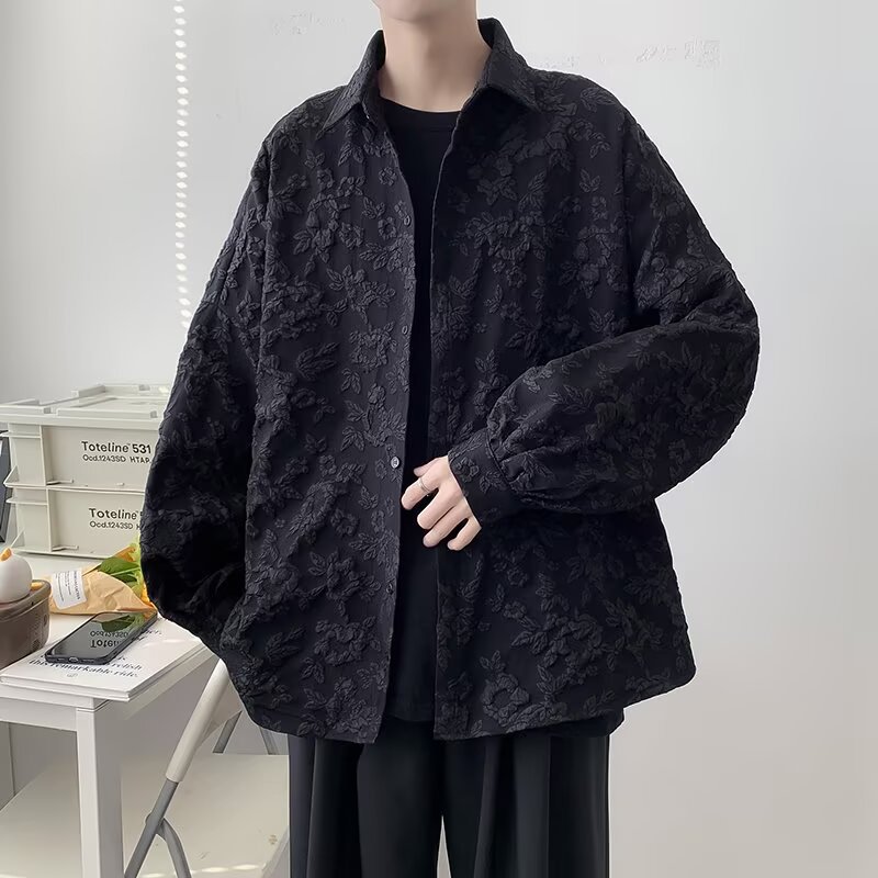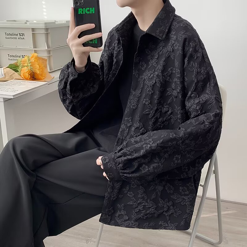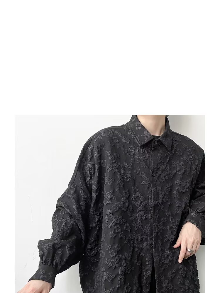 새로운 다크 스타일의 가볍고 성숙한 스타일의 남성용 엠보싱 자카드 긴팔 셔츠 재킷 일본식 금욕 스타일 셔츠스토어 가기