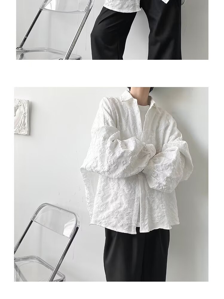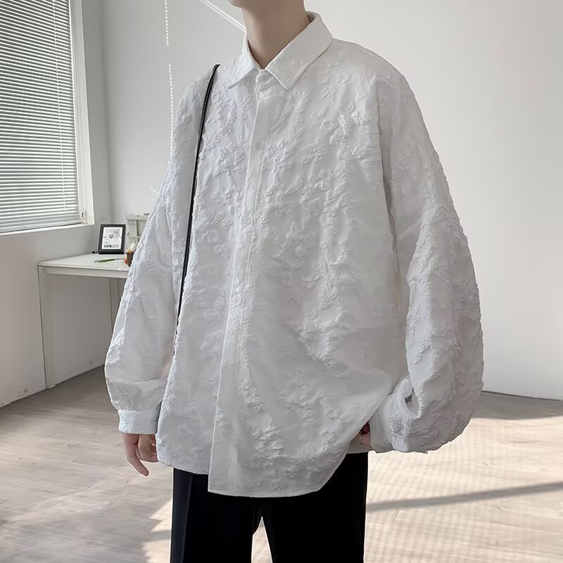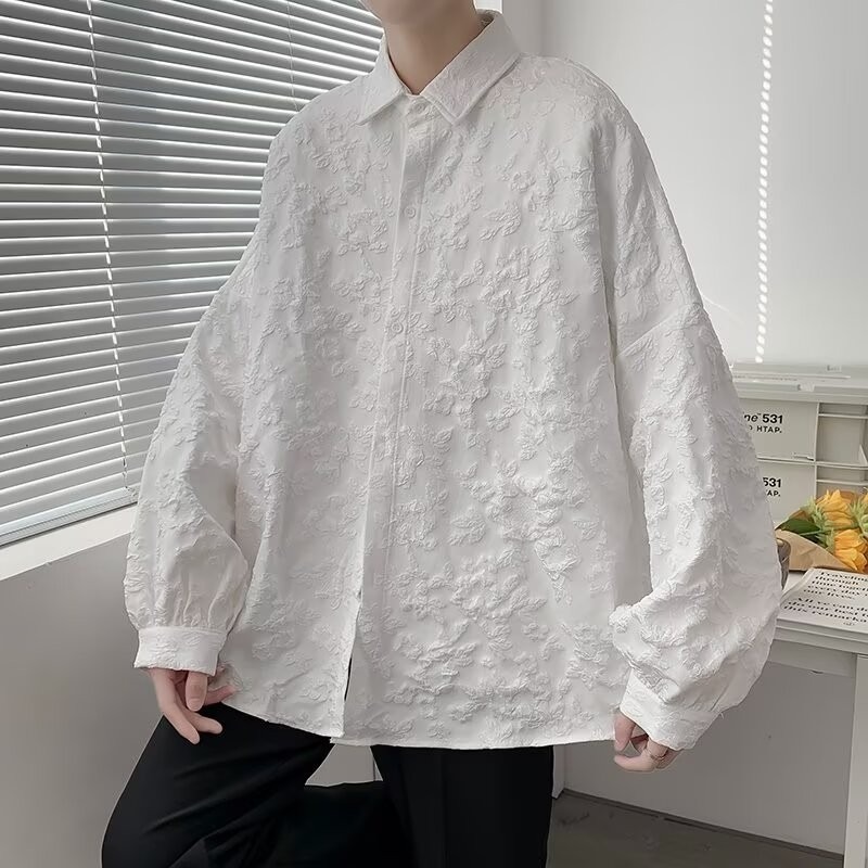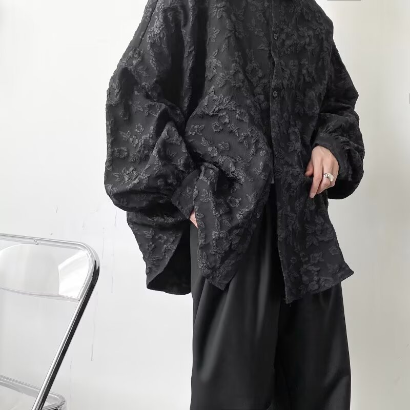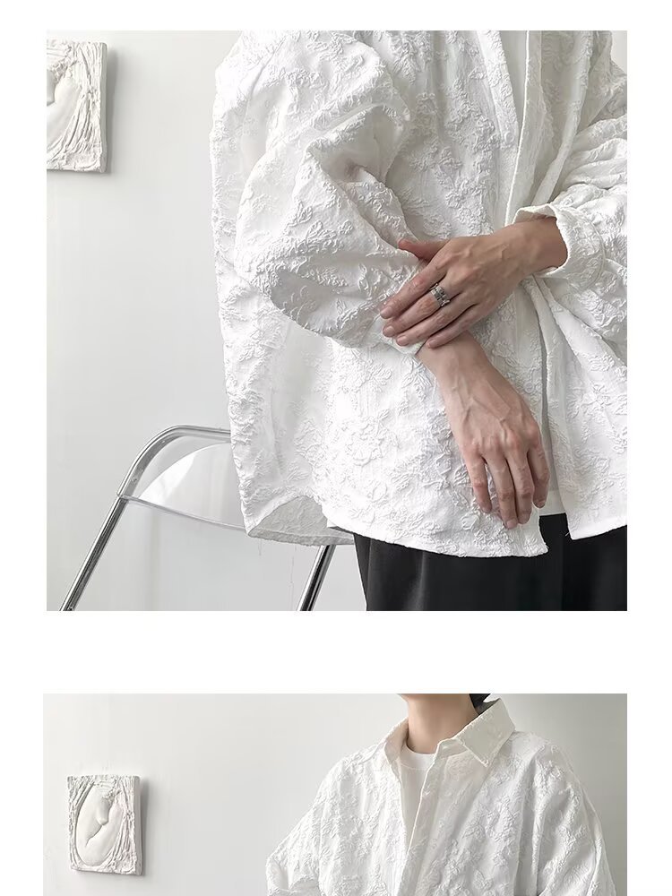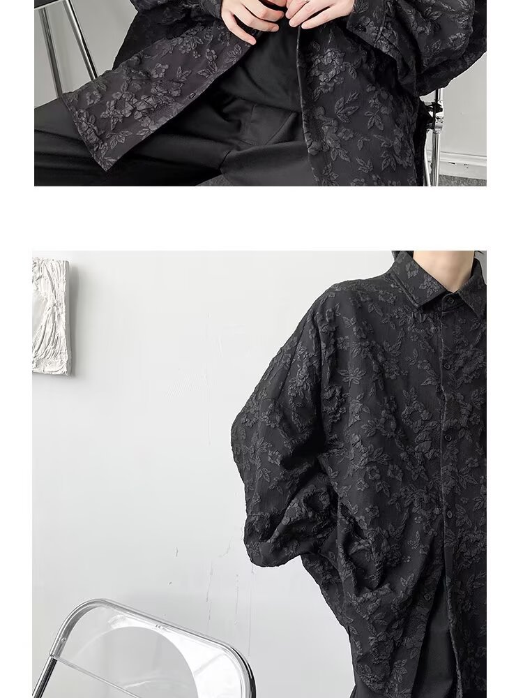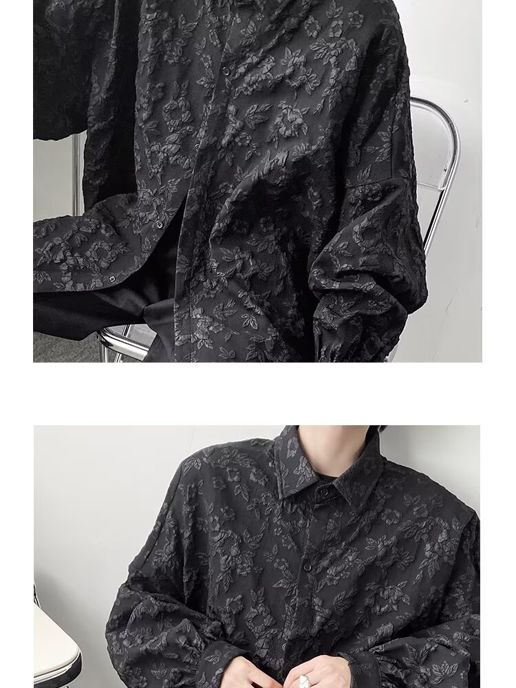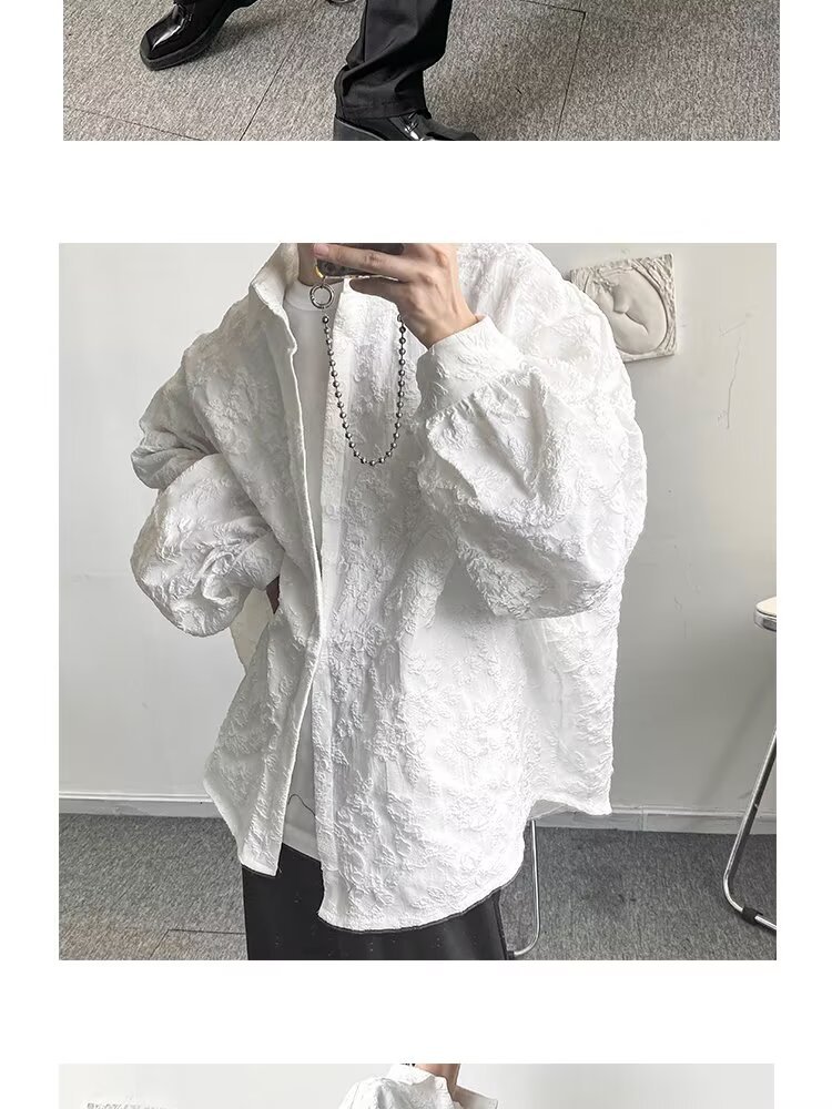 새로운 다크 스타일의 가볍고 성숙한 스타일의 남성용 엠보싱 자카드 긴팔 셔츠 재킷 일본식 금욕 스타일 셔츠스토어 가기