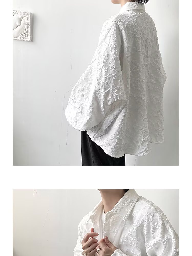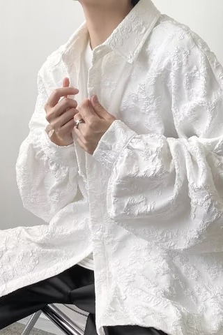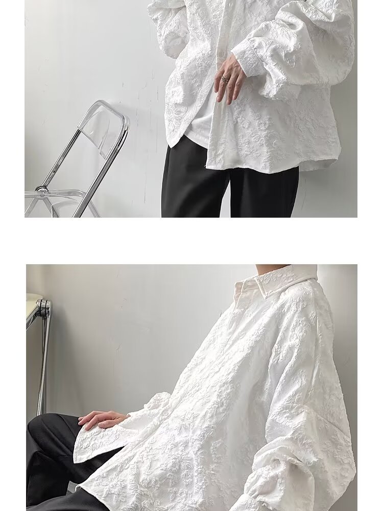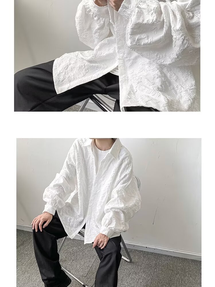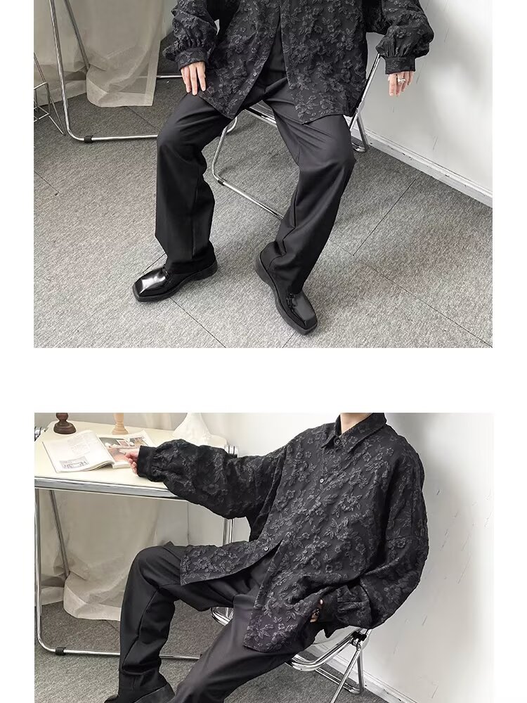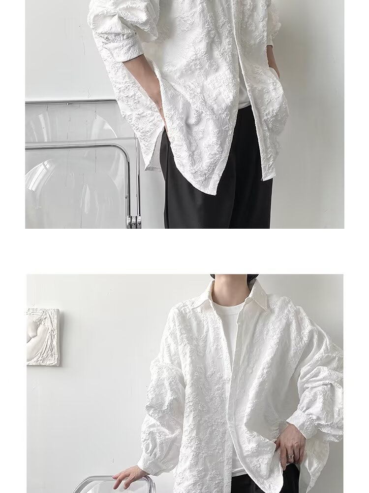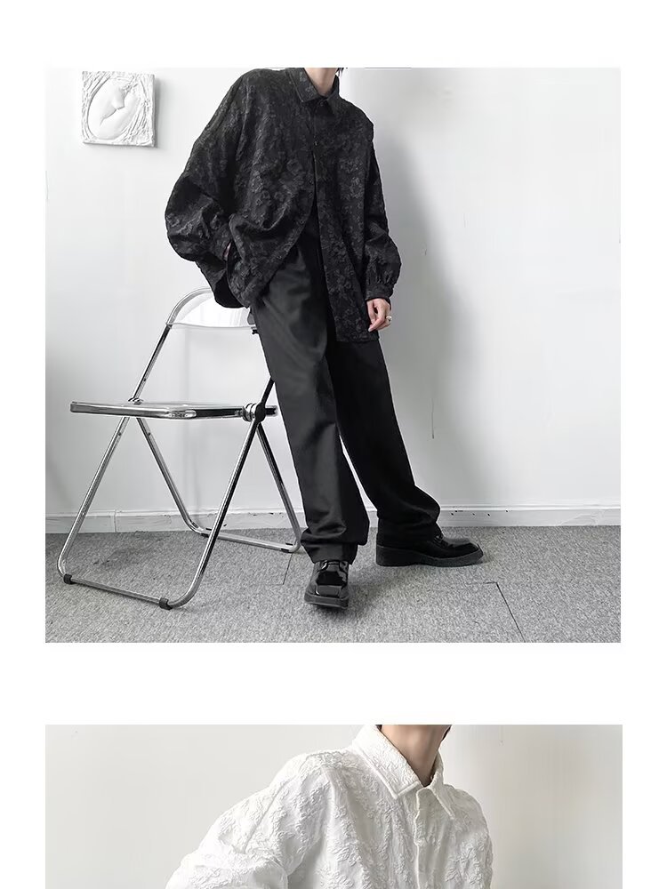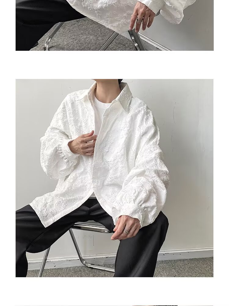 새로운 다크 스타일의 가볍고 성숙한 스타일의 남성용 엠보싱 자카드 긴팔 셔츠 재킷 일본식 금욕 스타일 셔츠스토어 가기