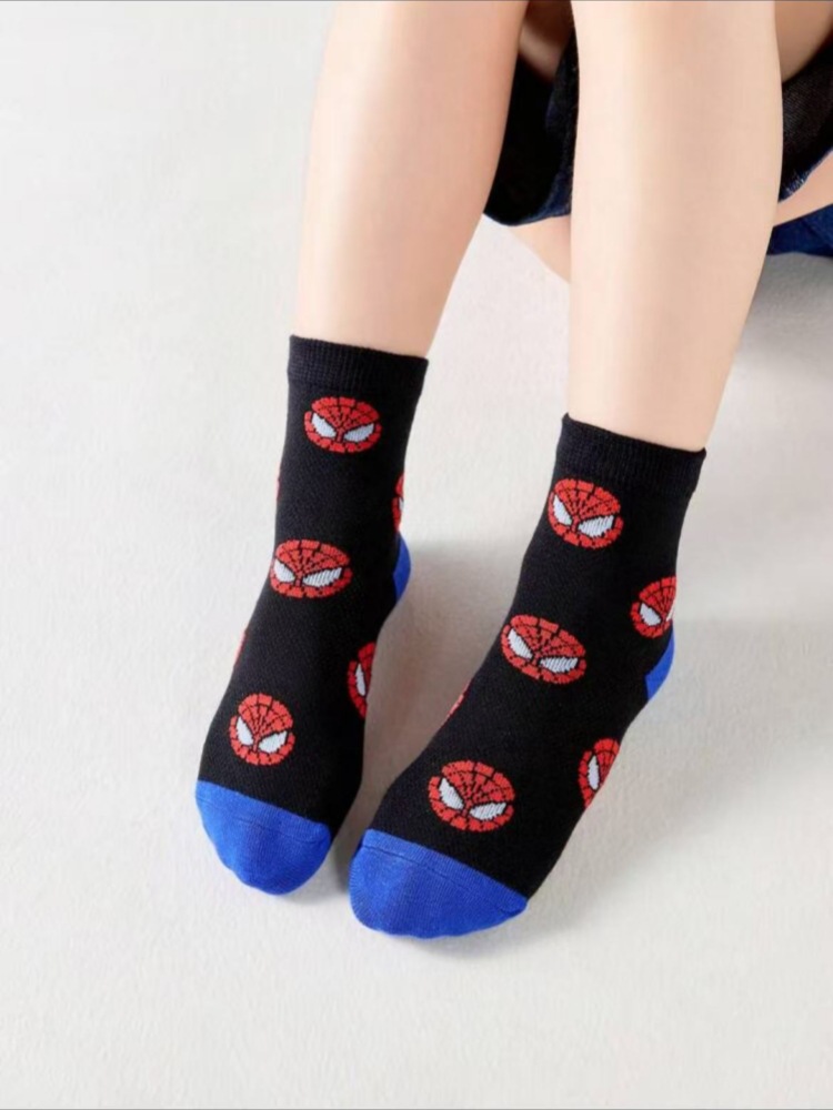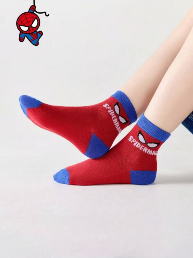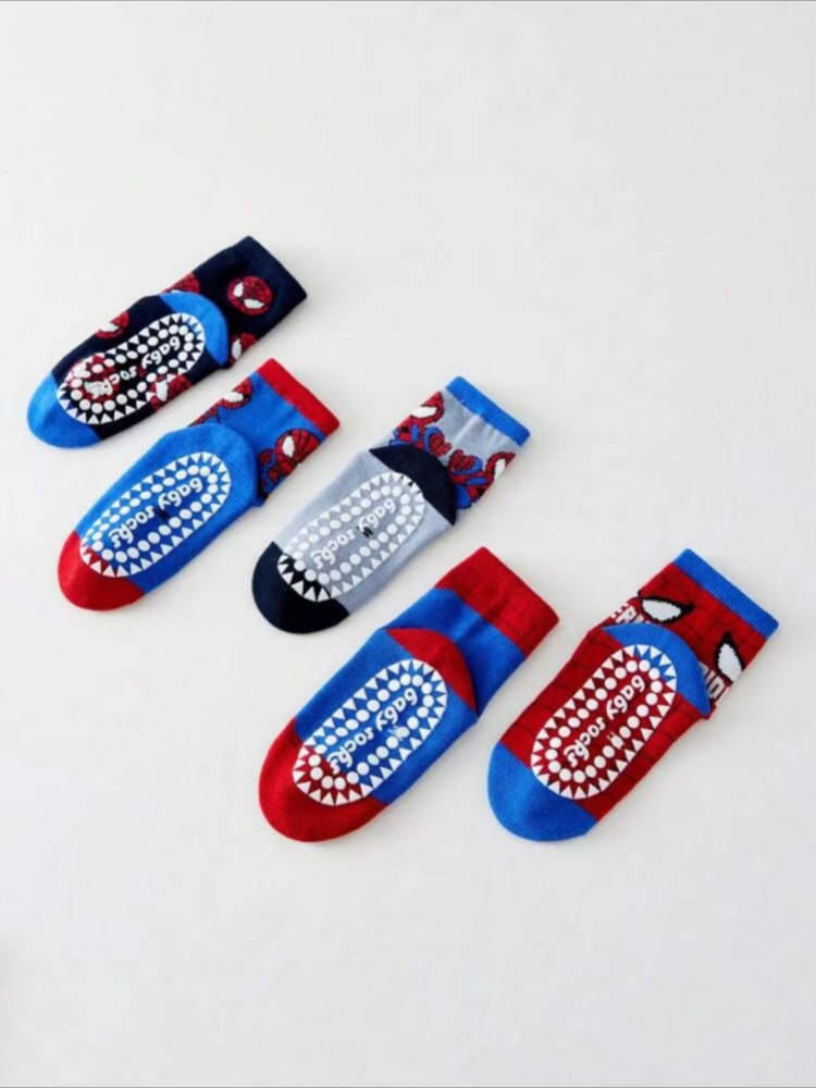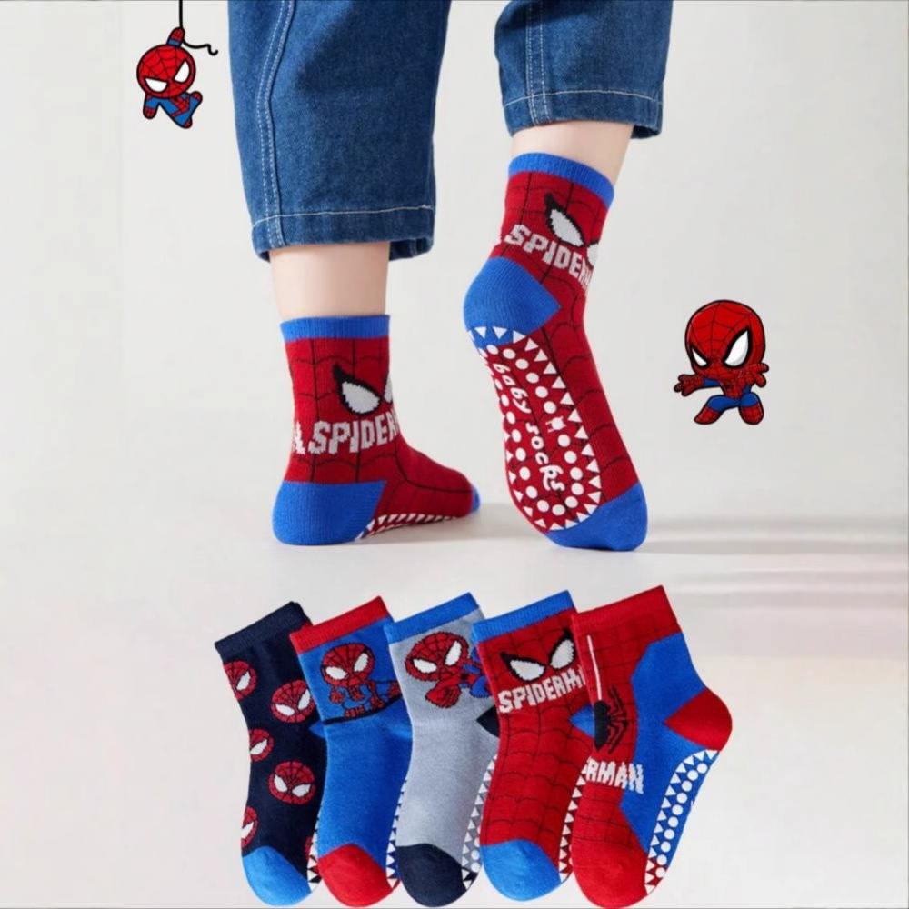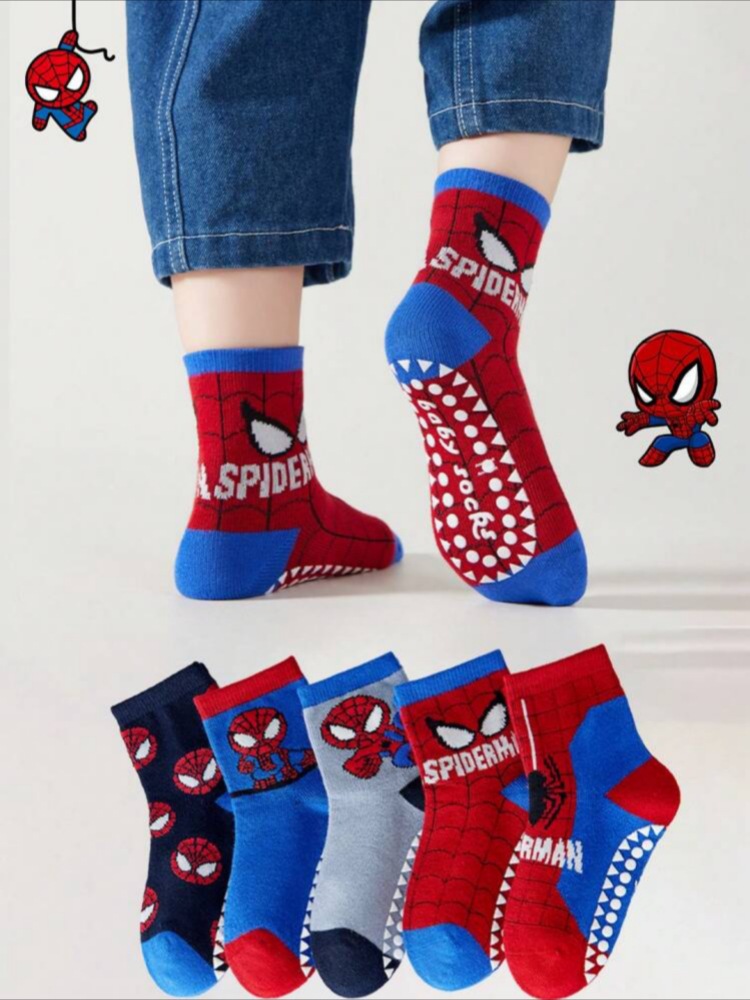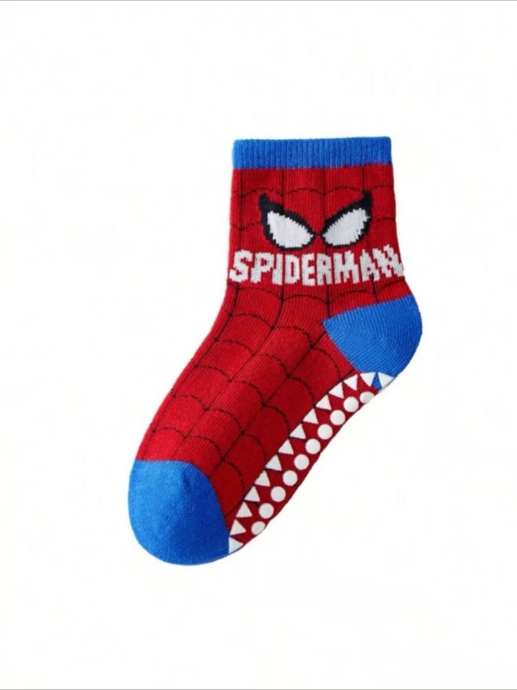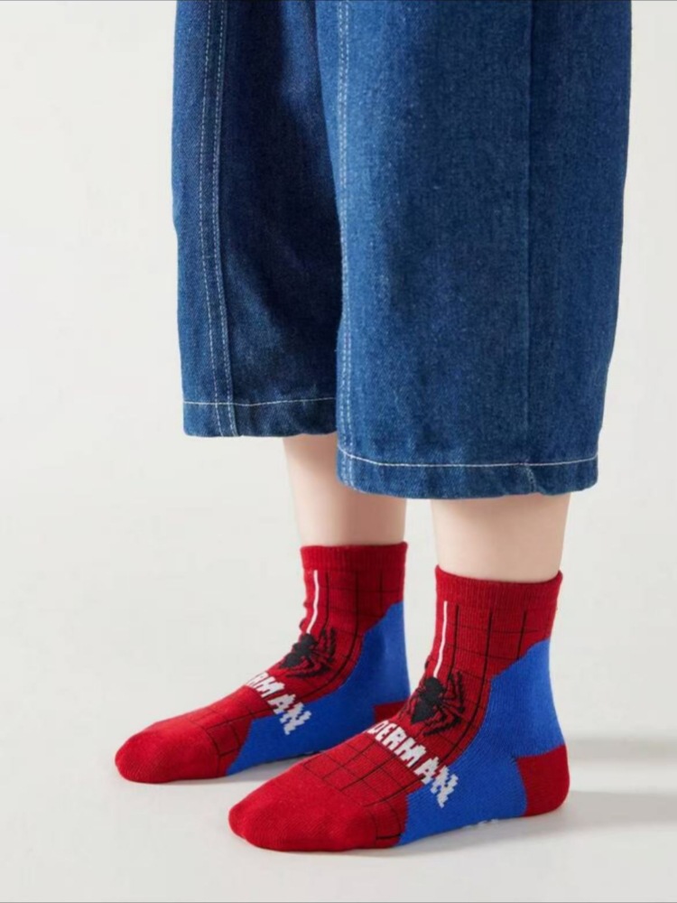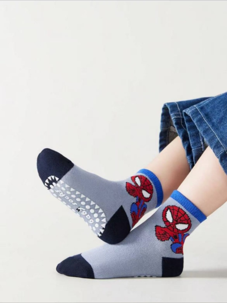 국경 어린이 스파이더 맨 메쉬 양말 통기성 만화 슈퍼 히어로 통기성 미끄럼 방지 소년 바닥 양말