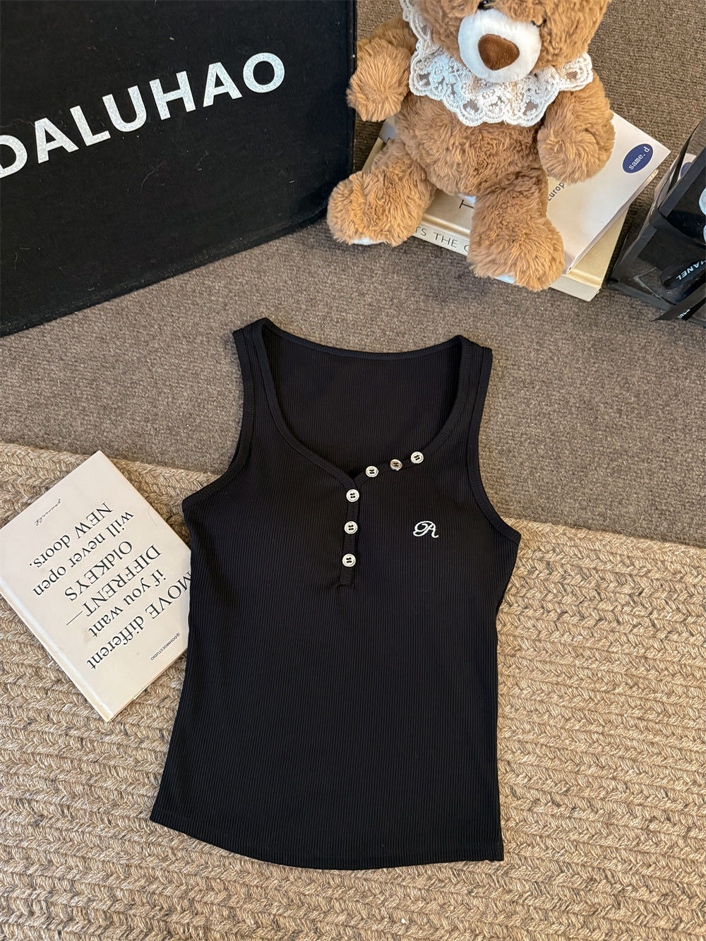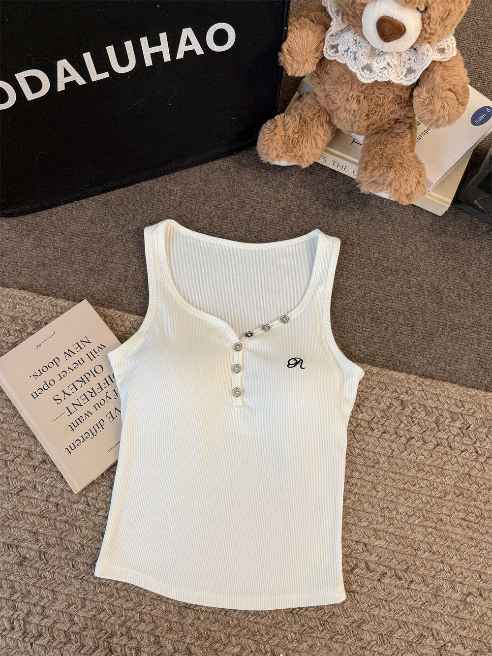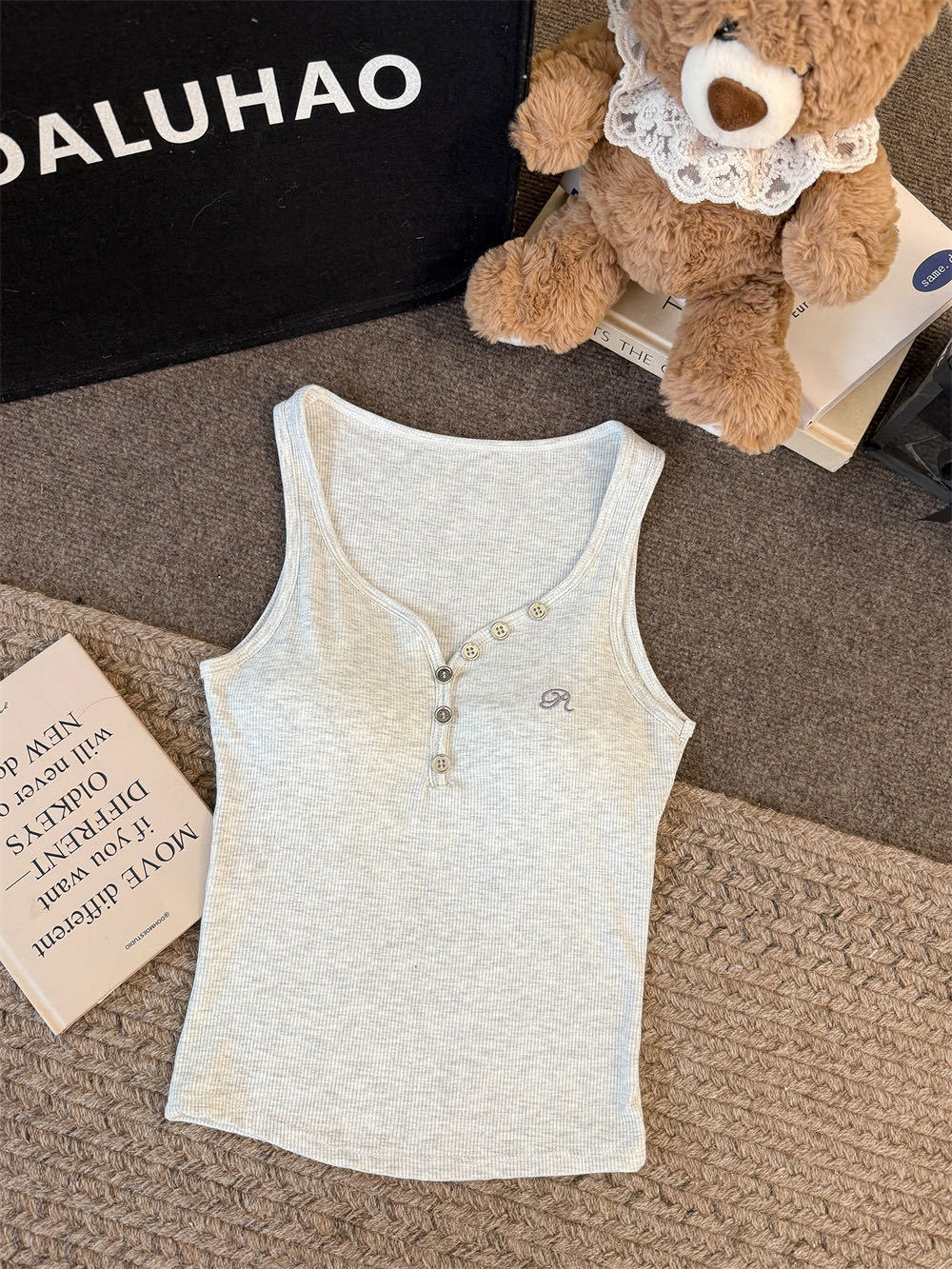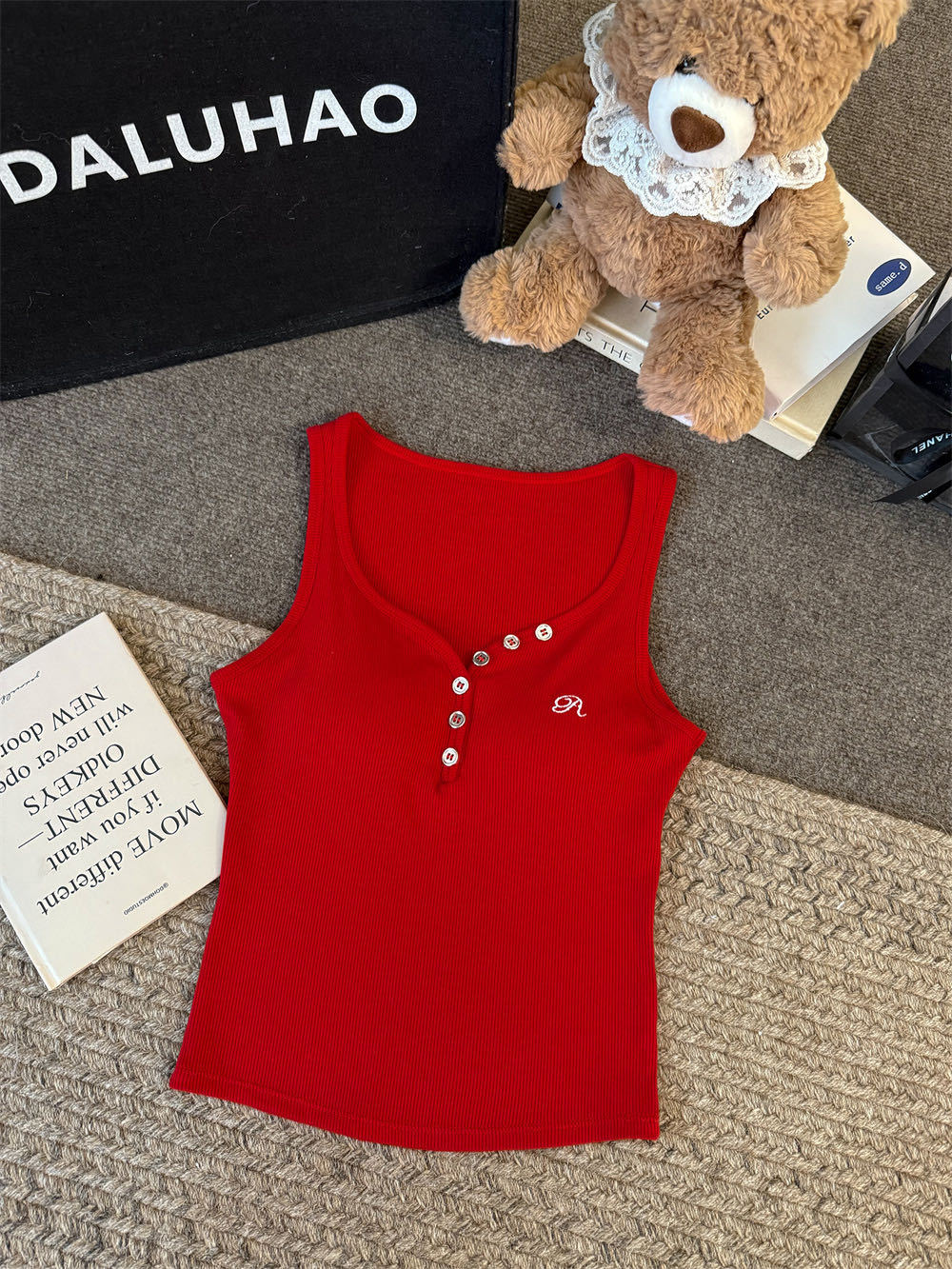 레드 V 넥 버튼 외부 착용 카미솔 여성의 여름 새로운 민소매 슬림 핏 유방 커버 뷰티 백 이너 탑