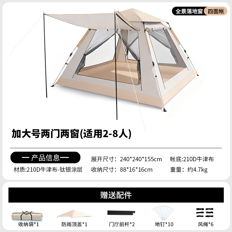 야외 텐트 야영용 휴대용 접이식 방수 폭우 방지 두꺼운 캠핑 장비 풀세트 자동스토어 가기