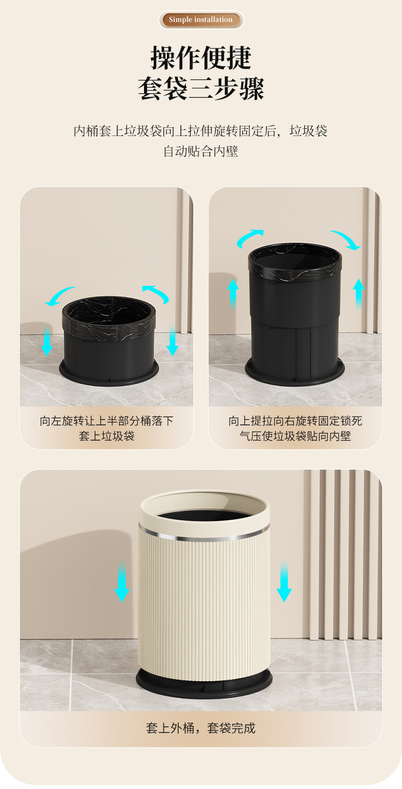 공기 압력 흡착 휴지통 가정용 거실 침실 욕실 현대 간단한 창조적 인 대용량 커버리스 위생 양동이스토어 가기