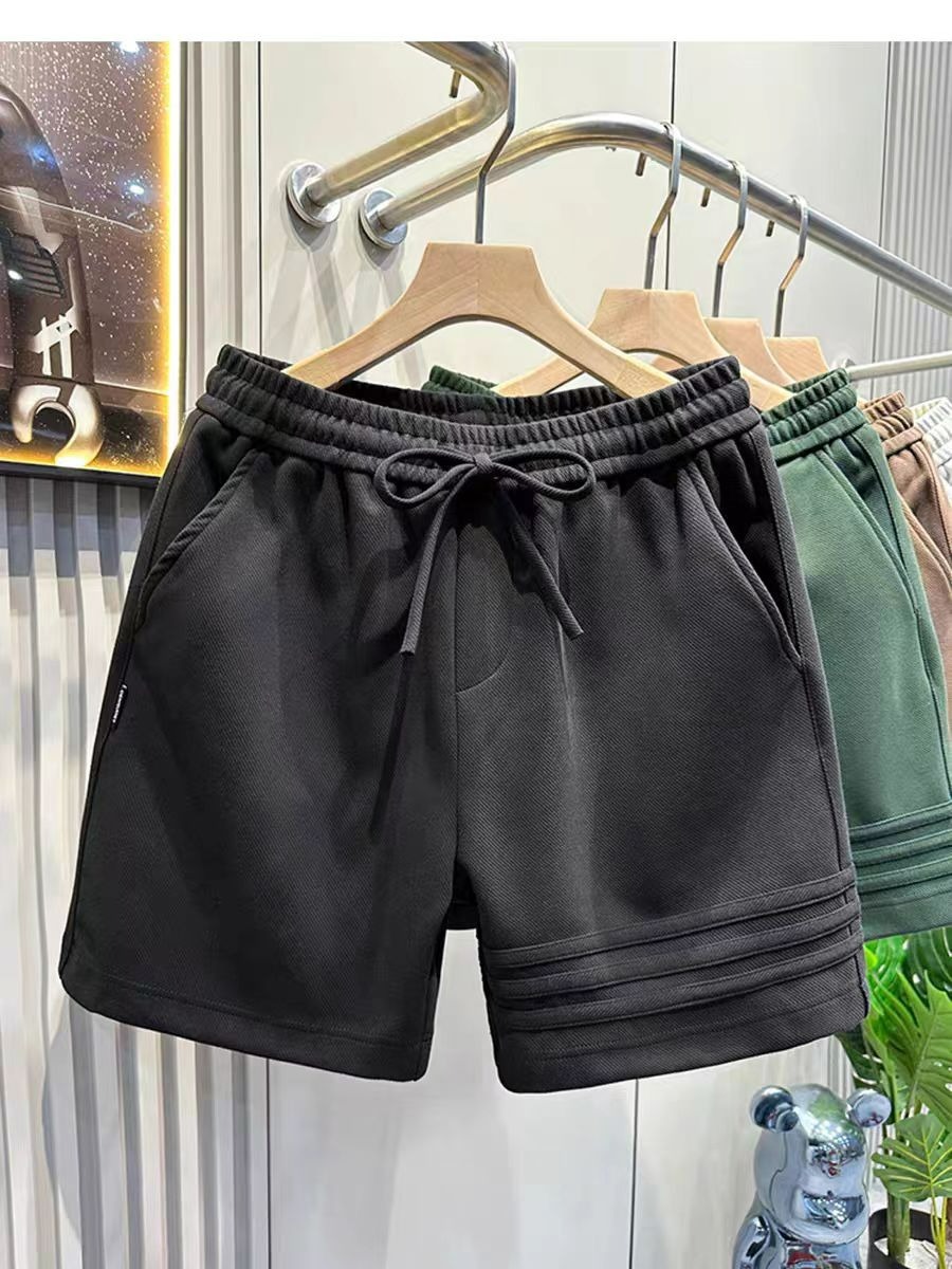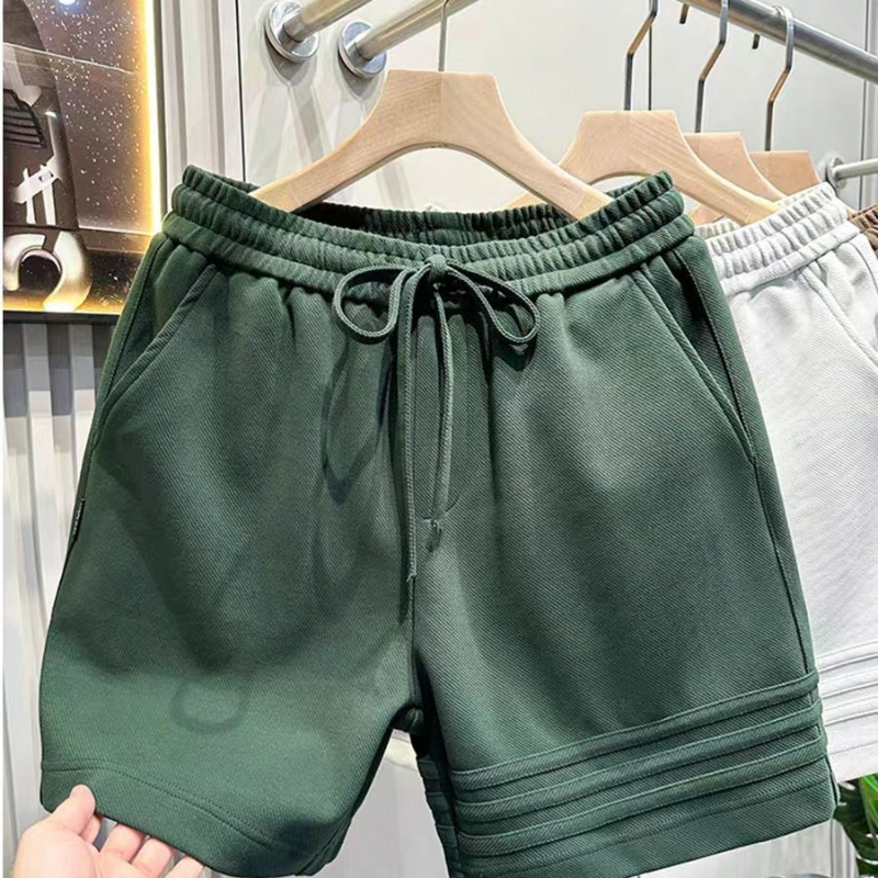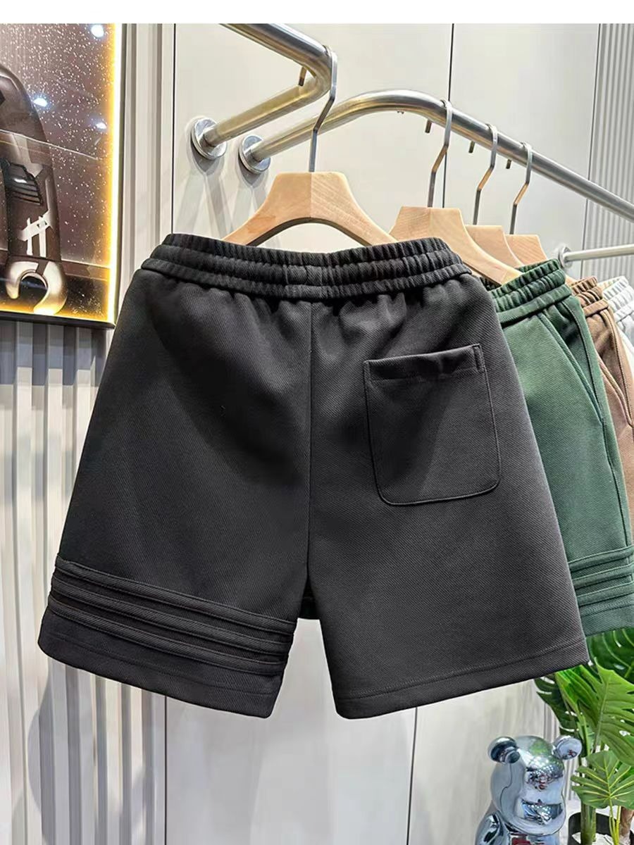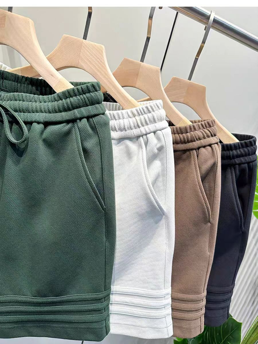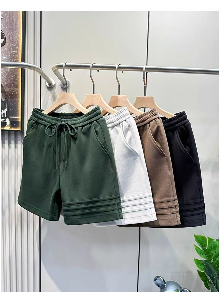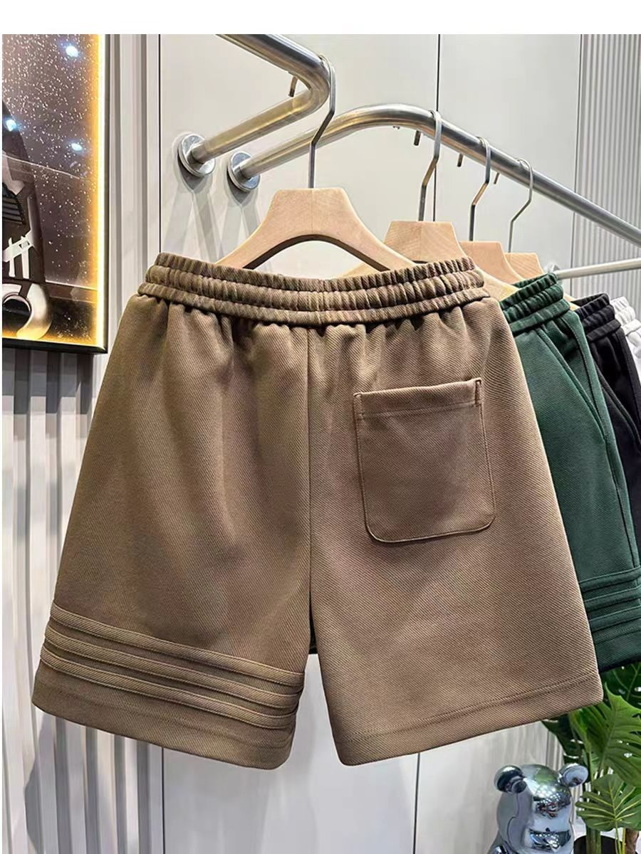 세 줄무늬 디자인의 고급 헤비급 스포츠 캐주얼 반바지 남성용 바지 여름 루즈한 5부 바지 아메리칸 스타일 스웨트팬츠