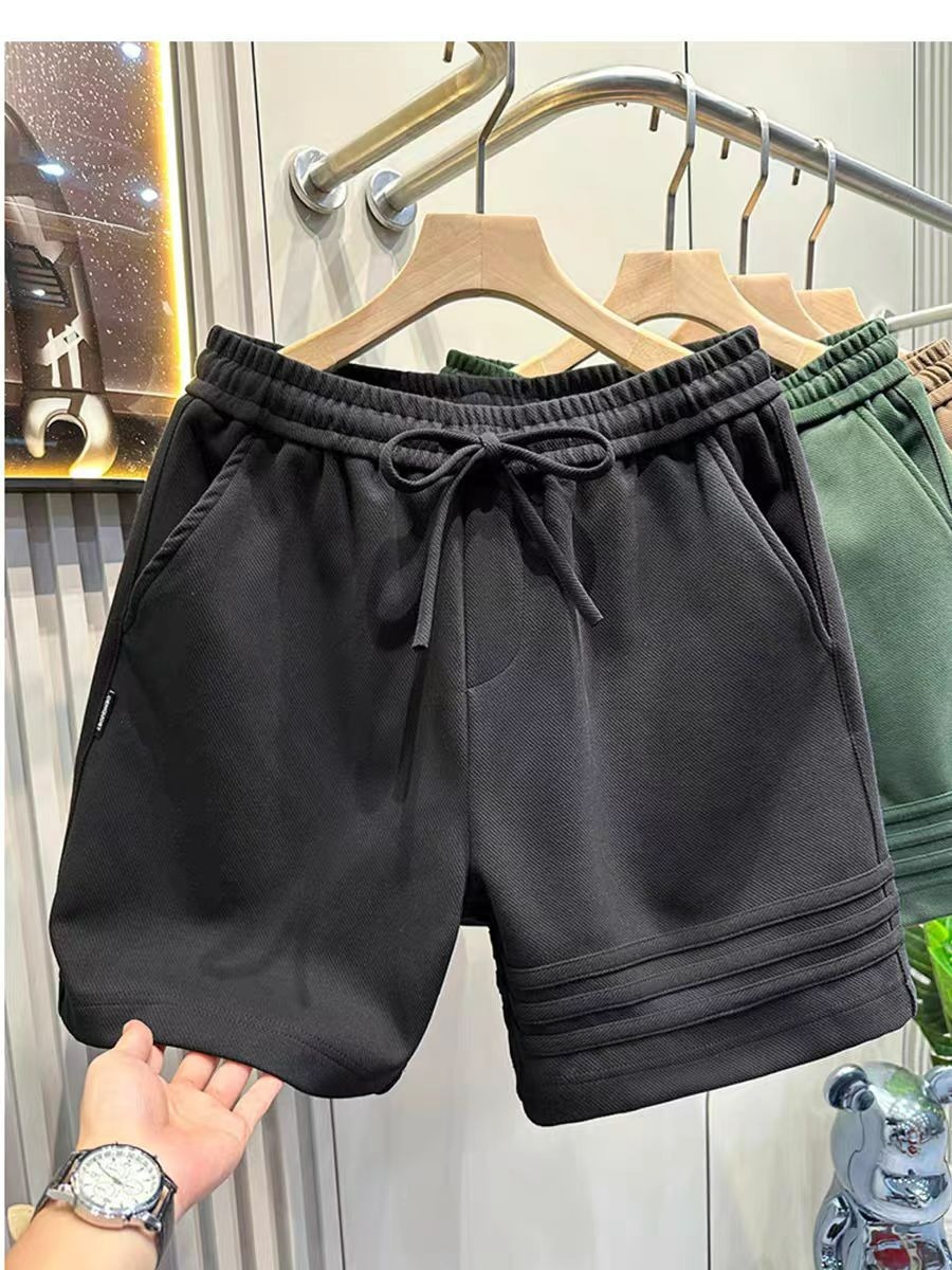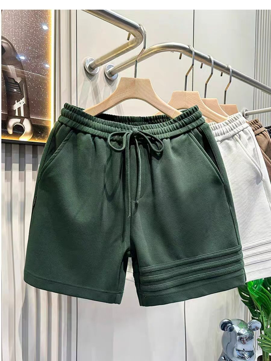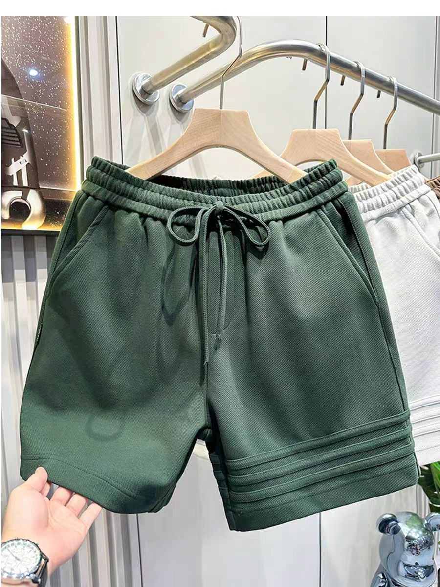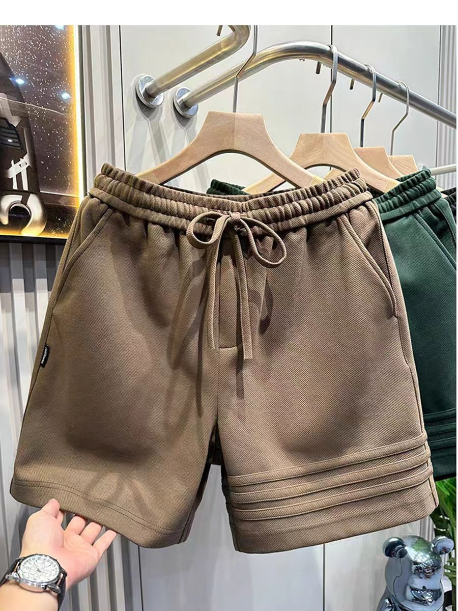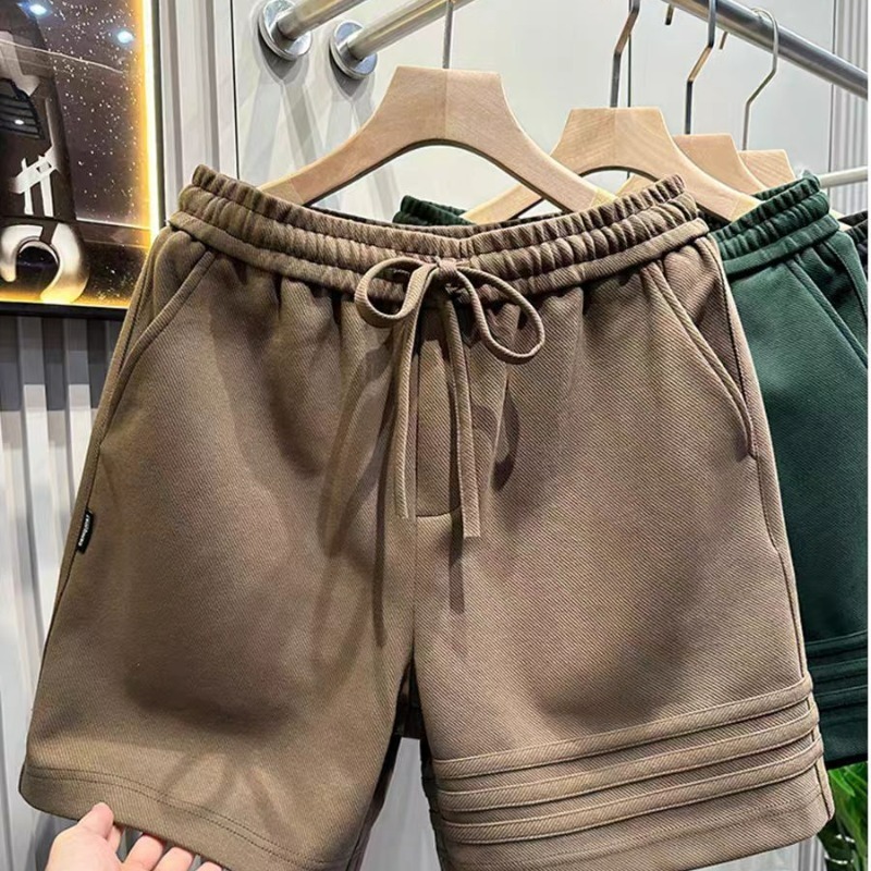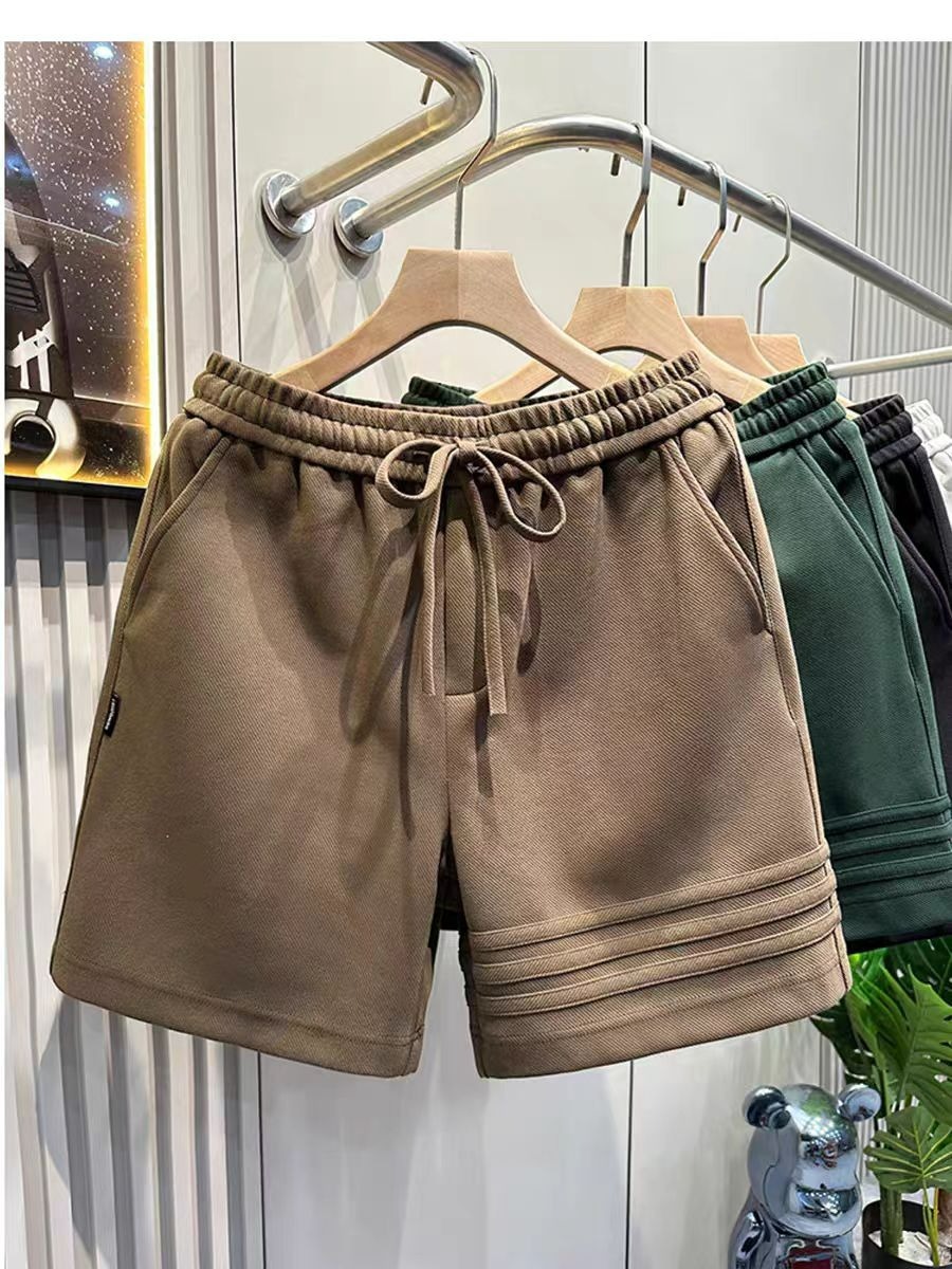 세 줄무늬 디자인의 고급 헤비급 스포츠 캐주얼 반바지 남성용 바지 여름 루즈한 5부 바지 아메리칸 스타일 스웨트팬츠