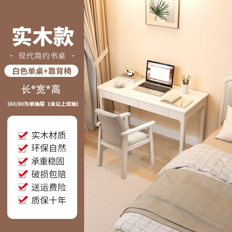 • 올 원목 화이트 싱글 테이블 + 등받이 의자 [재고 있음, 빠른 배송]