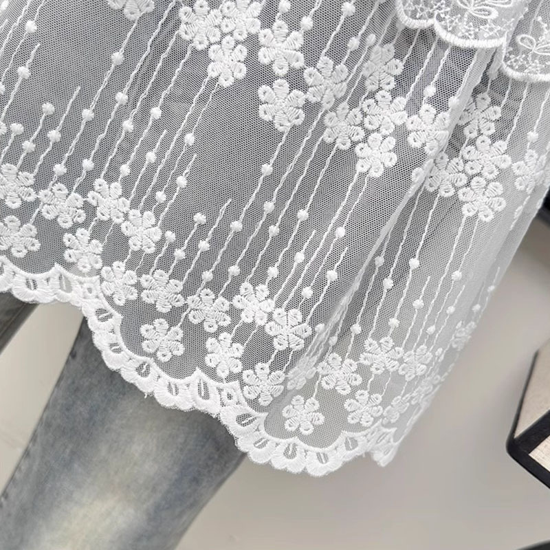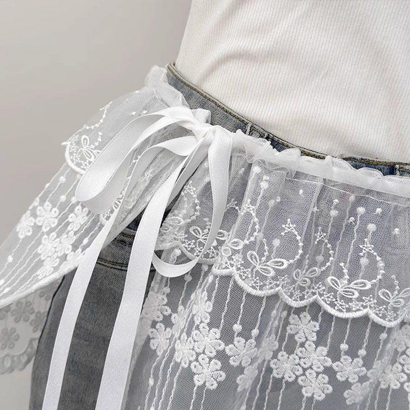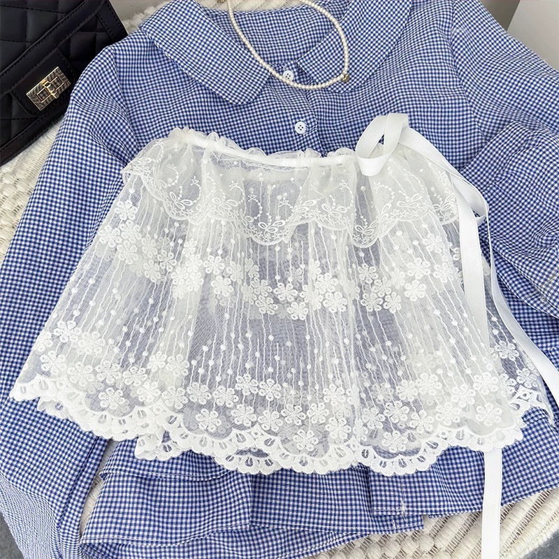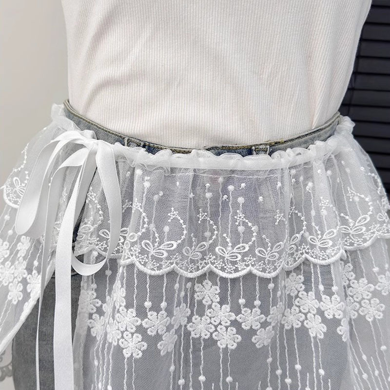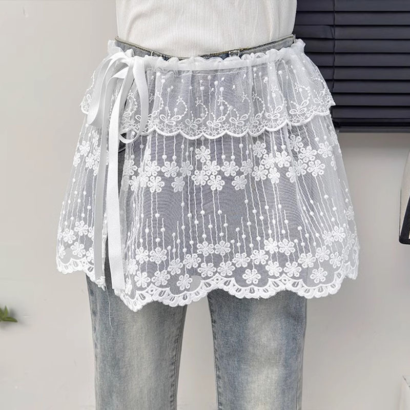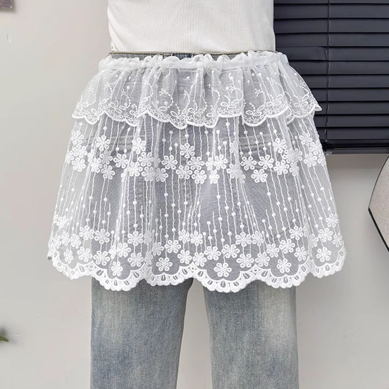 한국 스타일 원피스 더블 레이어 자수 레이스 스택 아트 커튼 발레 스타일 레이스 스트레치 짧은 스커트 힙합 커버 미니 스커트 커튼