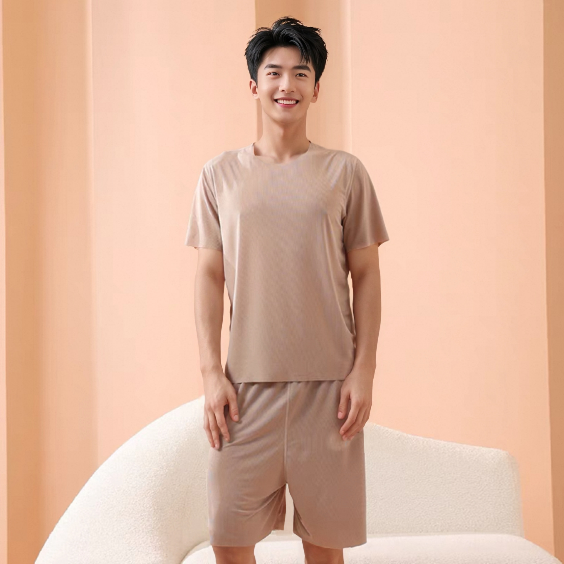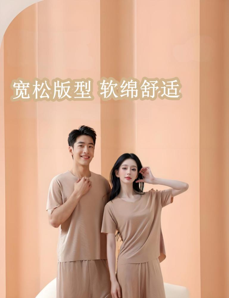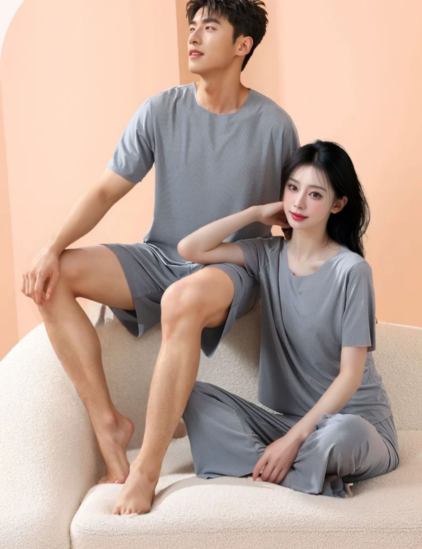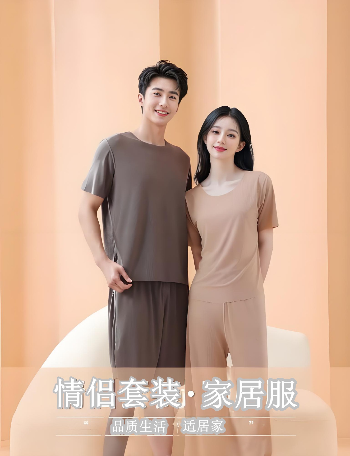 여성용 홈웨어, 여름 커플 스타일, 남성용 아이스 실크 반팔 심플 심리스 솔리드 컬러 파자마 세트, 도매 재고 있음스토어 가기