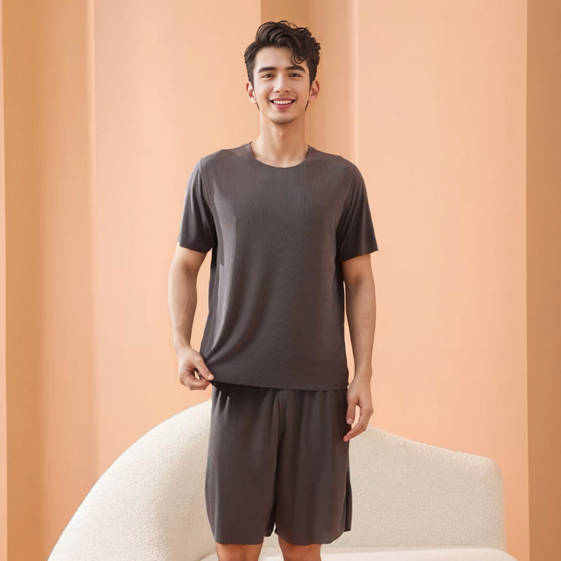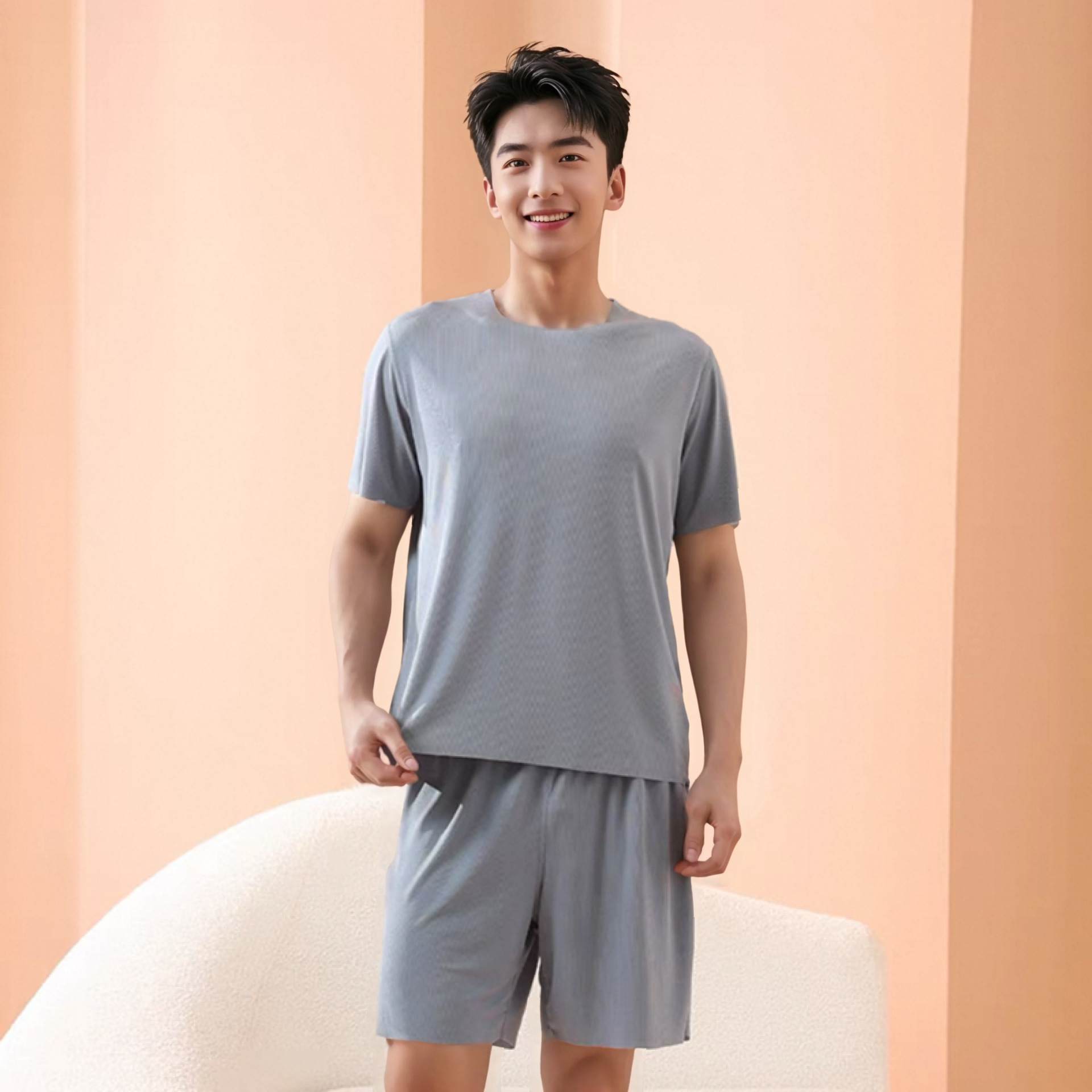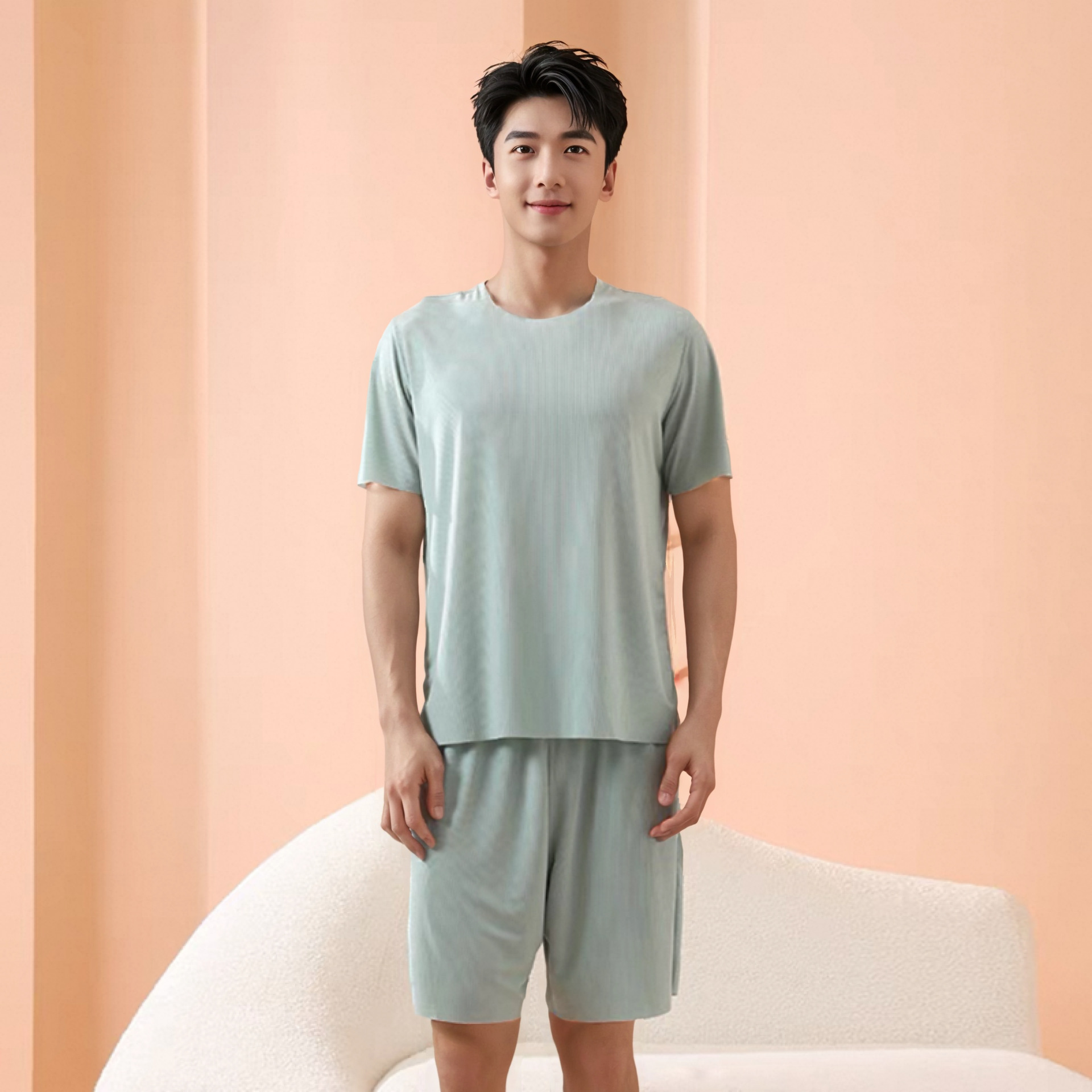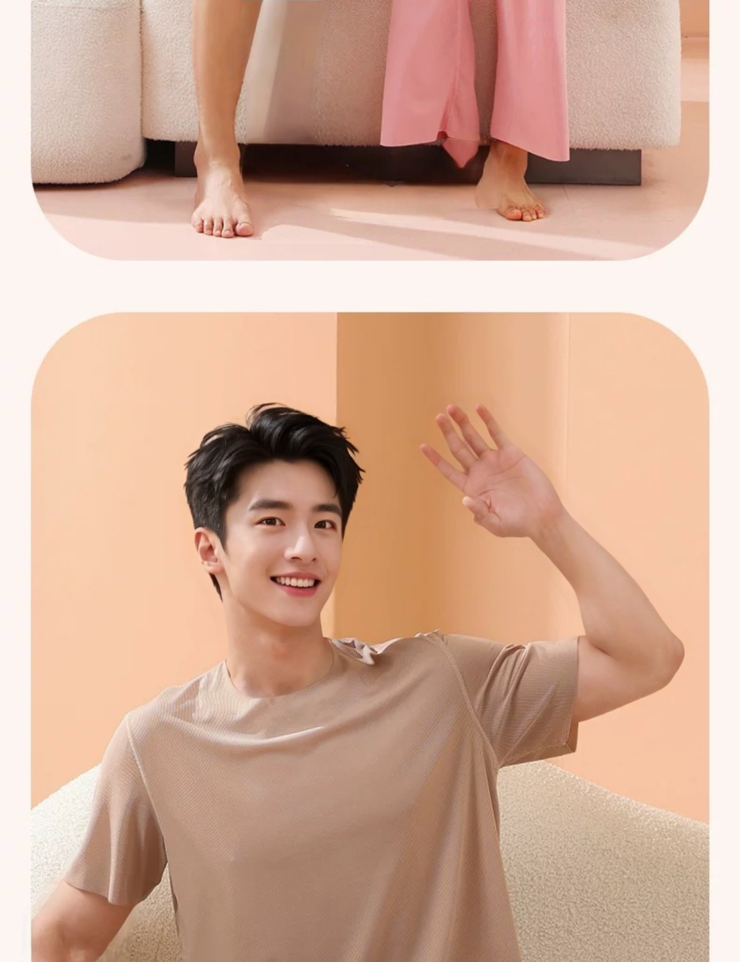 여성용 홈웨어, 여름 커플 스타일, 남성용 아이스 실크 반팔 심플 심리스 솔리드 컬러 파자마 세트, 도매 재고 있음스토어 가기