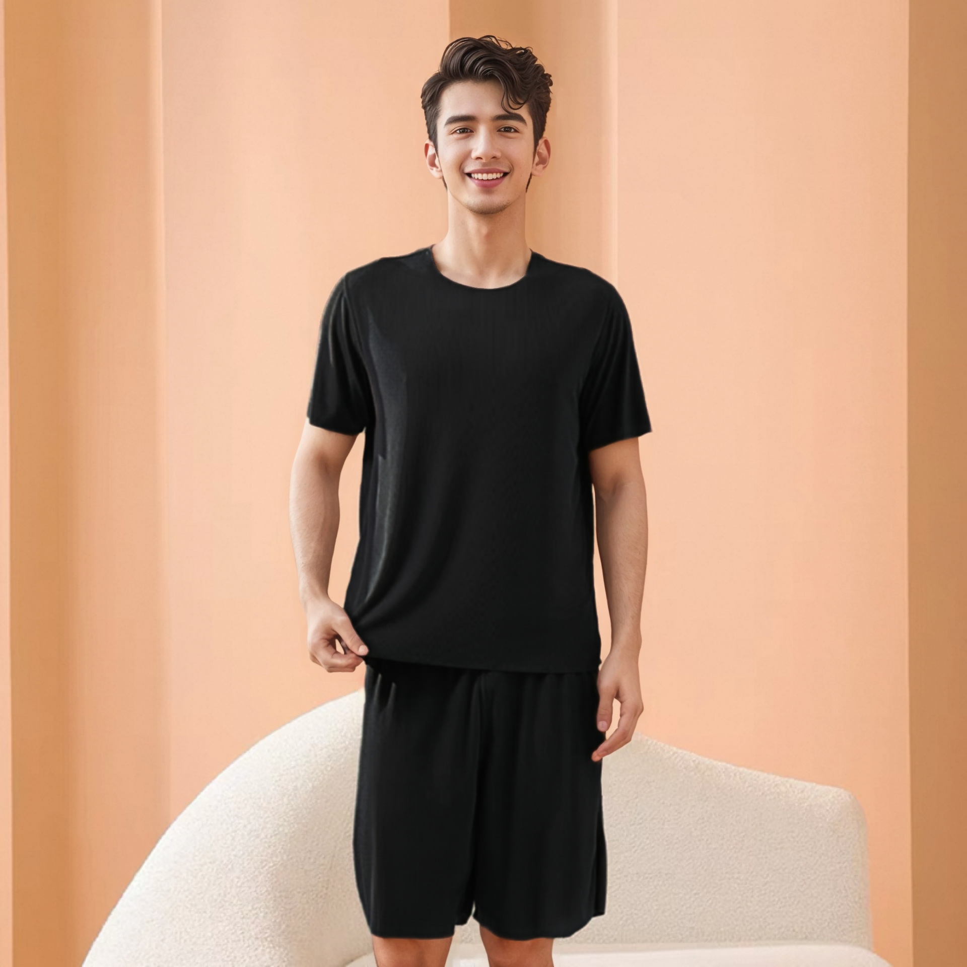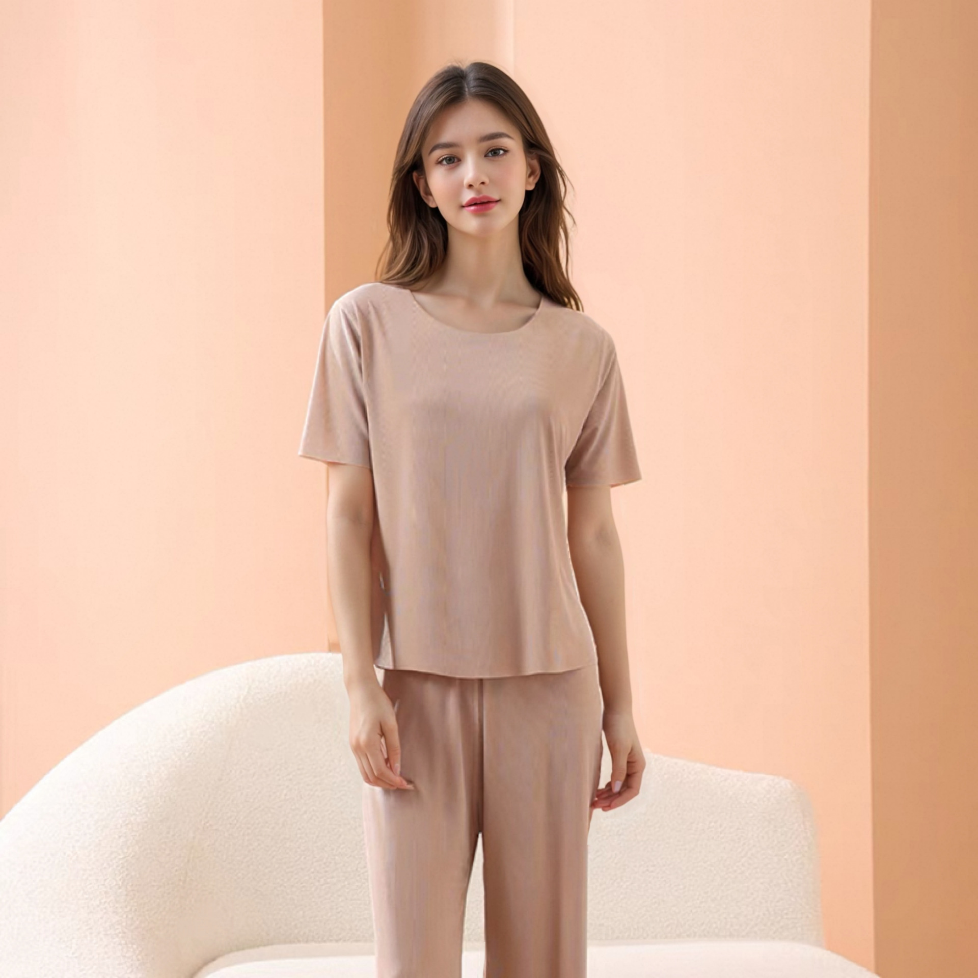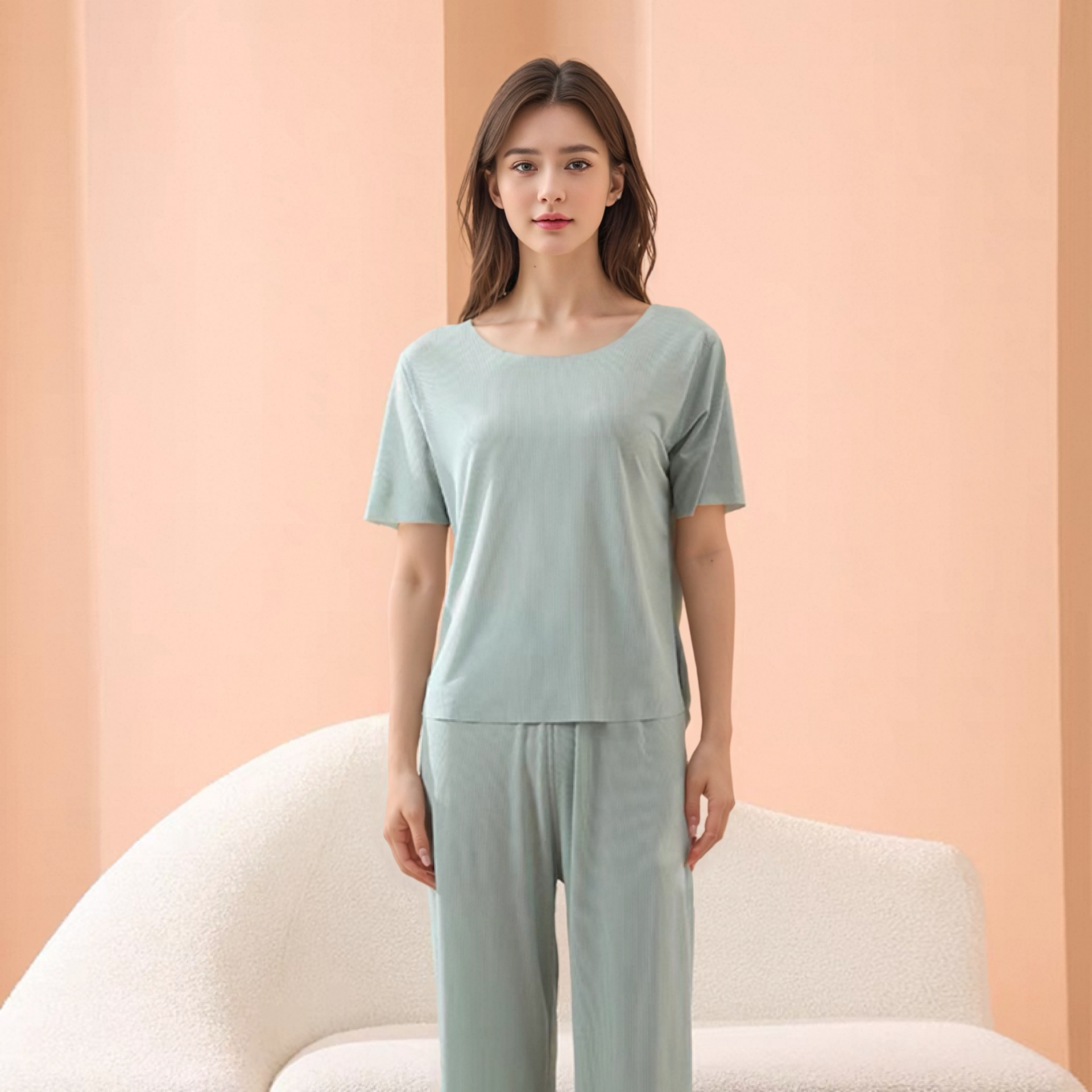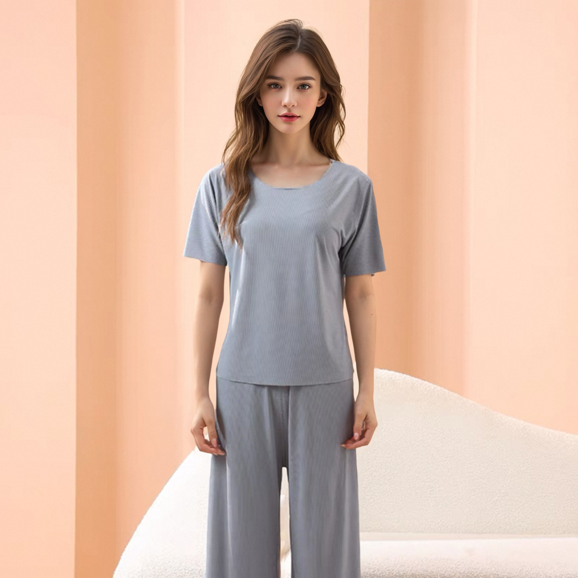 여성용 홈웨어, 여름 커플 스타일, 남성용 아이스 실크 반팔 심플 심리스 솔리드 컬러 파자마 세트, 도매 재고 있음스토어 가기