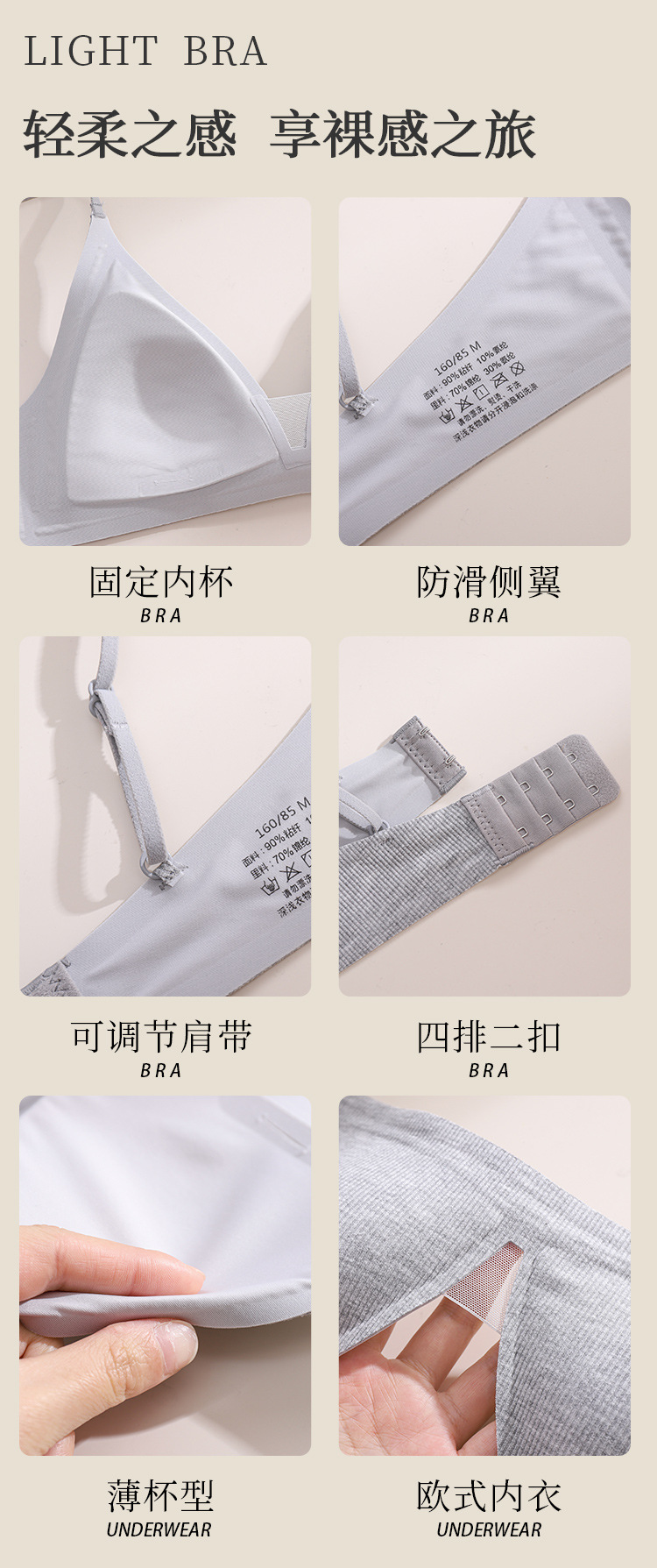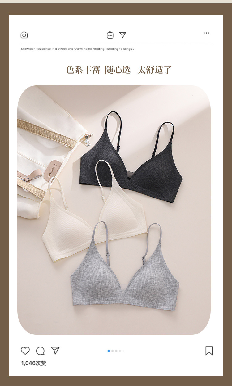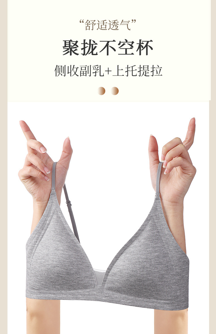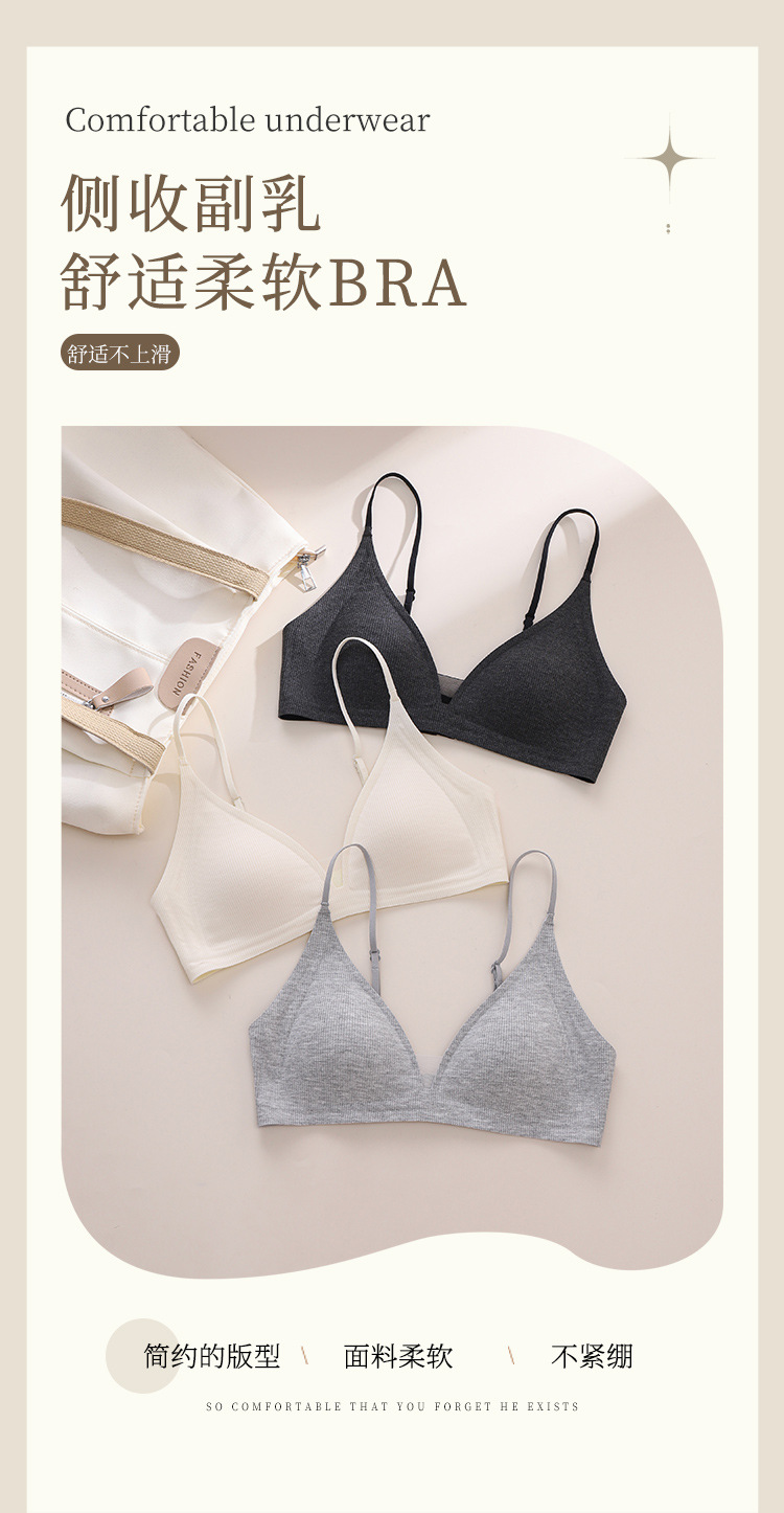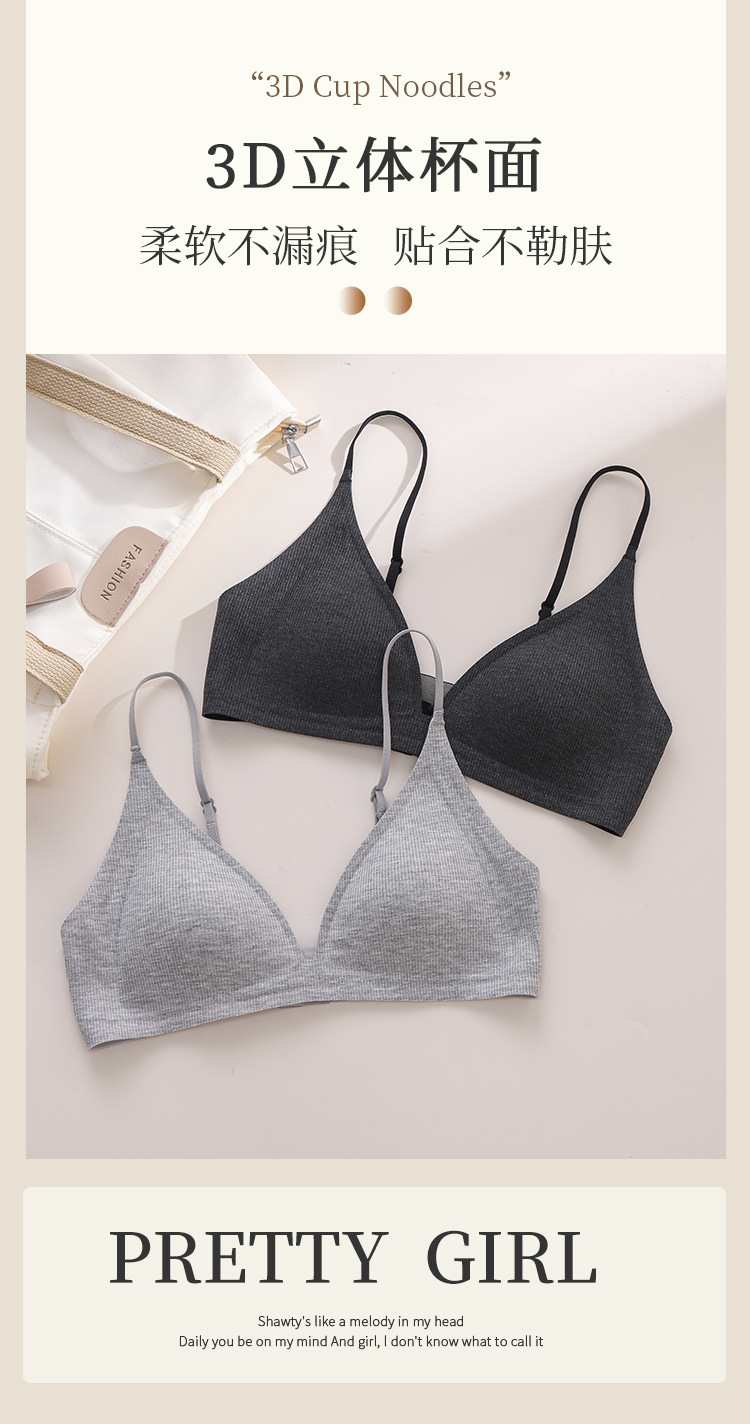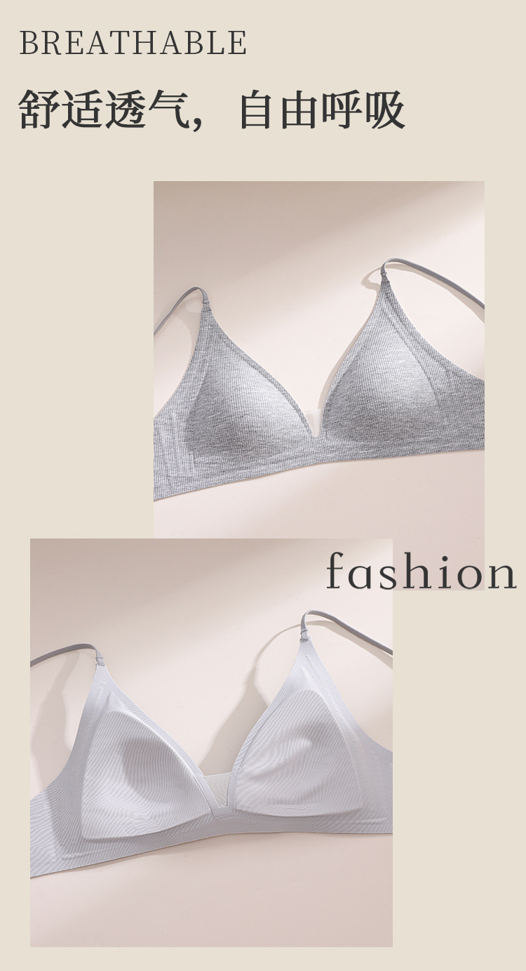 소녀의 프랑스 스타일 딥 V 트라이앵글 컵 알몸 느낌 추적없는 얇은 스레드 속옷 작은 가슴 푸시 업 브라 스틸 링
