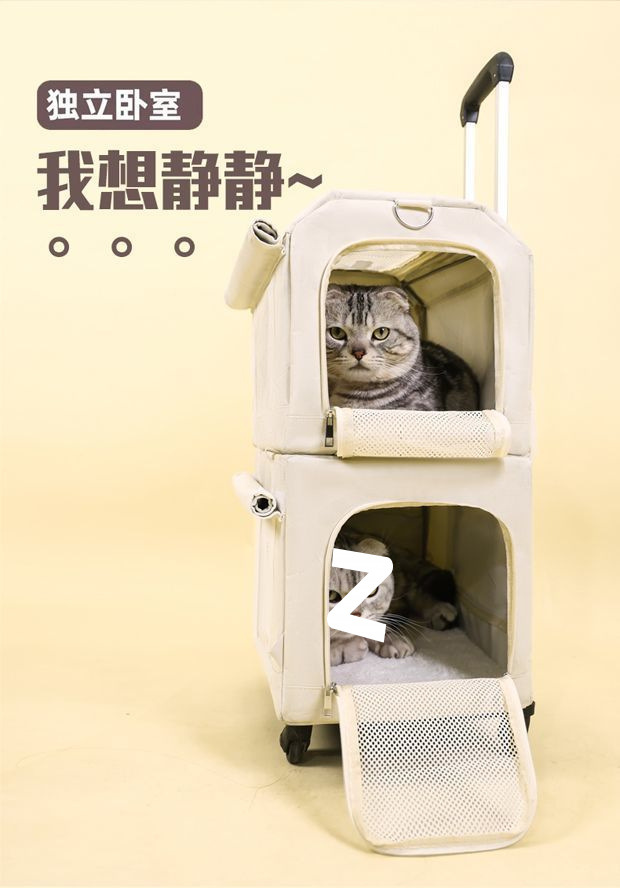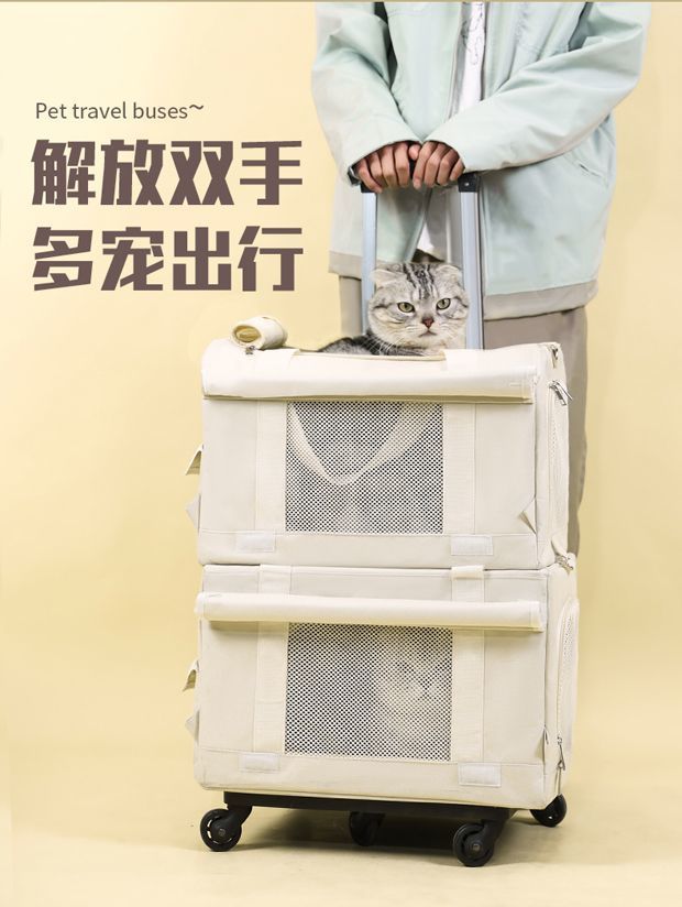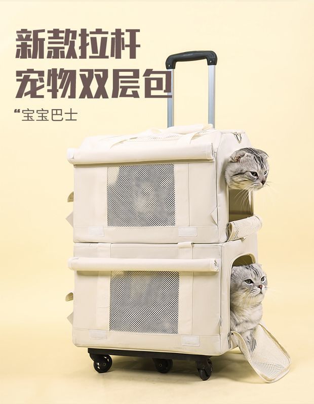 애완 동물 트롤리 케이스 더블 데커 버스 고양이 가방 고양이 푸시-풀 케이스 대용량 2 봄과 여름 통기성 개 핸드백스토어 가기