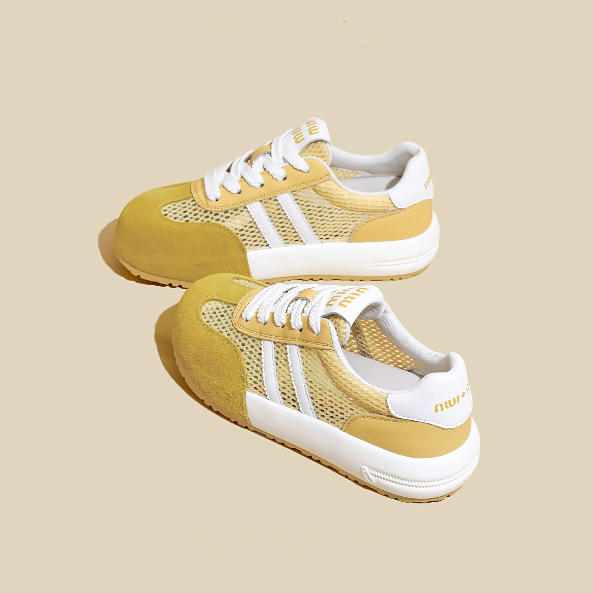 여성을위한 메쉬 육군 훈련 신발 2025 봄과 여름 두꺼운 밑창 경량 통기성 둥근 발가락 편안한 스포츠 및 레저 운동화스토어 가기