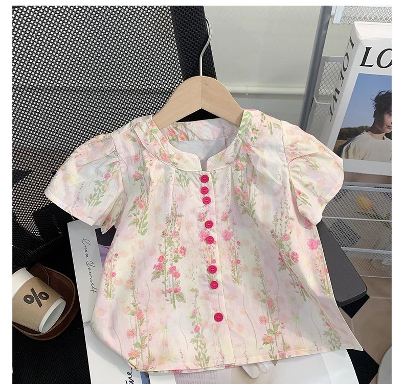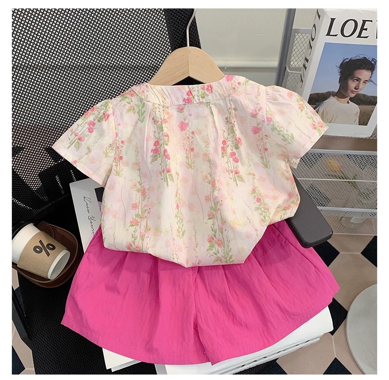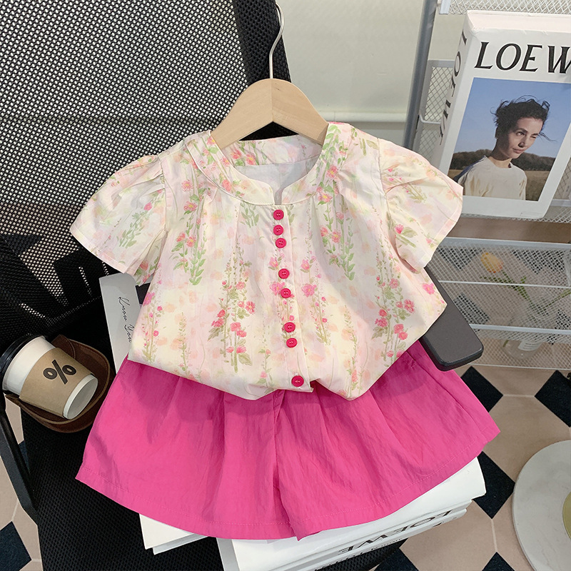 여자 여름 세트 2025 새로운 스타일 유행 아동복 아기 짧은 소매 여름 얇은 꽃 옷