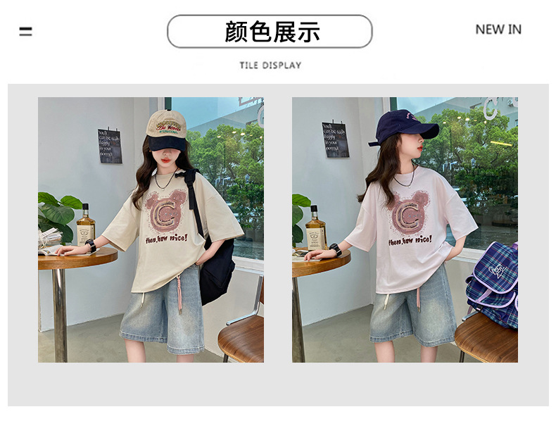 여자 반소매 티셔츠 한국식 여자 어린이 여름 2025 뉴 스타일 면 반소매 큰 어린이 여성 여름 탑
