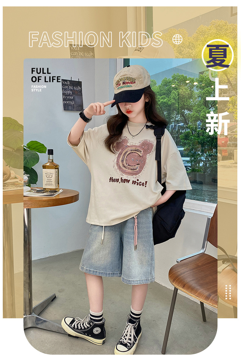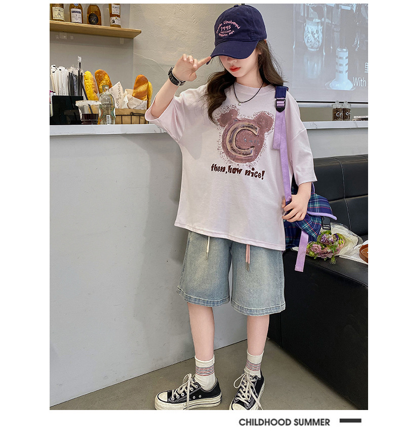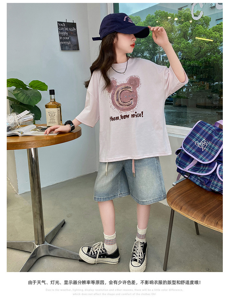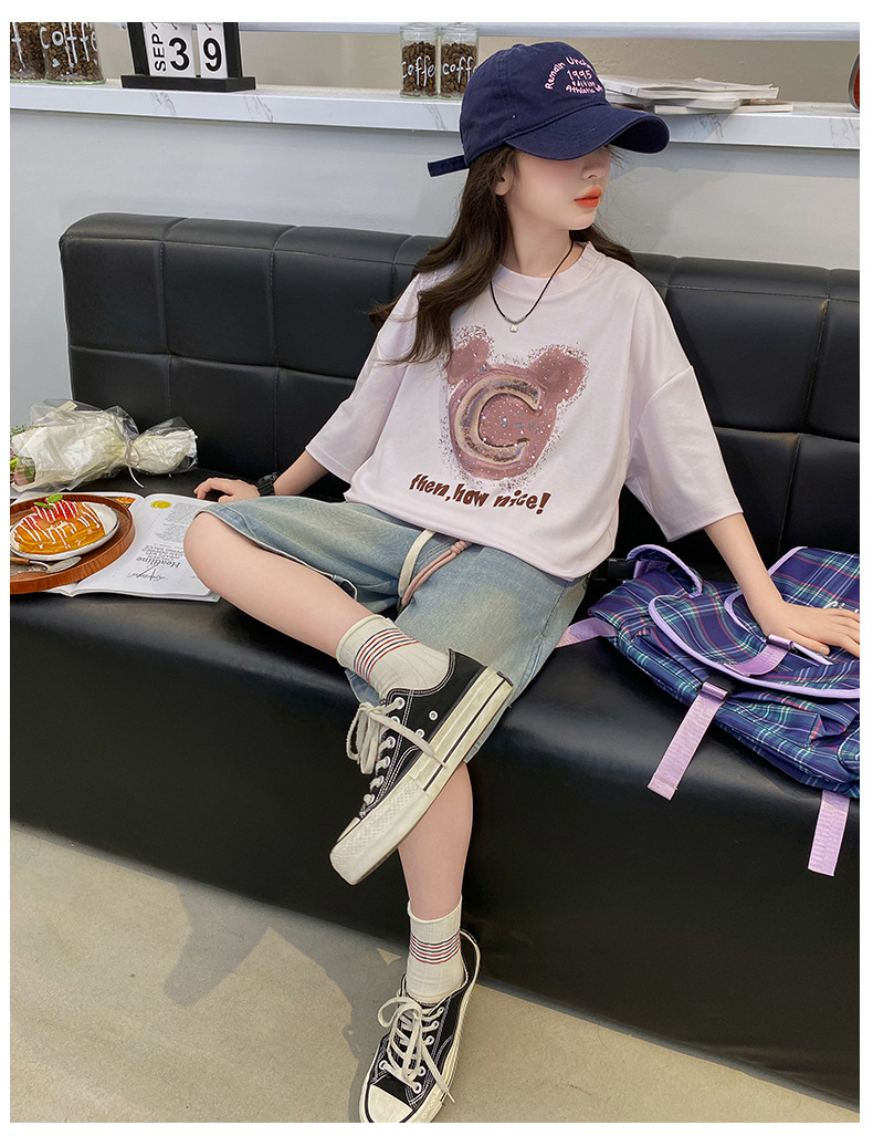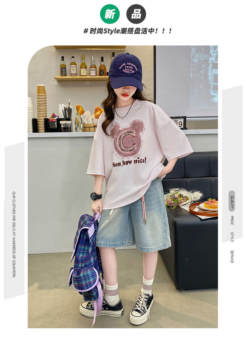 여자 반소매 티셔츠 한국식 여자 어린이 여름 2025 뉴 스타일 면 반소매 큰 어린이 여성 여름 탑스토어 가기