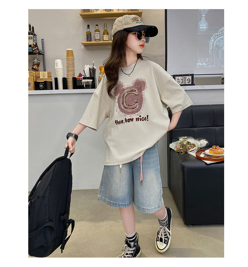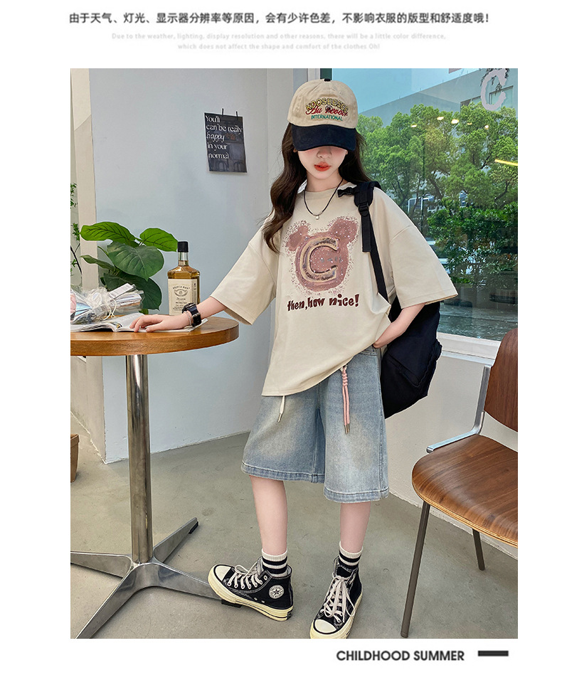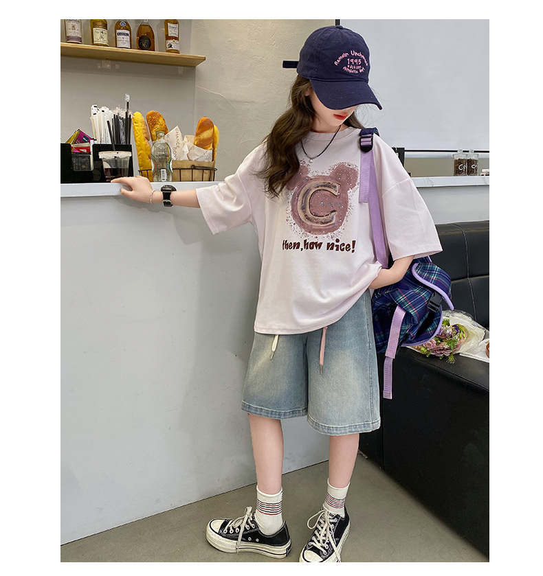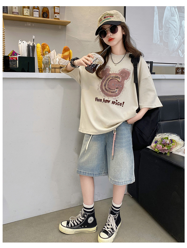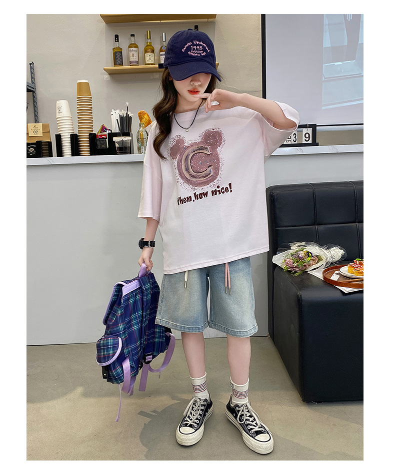 여자 반소매 티셔츠 한국식 여자 어린이 여름 2025 뉴 스타일 면 반소매 큰 어린이 여성 여름 탑스토어 가기