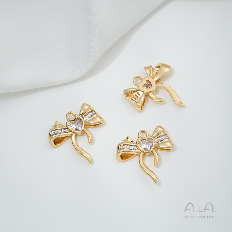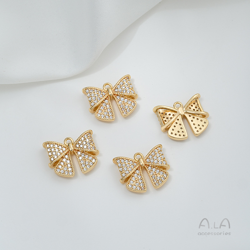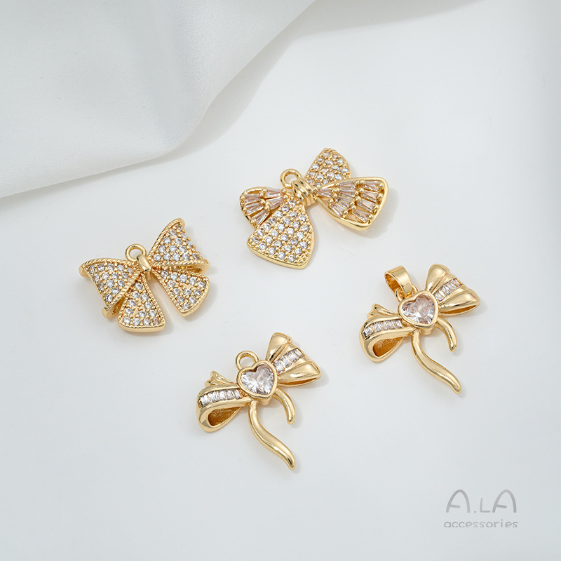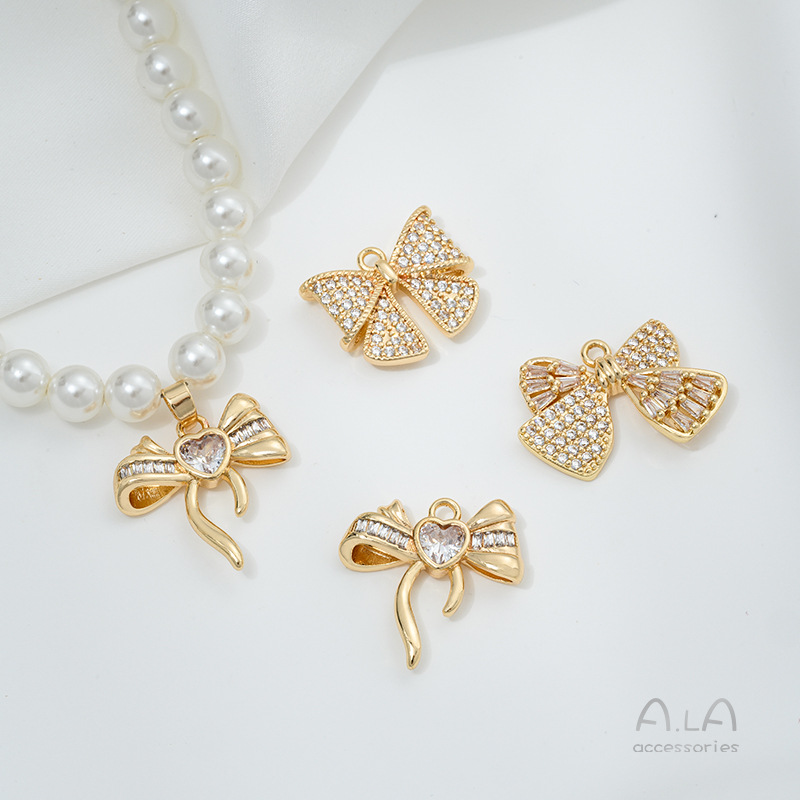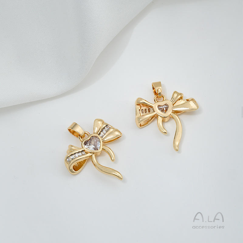 14k 정품 골드 색상 보존 지르콘 보우 펜던트 액세서리 수제 페르시 diy 목걸이 귀걸이 쥬얼리 재료