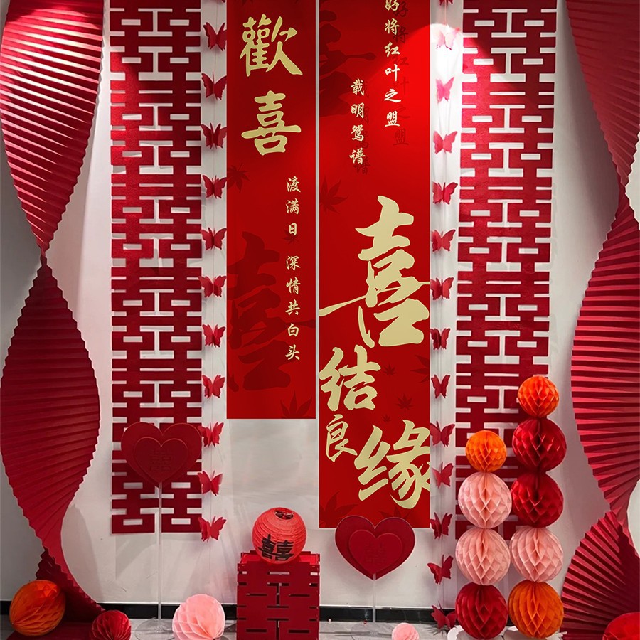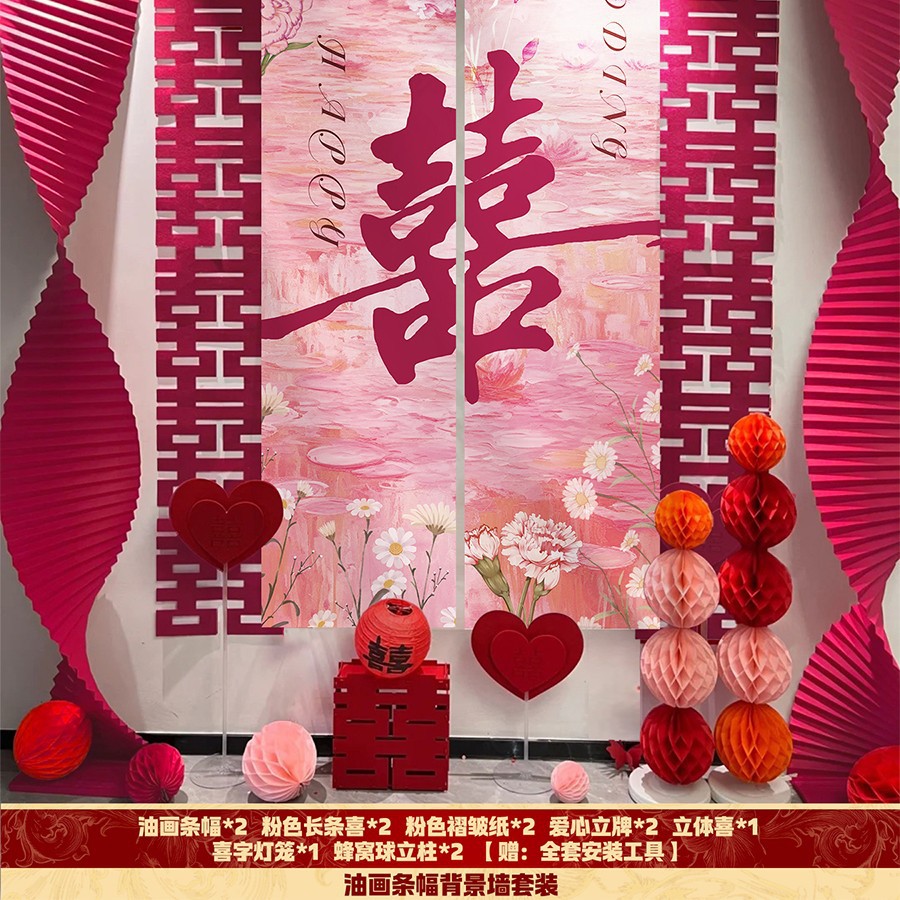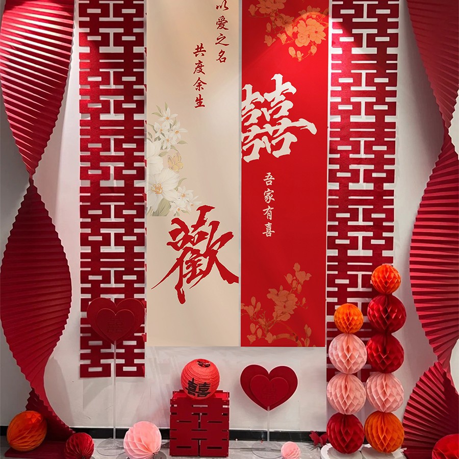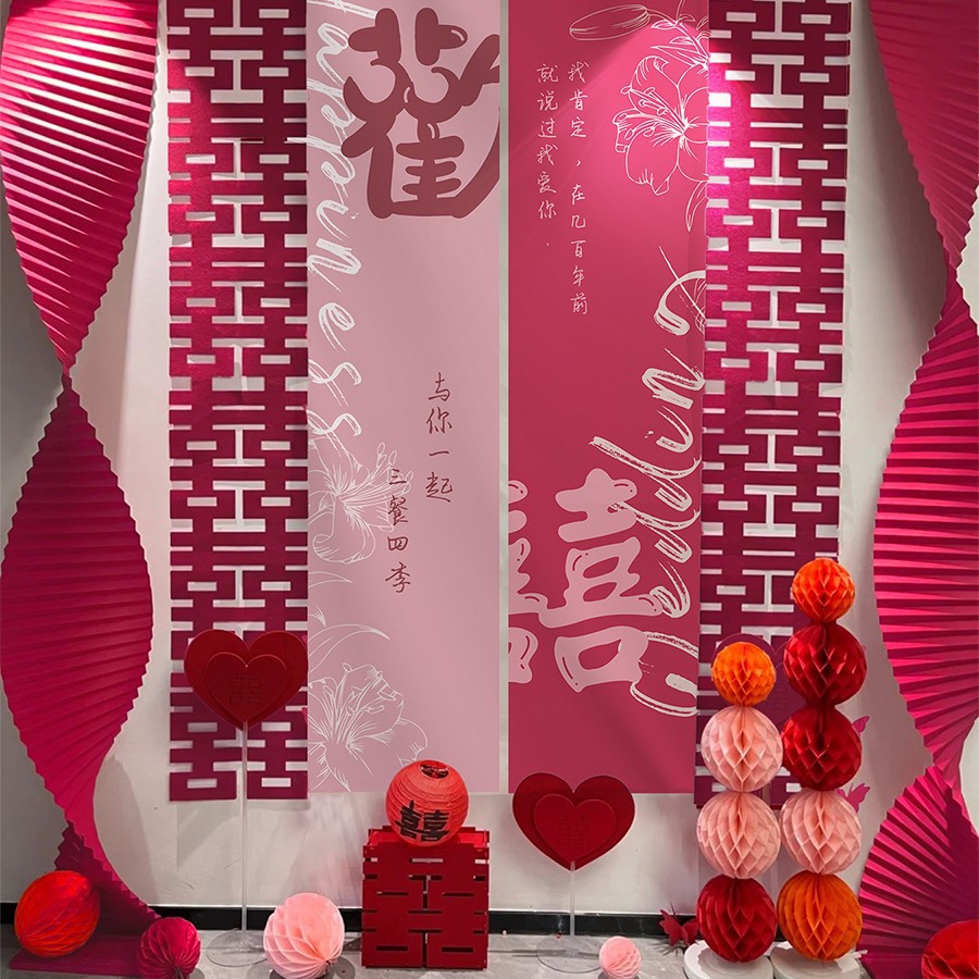 웨딩 룸 장식 세트 결혼식 매달려 천 배너 새 집 침실 장식 웨딩 캐릭터 모닝 로브 배경 벽 사진 소품스토어 가기
