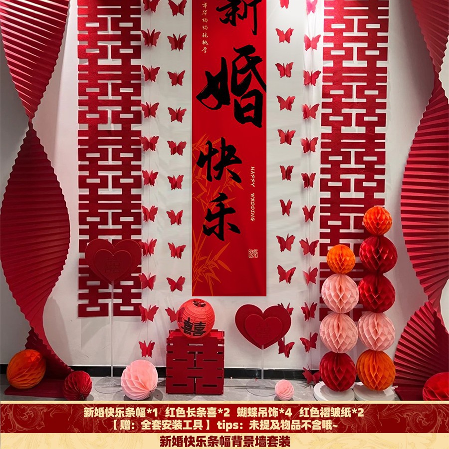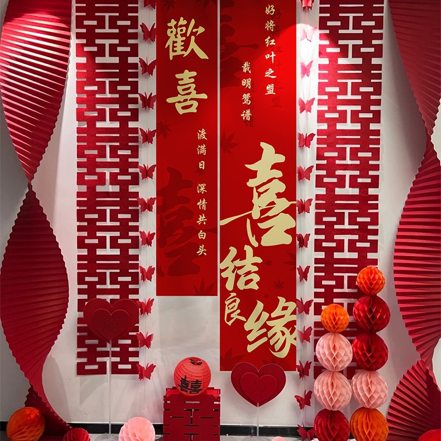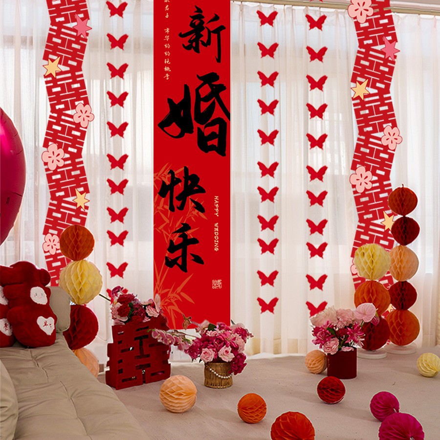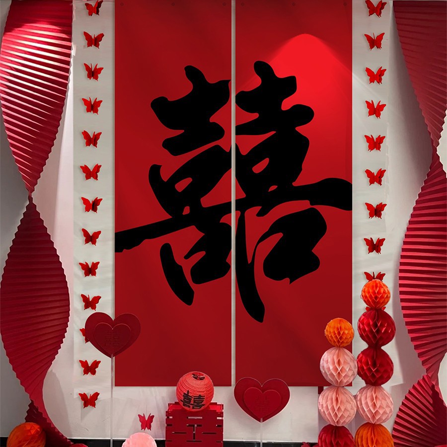 웨딩 룸 장식 세트 결혼식 매달려 천 배너 새 집 침실 장식 웨딩 캐릭터 모닝 로브 배경 벽 사진 소품스토어 가기