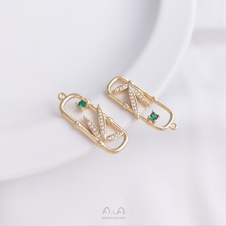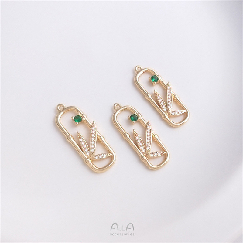 14K 금으로 채워진 색상 보존 지르코늄 대나무 잎 직사각형 프레임 대나무 펜던트 수제 보석 diy 목걸이 펜던트 귀걸이 펜던트스토어 가기
