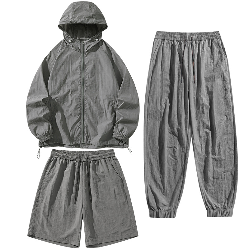 새로운 9색 단색 쓰리피스 슈트, 캐주얼하고 다용도, 여름 자외선 차단, 남녀 동일 스타일 재킷, 커플용, 얇고 통기성 좋음스토어 가기