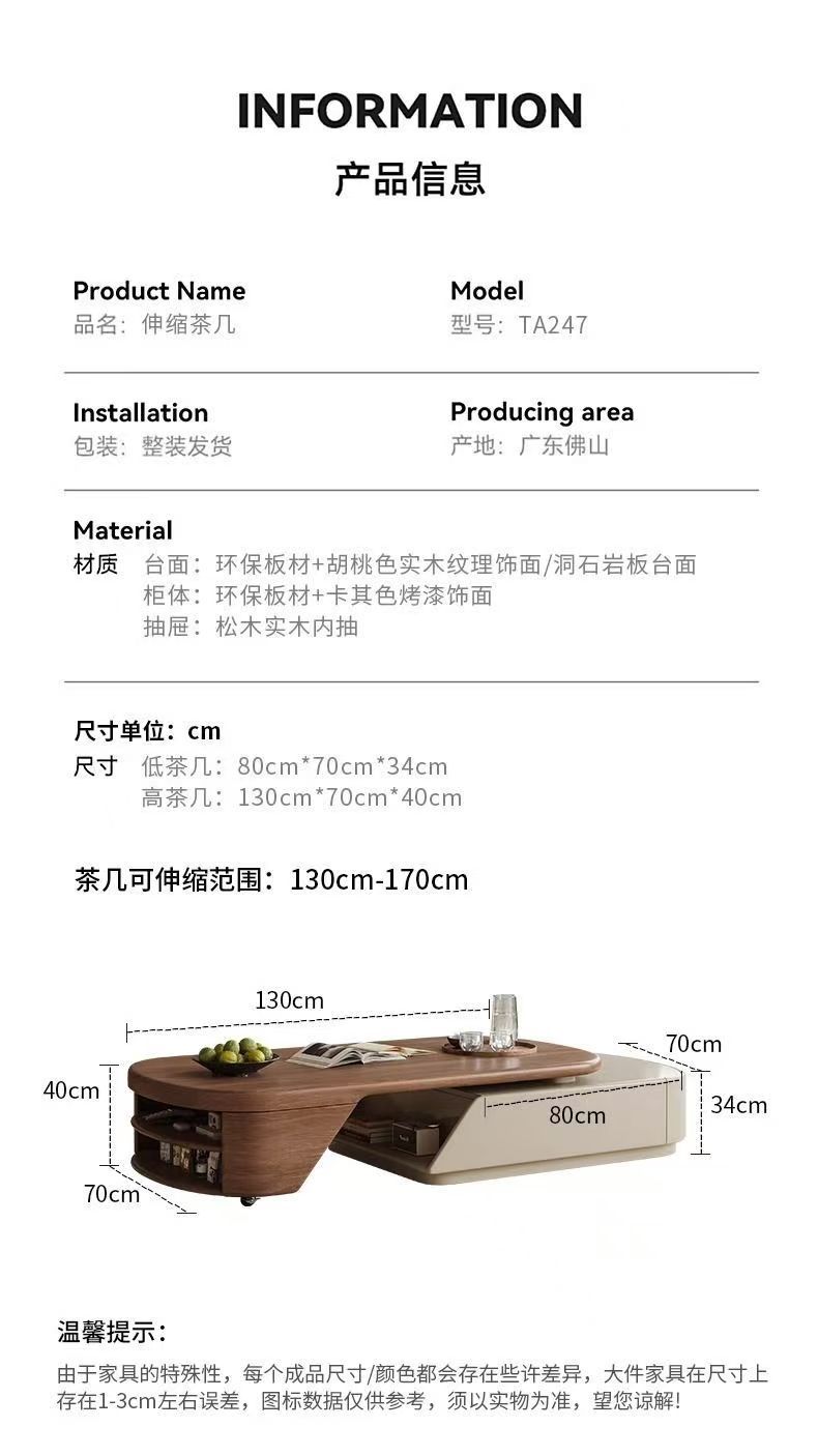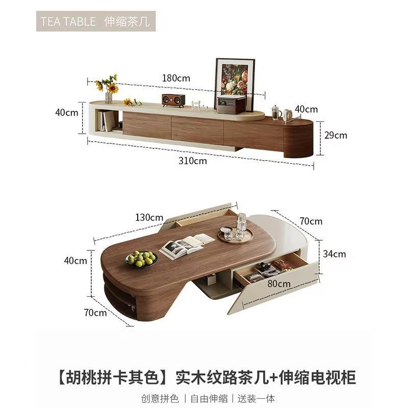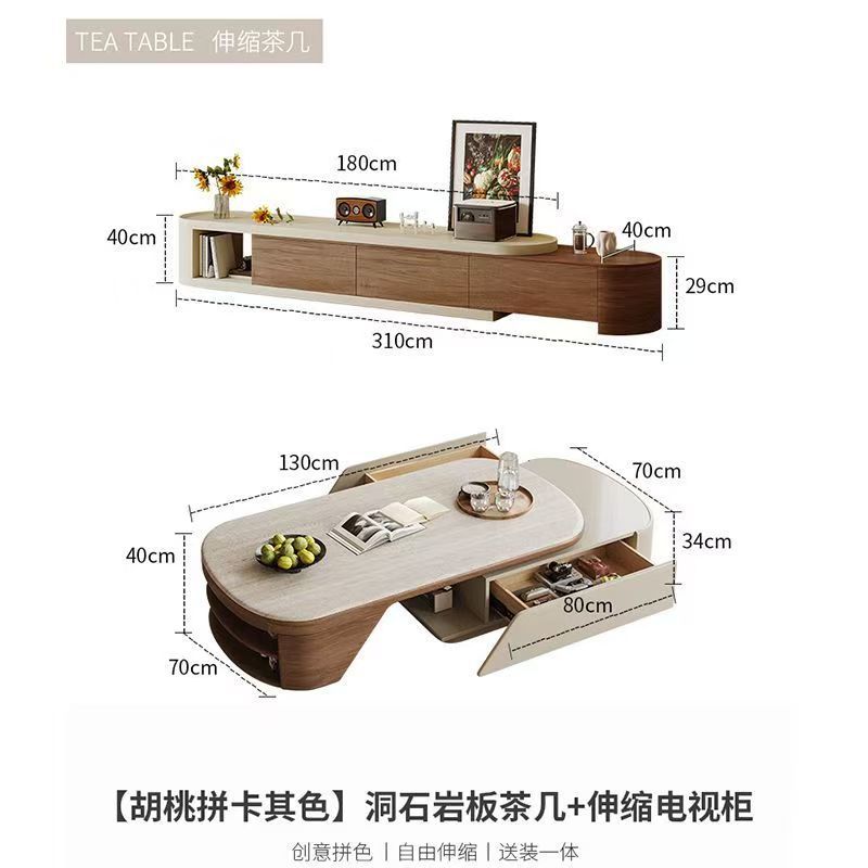 • [트래버틴 슬레이트 모델] 텔레스코픽 커피 테이블 + TV 캐비닛