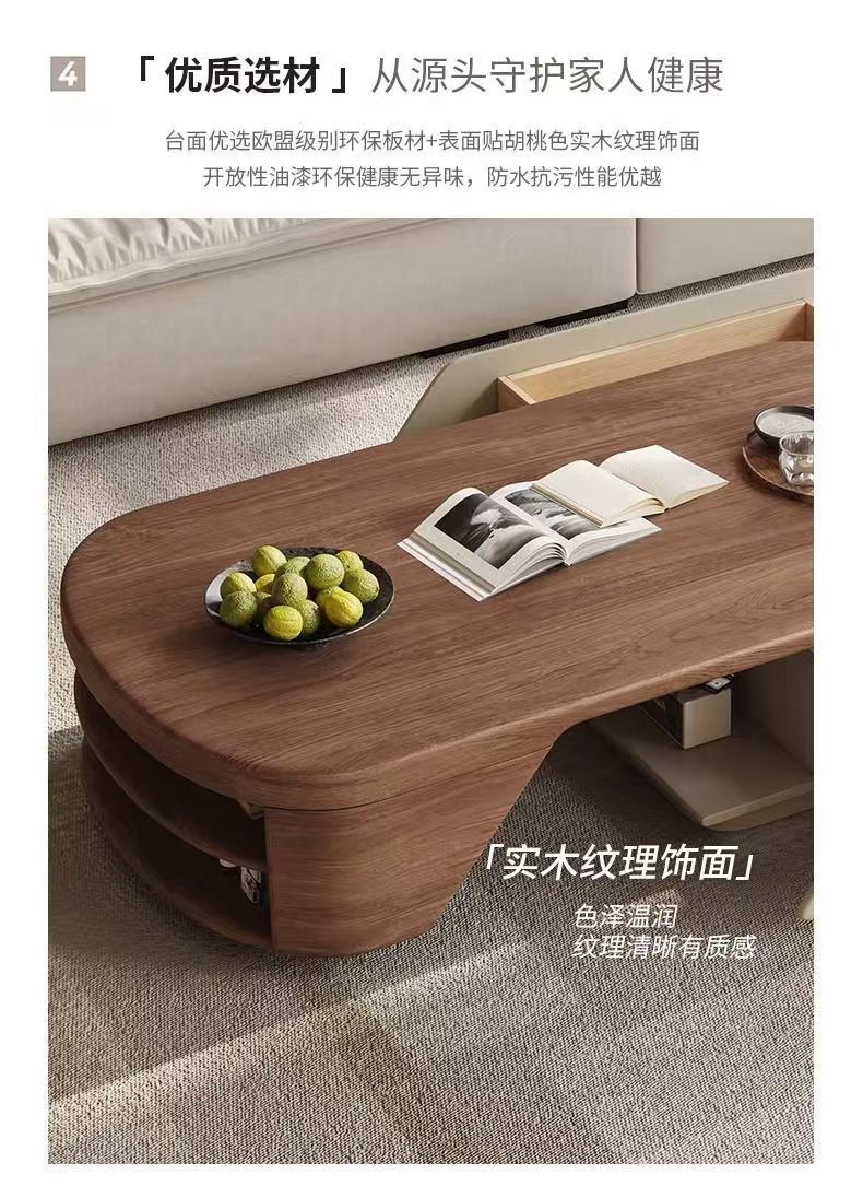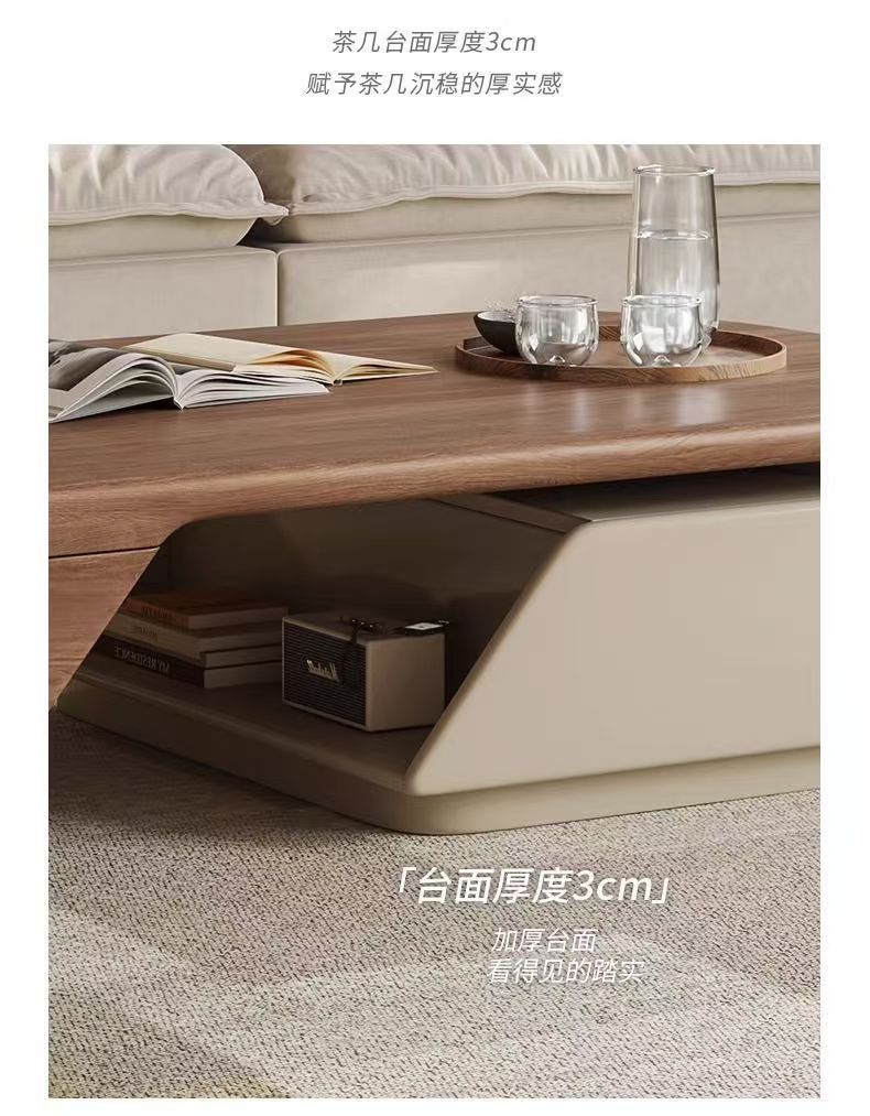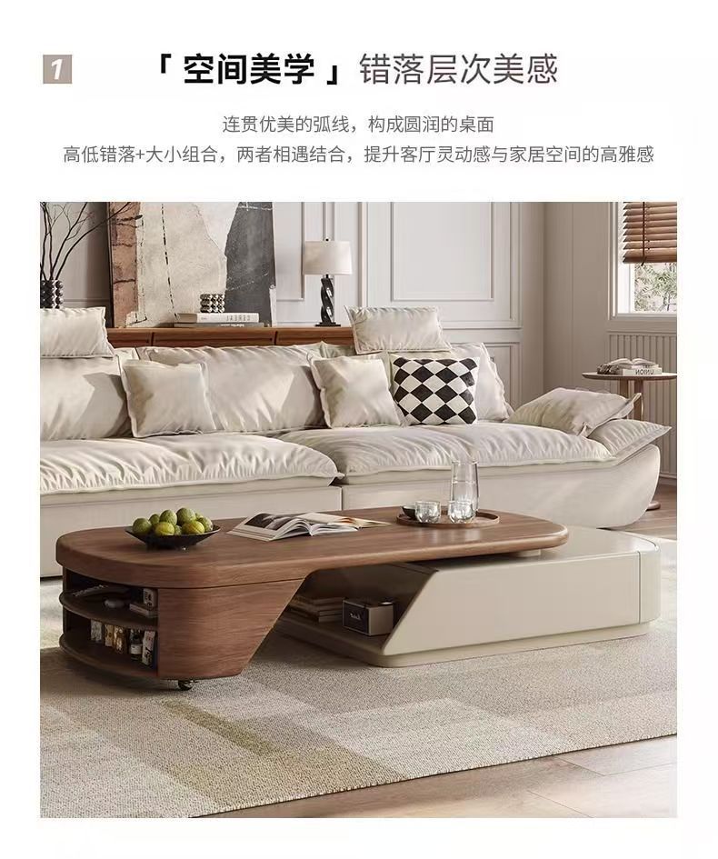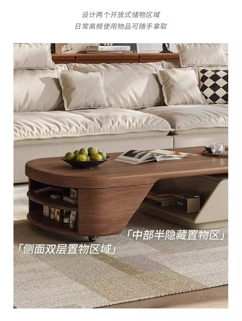 바퀴가 달린 거실 홈 커피 테이블 이동식 TV 조합 2025 새로운 스토리지 호두색 석회화 슬레이트스토어 가기