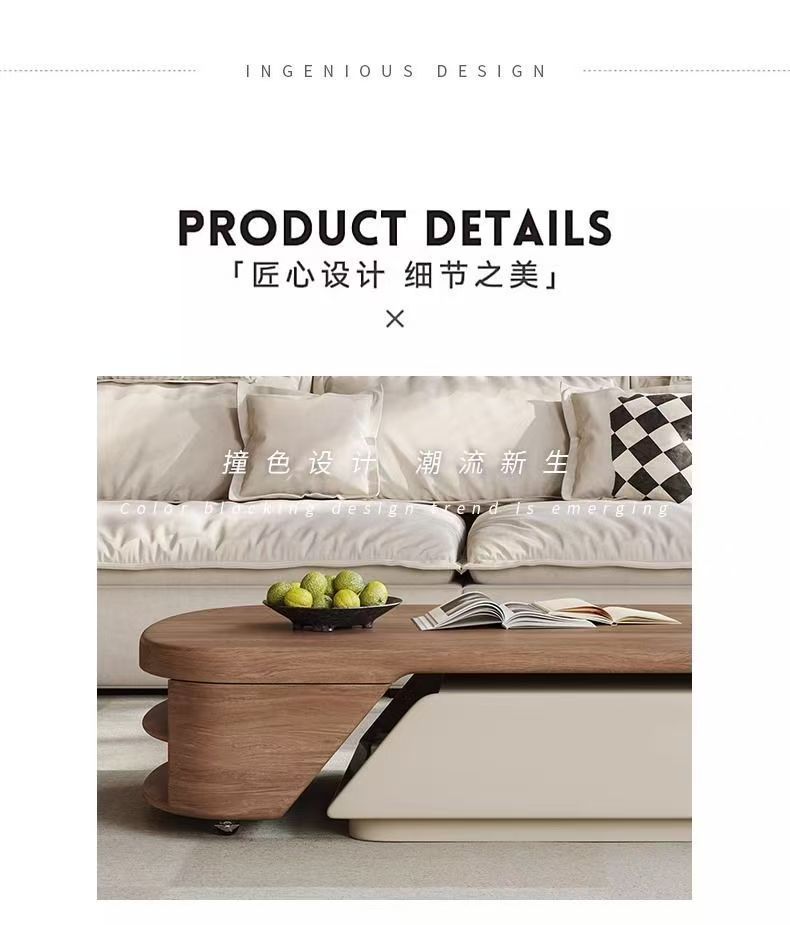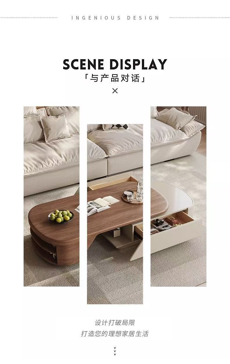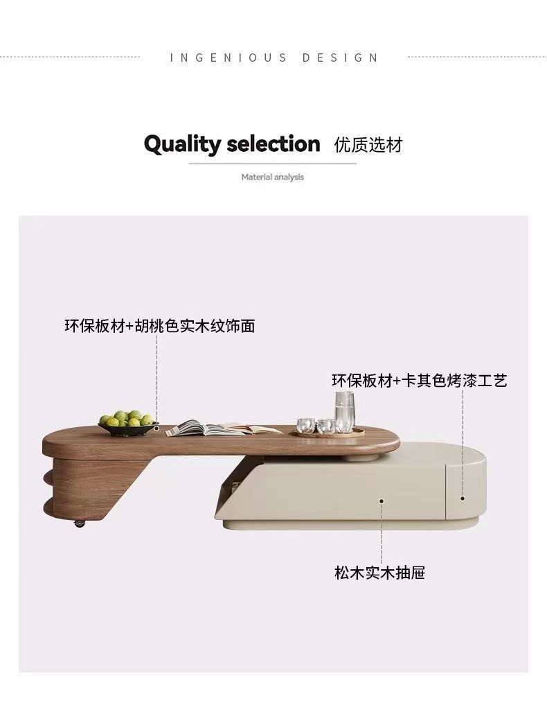 • [월넛 가죽 모델] 접이식 커피 테이블 + TV 캐비닛