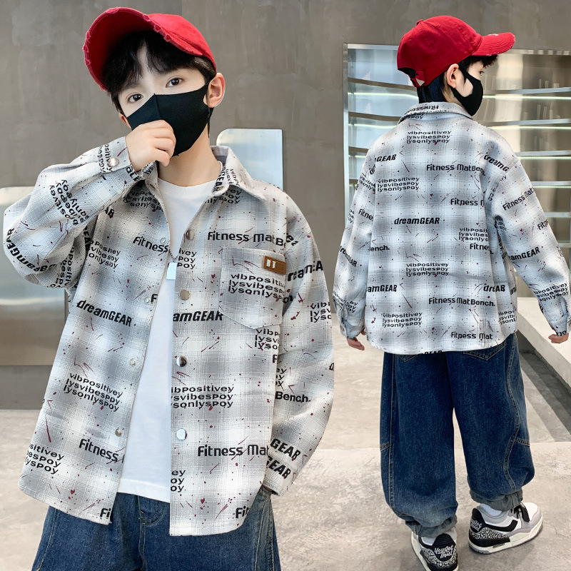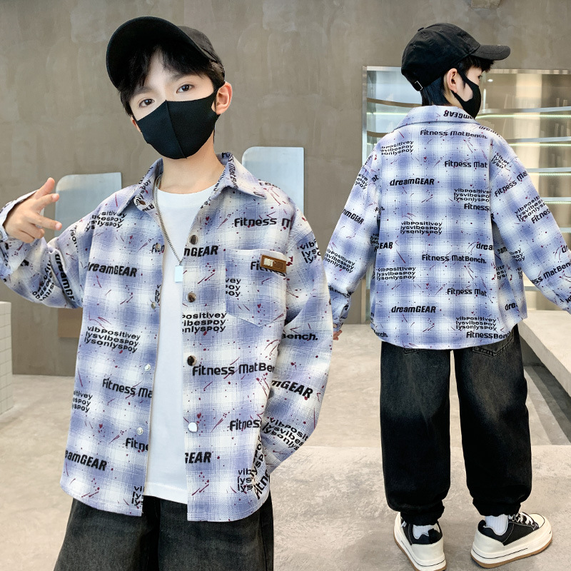 소년 가을 페인트 도트 격자 무늬 셔츠 2025 중대형 어린이 봄, 가을 유행 대외 무역 셔츠 유행상의스토어 가기